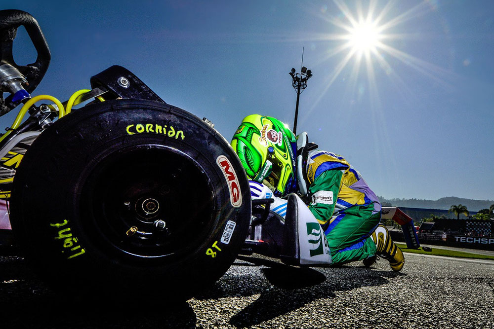 Compartilhar no Facebook Compartilhar no Twitter Compartilhar no Google+ Compartilhar no Pinterest Após quarta rodada, piloto de Sergipe é o líder isolado do Campeonato Atualmente a Copa São Paulo Light de Kart é a mais concorrida competição da modalidade no Brasil. Em suas etapas tem participado cerca de 160 competidores de todas as regiões do Brasil e, com isso, não raro se ouve que o Campeonato é o mais completo e difícil da temporada, superando até mesmo as competições nacionais. Em sua segunda temporada na categoria Júnior Menor o piloto sergipano Guilherme Figueiredo (Banese Card | Banese Corretora de Seguros | Maratá | Restaurante Karranca’s) tem se destacado bastante e aparece como um dos fortes nomes em sua divisão. Com atuações consistentes o piloto já fez pole-positions, venceu corridas e, passadas as quatro primeiras rodadas do ano ele é o líder isolado de sua categoria. No último sábado (13) o Light realizou a sua quarta rodada dupla da temporada. As disputas aconteceram no Kartódromo Aldeia da Serra, na região metropolitana paulista e, novamente, Figueiredo viajou de Aracajú para São Paulo em busca de cumprir mais este compromisso de sua agenda. Contando com o sempre competente suporte técnico da equipe D.Racing o piloto treinou forte na quinta e na sexta-feira buscando um setup ideal para o seu equipamento. Na tarde de sexta, já com o motor fornecido pela organização, Guilherme fez o terceiro melhor tempo e seguiu animado para a tomada de tempos. Nesta sessão, muito concentrado, o piloto fez a pole-position com o tempo 46s099 e garantiu o direito de largar na ponta da primeira prova. Por volta 10 horas da manhã a primeira largada foi autorizada. Figueiredo, após um leve toque, caiu para a segunda posição, mas, seguiu na luta pelo primeiro lugar. Na entrada do segundo setor da pista, porém, ele foi escorado para fora da pista e, na curva seguinte, recebeu um toque que o fez rodar e ficar parado na grama. Rapidamente a equipe correu para recolocá-lo na pista, mas, longe do pelotão, o piloto somente pôde completar a prova. Mesmo assim ele esteve muito rápido e registrou ainda a volta mais rápida da prova, o que lhe garantiu mais um ponto na classificação do Campeonato. Na segunda bateria, partindo de trás do pelotão, Figueiredo fez uma consistente prova de recuperação. O piloto, com tranquilidade, uma um superou vários concorrentes e, na metade da prova, já lutava no primeiro pelotão. Contudo, nas últimas voltas da corrida, seu kart passou a perder um pouco de rendimento e, com isso, ele recebeu a bandeirada no quinto lugar. Após a bateria a equipe detectou falta de pressão no carburador, o que gerou a perda de potência nas voltas finais. Com a soma dos resultados Guilherme conseguiu ficar com a quinta posição geral da etapa. Ao todo ele acumulou sete pontos no Campeonato e, agora, com 31 pontos no total, é o líder isolado da classificação do Light. “O fim de semana começou legal. A gente preparou bem o kart e os tempos vieram melhorando até eu conseguir a pole-position. Infelizmente nas corridas não dei muita sorte, mas, o que importa mesmo é a soma dos resultados e, agora, sou o líder do Campeonato. Vamos continuar trabalhando muito e, se Deus quiser, na próxima voltarei a brigar pela vitória”, comentou o representante do Banese Card | Banese Corretora de Seguros | Maratá | Restaurante Karranca’s. Fotos: Bruno Gorski – Quick Comunicação Texto: Quick Comunicação