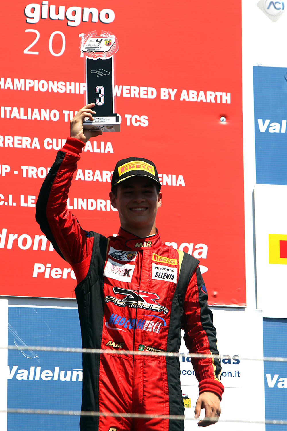 Velocidade no Asfalto Branquinho volta ao pódio na F4 Italiana Por Eni Alves Publicado em 28 de junho de 2017 Compartilhar no Facebook Compartilhar no Twitter Compartilhar no Google+ Compartilhar no Pinterest Pela divisão Rookie, piloto brasileiro chegou em terceiro numa das provas de Vallelunga (M. Nicoletti – Quick Comunicaão) Neste fim de semana a temporada da F4 Italiana chegou à sua terceira rodada com as disputas da 7ª, 8ª e 9ª etapas do Campeonato. Em seu ano de estreia na competição, representando a equipe DR Motorsport, o brasileiro Luiz Felipe Branquinho (Medcomerce) seguiu seu aprendizado e finalizou a primeira corrida no pódio entre os novatos, com a segunda posição. Branquinho, chegou à Vallelunga ainda na tarde de quinta-feira e, na sexta, em duas sessões de treinos livres, foi bastante rápido e evoluiu no decorrer das atividades. Com tranquilidade e um trabalho bastante focado o piloto de 17 anos assimilou todas as informações dos engenheiros da equipe e de todo o staff de mecânicos para melhorar suas marcas. A tomada de tempos foi disputada na manhã de sábado e, mesmo diante de 28 concorrentes o brasileiro registrou o 18º tempo para a primeira corrida e, para a segunda e terceira provas, o 17º e 18º tempos respectivamente. “Diante da minha evolução nos treinos esperávamos um resultado melhor para as largadas. Melhorei meu tempo em mais de sete décimos da primeira para a segunda sessão. Mas, vamos lá, vou buscar esta diferença nas corridas”, comentou o piloto. Ainda no sábado foi disputada a primeira prova. Luiz Felipe, após uma boa largada, conseguiu pouco a pouco ganhar posições. Muito concentrado o piloto impôs um bom ritmo e, no difícil “meio do pelotão”, conseguiu ser constante e rápido ganhando espaço entre seus concorrentes. Ao final das 19 voltas ele recebeu a bandeira quadriculada na 13ª posição geral o que lhe rendeu o terceiroo lugar entre os novatos, na divisão Rookie. Na segunda corrida, diferente da bateria anterior, Luiz Felipe não conseguiu ganhar muitas posições. Bloqueado por um adversário ele não conseguia fazer as ultrapassagens e, assim, buscou acelerar o quanto pôde e terminou a prova em 17º no geral (5º na Rookie). A última prova do fim de semana foi a mais esperada. Com um carro rápido Luiz Felipe sabia que poderia buscar até mesmo a vitória na Rookie. Seus planos, porém, foram interrompidos logo após a largada. Uma pane eletrônica apagou o volante do carro do brasileiro e, com isso, sem conseguir passar as marchas, ele acabou batendo na primeira curva. Mesmo com apenas uma marcha o piloto conseguiu levar o carro de volta ao box, trocou o bico danificado pelo toque e seguiu na prova. Mesmo sem chances de pontuar ele foi rápido e acumulou mais quilometragem para o restante da temporada. “Tirando o resultado da primeira corrida, no geral as classificações nas provas não foram boas. De todo modo, sinto que nosso carro evoluiu da última corrida para cá e, mais ainda, conseguimos evoluir os acertos aqui, entre uma atividade e outra. Estou conseguindo me adaptar bem e aprendendo cada vez mais sobre a categoria. A primeira vitória está próxima e, tenho certeza, em breve trarei resultados ainda melhores para o Brasil”, encerrou o representante da Medcomerce. Acompanhe Luiz Felipe Branquinho nas redes sociais: Instagram – @luizfbranquinho Facebook – @pilotoluizfelipebranquinho Foto: M.Nicoletti – Quick Comunicação Assessoria de Comunicação do piloto Luiz Felipe Branquinho Quick Comunicação e Marketing Jornalistas Responsáveis: Flávio Quick e Fabiola Cadar (31) 99955-1420 | (31) 3225-2236 Email: quickcomunicacao@gmail.com