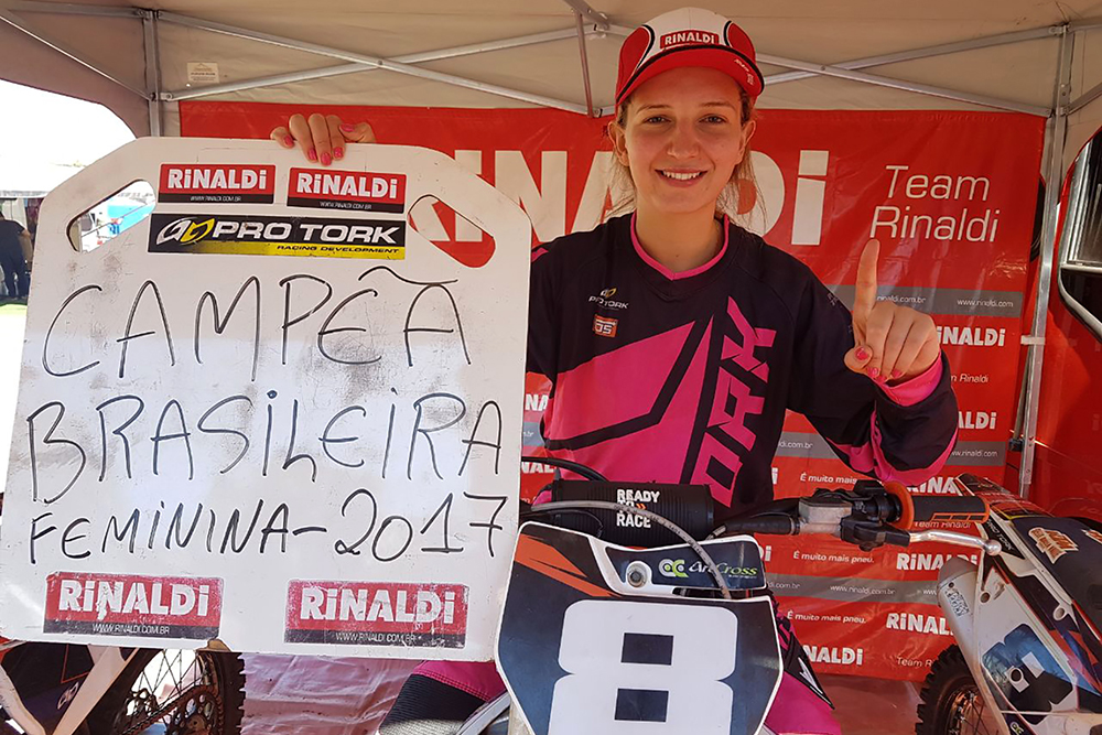 Motovelocidade Maiara Basso campe brasileira de velocross Por Eni Alves Publicado em 9 de agosto de 2017 Compartilhar no Facebook Compartilhar no Twitter Compartilhar no Google+ Compartilhar no Pinterest Gacha do Team Rinaldi conquista em casa a taça da classe VXF Maiara Basso, do Team Rinaldi, conquista título da VXF no Brasileiro de Velocross Crédito: Divulgao/Basso Racing Team Maiara Basso conquistou neste domingo (6) o título inédito da classe VXF no Campeonato Brasileiro de Velocross. Com 100% de rendimento nas corridas, a gaúcha do Team Rinaldi confirmou a terceira vitória consecutiva na competição com o apoio da torcida de Tapejara (RS). “Deu tudo certo, fiz uma ótima prova. Larguei na frente, imprimi um ritmo bom e foi uma vitória tranquila”, contou a competidora. Ela também possui em seu currículo dois títulos nacionais de motocross e um de Arena Velocross pela classe feminina. Como foi o ano de estreia da VXF no Brasileiro de Velocross, entrou para a história como a primeira campeã nacional da categoria. “Estou muito feliz com esse título, que com certeza tem um gosto especial. Quero agradecer a todos que torcem por mim e a Rinaldi, por proporcionar pneus excelentes e de ótima qualidade”, continuou a piloto. Ela utilizou os pneus RMX35 e HE40, da linha off-road da fábrica gaúcha. Para os homens, as corridas em Tapeja valeram pela quinta etapa do campeonato, a penúltima do calendário, e contaram com a presença dos irmãos de Maiara. Mateus Basso venceu a bateria da VX2 e Lucas foi o quinto colocado. Na VX1, Lucas ficou em segundo e Mateus, em quinto lugar, mesmo após cair duas vezes durante a corrida. As disputas também somaram pontos para o Gaúcho da modalidade. Brasileiro de Motocross em MG – Patrocinado pela Rinaldi, o Campeonato Brasileiro de Motocross reuniu grande público no Parque Municipal de Eventos de Extrema (MG). O evento teve entrada franca e valeu neste domingo (6) como a terceira etapa da temporada 2017. Frederico Spagnol foi o quinto colocado na soma das duas baterias da MX2, seguido por João Pedro Pinho Ribeiro. Na MX2Jr, Renan Goto “Japinha” confirmou a quinta colocação. Os pilotos representam a equipe Ipiranga Honda Rinaldi IMS na competição, cuja próxima etapa está marcada para o dia 3 de setembro em Uberlândia (MG). Sobre a Rinaldi – A Rinaldi iniciou as atividades em 1969 com 60 colaboradores e 15 mil m² de área fabril para produção de materiais de recauchutagem em Bento Gonçalves (RS). A empresa ampliou a produção com as câmaras de ar para as linhas automotiva, transporte e industrial na década de 80, além de introduzir a fabricação de pneus e câmaras de ar para as linhas de motocicletas, agrícola, industrial (não motorizada) e charretes. A busca pela excelência refletiu em credibilidade no mercado e fortes parcerias. Muito mais que em espaço físico, com área fabril de 35 mil m², a Rinaldi cresceu na geração de empregos diretos, atualmente com 700 colaboradores, e conquistou reconhecimento no mercado. A fábrica conta com a Certificação da Gestão de Qualidade ISO 9001:2015 e com o aval do INMETRO nos seus produtos da linha de motocicletas. Na área ambiental, a empresa possui o Certificado de Destruição Térmica, por destinar 100% dos seus resíduos sólidos a uma cimenteira para geração de energia. Para conhecer os produtos da Rinaldi, acesse o site oficial. Mundo Press