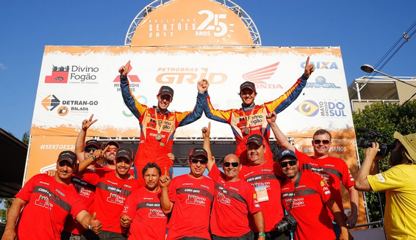Velocidade na Terra Bruno Varela e João Arena são Campeões do Rally dos Sertões entre os UTV Por Eni Alves Publicado em 30 de agosto de 2017 Compartilhar no Facebook Compartilhar no Twitter Compartilhar no Google+ Compartilhar no Pinterest Dupla com Can-Am Maverick X3 venceu com a vantagem de 7min56s Equipe Can-Am/Divino Fogão comemora vitória na UTV (Foto: Magnus Torquato/Fotop) A 25ª edição do Rally dos Sertões apresentou em Bonito (MS) novos campeões na categoria UTV. No trecho final do último dia da prova (Sábado – 28/8), a bordo de um Can-Am Maverick X3 a dupla Bruno Varela/João Arena (Can-Am/Divino Fogão/Blindarte/Arisun) A competição teve início em Goiânia (GO), e depois de sete dias os competidores completaram 3.300 km de desafios. “Finalmente conseguimos”, comemorou o jovem (21 anos) Bruno, o caçula da ‘Família da Poeira’, que nas duas últimas edições do principal evento do off-road nacional havia terminado em terceiro. “Estamos muito felizes, foi um Rally muito difícil. Com a ajuda dos meus irmãos, do João, meu navegador e de toda a equipe Divino Fogão fomos campeões”. Os seus irmãos mais velhos, Rodrigo e Gabriel Varela terminaram na 11ª e 12ª posições, respectivamente. A disputa foi muito acirrada e só foi definida no finalzinho da prova. Depois de seis dias e percorridos mais de 2.500 km por três Estados do Centro-Oeste, Bruno Varela e João Arena largaram de Aquidauana (MS) com uma desvantagem de 1min24s que deveriam descontar na última Especial cronometrada, de 240,45 km. E conseguiram. Além de se recuperarem, abriram uma folga de 7min56s sobre Lucas Barroso/Breno Rezende (Can-Am Maverick X3), que ficaram em segundo. “Gostaria de agradecer muito o meu navegador João Arena, que durante todo o percurso ajudou a me controlar”, afirmou Bruno. “Fizemos uma estratégia muito boa e por isto estamos muito felizes neste momento histórico. O nosso UTV Maverick X3 foi bravo e não deu problema, terminou pronto para mais um Sertões. E o Bruno pilotou bem e mostrou muita maturidade”, enfatiza Arena, engenheiro agrônomo de Botucatu (SP). Bruno Varela e João Arena viraram o jogo no último dia do Rally dos Sertões (Foto: Victor Eleutério/Fotop) O equipamento que a dupla Varela/Arena utilizou neste Rally dos Sertões foi fundamental o sucesso da equipe Can-Am/Divino Fogão/Blindarte/Arisun. “O UTV ajudou muito nessa conquista. Foi perfeito desde o início e não apresentou nenhum tipo avaria mecânica diante dos mais duros desafios. O único contratempo que tivemos foi com as rodas que importamos dos Estados Unidos, mas quando colocamos as peças originais do Maverick X3 resolvemos o problema”, acrescentou Bruno Varela, embaixador da Can-Am no Brasil. A equipe Divino Fogão Rally Team participou do 25º Rally dos Sertões com uma picape protótipo e três UTVs, contando com uma formação com 60 pessoas, chefiada por Marcus Cotton, com estrutura composta por dois caminhões, um motor-home, dois trailers para 10 pessoas cada um, três camionetes, dois carros e duas motos de apoio. Após sete etapas, os dez primeiros na classificação final dos UTV no Rally dos Sertões foram: 1) Bruno Varela/João Arena, Can-Am Maverick X3, 25h38min22s61; 2) Lucas Barroso/Breno Rezende, Can-Am Maverick X3, a 7min56s;3) Ismar Junior/André Galvão de Sá, Can-Am Maverick X3 XRS, a 29min43s; 4) Edu Piano/Solon Mendes, Can-Am Maverick X3 XRS, a 35min48s; 5) Marcelo Gastaldi/Claudio Silveira, Can-Am Maverick X3, a 41min54s; 6) Enrico Almeida/Fabio Pedroso, Can-Am Maverick X3, a 57min21s; 7) Zeca Sawaya/Marcelo Haseyama, Can-Am Maverick X3, a 1h24min56s; 8) Gabriel Cestari/Edgar Fabre, Can-Am X3 XRS, a 1h39min54s; 9) Daniel Mahseredjian/Sano Chermont, Can-Am Maverick X3 XRS, a 1h43min59s; 10) Rodrigo Betti/Daniel crema, Can-Am Maverick X3, a 2h16min35; 11) Rodrigo Varela/Idali Bosse, Can-Am Maverick X3, a 2h37min00s; 12) Gabriel Varela/Gabriel Morales, Can-Am Maverick X3, a 3h04min07s. A Família da Poeira tem o patrocínio de Can-Am, Divino Fogão, Blindarte, Arisun, e apoio de Colonial Racing e Maccain. Curta www.facebook.com/DivinoFogaoRallyTeam