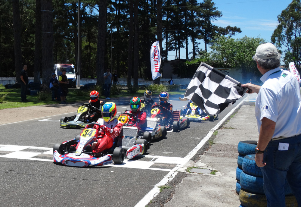 Compartilhar no Facebook Compartilhar no Twitter Compartilhar no Google+ Compartilhar no Pinterest O piloto curitibano Leonardo Torres (Link Monitoramento) conquistou o título da categoria Sênior, durante a terceira etapa do Campeonato Metropolitano de Kart de Curitiba 2017, realizada no sábado (28/10), no Kartódromo de São José dos Pinhais. A etapa foi disputada nas categorias Mirim, Cadete, Sênior, Master, F4 Livre e F4 Sorteado, com organização e supervisão da FPrA. Pilotando o Kart n.º 34, Leonardo Torres marcou a pole position, venceu as duas provas disputadas e com o descarte de uma prova regulamentar, sagrou-se campeão da temporada 2017 da categoria Sênior. A Equipe Link Monitoramento aproveitou os treinos livres para acertar o kart de Leonardo Torres (Link Monitoramento), que sempre andou entre os primeiros em sua categoria. Durante o Treino Classificatório, Leonardo Torres marcou o tempo de 33s655, na sexta volta, garantindo a pole position, com Fernando Túlio em segundo, 33s942, Markenson Marques em terceiro, 34s099, Iuri Ziemer em quarto, 34s114, e, Douglas “Fera” em quinto, 34s255. Com o apoio do torcedor “número um”, seu pai Sílvio Torres, o piloto Leonardo Torres (Link Monitoramento) foi para a primeira prova da categoria Sênior confiante num bom resultado, pois conseguiu andar muito bem na pista do Kartódromo de São José dos Pinhais. Leonardo largou na frente, manteve a primeira posição e aos poucos foi abrindo vantagem para os adversários até a bandeirada final. Após 27 voltas, a vitória foi de Leonardo Torres, com tempo total de 15min35s112, seguido de Douglas “Fera” Pierosan, a 2s844, Markenson Marques, a 4s860, Iuri Ziemer, a 5s547, e, Nirson Jacomar, a 15s173. A volta mais rápida da prova foi de Iuri Ziemer, com tempo de 34s301, na 9.ª passagem. Leonardo Torres (Link Monitoramento) largou mais uma vez na frente na segunda prova e travou bom “pega” com o Douglas “Fera” Pierosan pela liderança da corrida, mas com o auxílio do seu pai Silvio Torres, que foi um show à parte sinalizando na pista, recebeu a bandeirada final em primeiro lugar. Depois de 26 voltas, nova vitória de Leonardo Torres, com tempo de 15min04s623, tendo Douglas “Fera” Pierosan em segundo, a 0s703, Fernando Túlio em terceiro, a 8s517, Nirson Jacomar em quarto, a 15s408, e, Amilcar Mugnaini em quinto, a 19s799. Douglas “Fera” Pierosan marcou a volta mais rápida da prova, com o tempo de 34s551, na 11.º passagem. “Foi uma conquista difícil, onde eu tinha que vencer e torcer por uma combinação de resultados para chegar ao título. Então, me preparei para fazer a minha parte e conquistei a pole-position, que foi muito importante para chegar à primeira vitória. Largando na frente mais uma vez, a segunda corrida foi mais difícil, numa boa disputa com o Douglas Fera, mas consegui vencer. Nessa categoria que é muito disputada, com bons pilotos no grid é muito importante largar na frente. Nossa equipe está de parabéns, pois trabalhou muito e me ajudou nessa importante conquista”, declarou Leonardo Torres (Link Monitoramento). – Classificação Final – Somados os pontos das duas provas disputadas no Kartódromo de São José dos Pinhais, a classificação final da terceira etapa do Metropolitano de Kart de Curitiba 2017, na categoria Sênior foi a seguinte: 1.º) Leonardo Torres, 45 pontos; 2.º) Douglas “Fera” Pierosan, 37; 3.º) Fernando Túlio, 25; 4.º) Markenson Marques, 24; e 5.º) Iuri Ziemer e Nirson Lenz, 23. Classificação Final do Metropolitano de Kart de Curitiba na Sênior: 1.º) Leonardo Torres, 93; 2.º) Iuri Ziemer, 87; 3.º) Fernando Túlio, 82; 4.º) Markenson Marques, 66; e 5.º) Douglas “Fera” Pierosan, 65. Por Bispo Neto