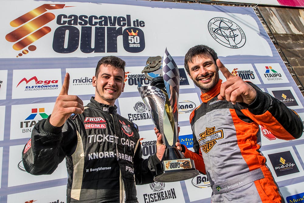 Velocidade no Asfalto Gustavo Magnabosco/Eduardo Berlanda fazem a pole position na 31ª Cascavel de OuroGustavo Por Eni Alves Publicado em 5 de novembro de 2017 Compartilhar no Facebook Compartilhar no Twitter Compartilhar no Google+ Compartilhar no Pinterest Maior vencedor da prova, Edgar Favarin, em dupla com o filho sai na primeira fila Magnabosco e Berlanda comemoram primeiro lugar no grid Foto: José Mário Dias A chuva que caiu sobre o Autódromo Zilmar Beux de Cascavel desde a tarde de ontem alternou as condições de pista nos treinos classificatórios do sábado (4). Do meio do treino em diante a pista secou e aumentou a disputa pela pole position para a 31ª Cascavel de Ouro. A dupla de Santa Catarina formada por Gustavo Magnabosco e Eduardo Berlanda estabeleceu a melhor média de volta, considerando os tempos dos dois pilotos, em treinos classificatórios em separado, com a marca de 1min23s173 com o Gol da Pein Competições. Ao lado na primeira fila a dupla formada pelo pai Edgar Favarin e o filho Rafael Favarin, no Gol da Stumpf-Paraguay Racing. Edgar é o maior vencedor da Cascavel de Ouro com seis vitórias. A volta deles teve tempo de 1min23s379. A segunda fila vai ter o Ford Fiesta dos paranaenses Leandro Zandoná e Paulo Pizzoni, da Ferrari Motorsport com 1min23s380. Ao lado, em quarto lugar, outro Ford Fiesta, do gaúcho Luiz Ribeiro e do mato-grossense Peter Ferter, 1m23s471. Os primeiros 40 lugares no grid foram definidos nas tomadas de tempo. Da 41ª em diante entraram os dez primeiros colocados na corrida extra de repescagem no sábado à tarde, em que foram para a pista 15 pilotos. A corrida neste domingo (5) terá três horas de duração com TV ao vivo pelo Bandsports no Brasil e para Estados Unidos, Paraguai, Uruguai, Argentina além de Moçambique e Angola pelo canal internacional da Band. A Catve de Cascavel também vai transmitir ao vivo para sua região com narração de Luciano Monteiro, comentários de Eduardo Homem de Mello e reportagens de Osires Nadal Jr. O prêmio ao primeiro colocado é de R$ 100 mil. Gustavo Magnabosco “É uma honra representar nosso estado (Santa Catarina), receber o apoio de nossas famílias. E uma alegria uma pole num grid com pilotos experientes”. Eduardo Berlanda”Hoje arriscamos mais, mas na corrida teremos de serem mais conservadores. Embora as circunstâncias de prova sejam que vão ditar uma estratégia. Vamos ter que ficar atendo também às estratégias dos adversários”. Edgar Favarin”Estou feliz, uma primeira fila em dupla com o filho. Superou qualquer expectativa”. Rafael Favarin”Correr ao lado do pai é mais que um sonho. Estratégias para a prova? Vamos ter de combinar”. Leandro Zandoná”Conseguimos uma boa classificação. A corrida será mais estratégica do que rápida. A ideia e ‘não se envolver em acidentes”. Luiz Ribeiro”A expectativa inicial era modesta, queríamos estar entre os 40. Mas ao acerto inicial deu certo, mantivemos e fomos seguindo aquela filosofia de acerto, fomos melhorando”. Peter Feter “Eu achava que pelo que vinhamos melhorando estaríamos entres os dez primeiros. Agora em quarto lugar a ideia é pisar fundo, acelerar, Ninguém vai poupar carro”.