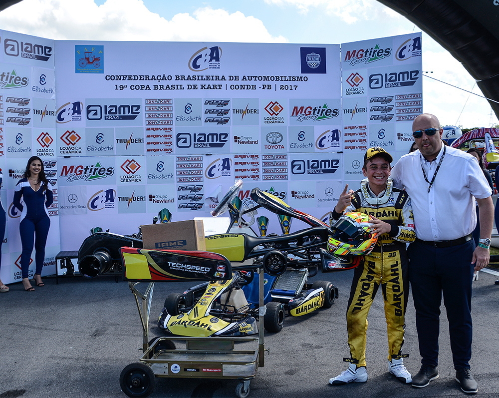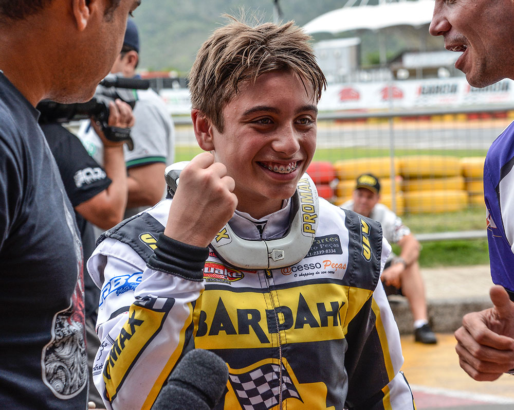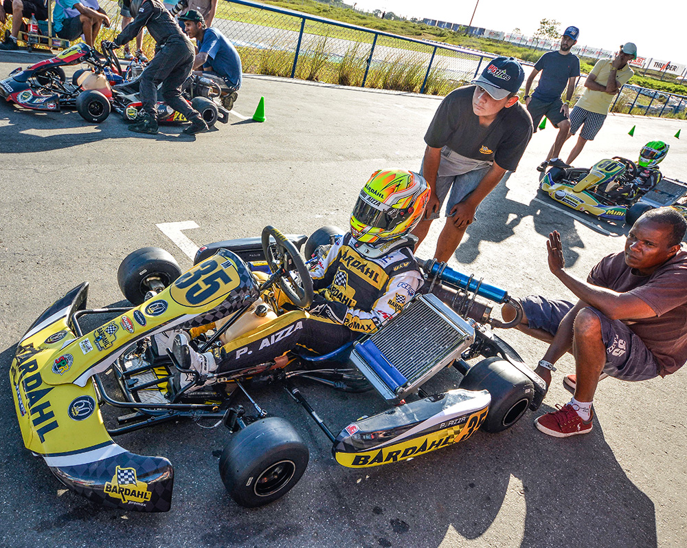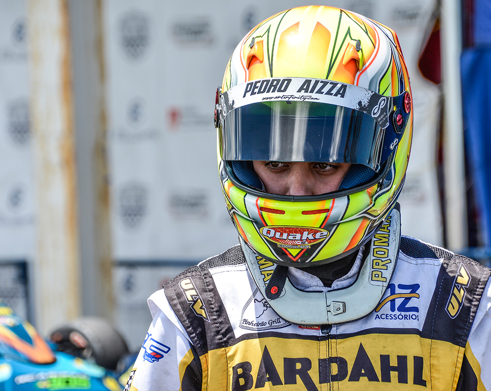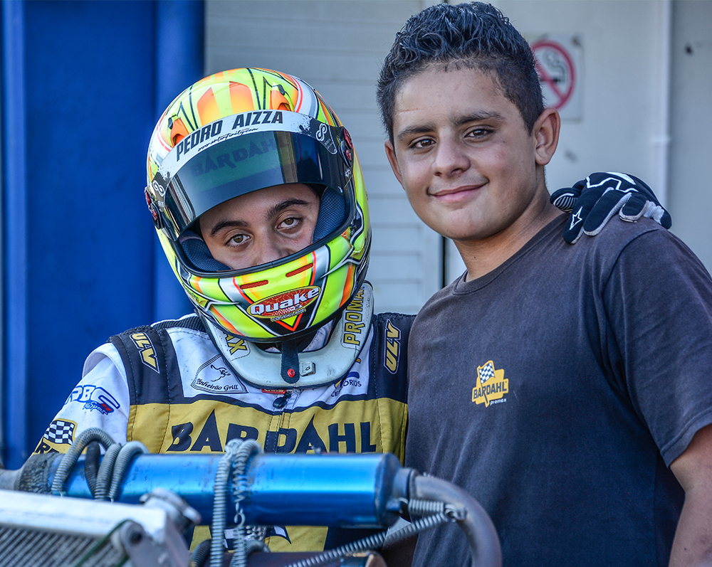 Compartilhar no Facebook Compartilhar no Twitter Compartilhar no Google+ Compartilhar no Pinterest Aos 12 anos de idade o piloto curitibano Pedro Aizza já sabe bem o que quer no futuro. “Quero ser piloto profissional. A Fórmula 1 é o maior desejo, mas atualmente, parece um sonho extremamente árduo e difícil de realizar. Se eu firmar carreira em uma categoria de Turismo, ficarei muito satisfeito. Afinal, não existe nada melhor do que trabalhar com o que se ama, não importa onde”, enfatiza o piloto. Campeão Brasileiro pela Mirim em 2013, Pedro Aizza conquistou nos anos seguintes o título máximo nos três estados do Sul: Rio Grande do Sul, Paraná e Santa Catarina. Foi campeão Sul Brasileiro, campeão do Top Kart Brasil em 2014, por duas vezes ficou no Top 5 no Campeonato Sul-Americano Rotax Micro Max (2014 e 2015), campeão da Copa SPR Light em 2017 e o título da Copa Brasil era o único nacional que faltava em seu currículo. Em outubro de 2017, no kartódromo Paladino Internacional, na Paraíba, Pedro Aizza era um dos nomes entre tantos fortes candidatos ao título pela categoria Júnior Menor. Marcou o quinto melhor tempo e largou na terceira fila na primeira bateria classificatória. “Fiz uma boa largada, assumi a segunda posição logo no início e mantive o ritmo até a bandeirada final. Na segunda bateria, largando por fora, fui cauteloso com o objetivo de me manter no posto e consegui. Na prova Final, novamente larguei bem. As disputas foram tensas e intensas, mas depois de ser vice-campeão da Copa Brasil por duas vezes (2013 e 2015), finalmente consegui o título. Agradeço de mais a minha equipe, à Bardahl e, principalmente, ao meu pai, Edson Aizza, que não mede esforços para me acompanhar de perto e me dar força quando alguma coisa me desanima”, comentou Pedro Aizza. Pelo que parece, até o momento, tudo caminha bem para que o jovem piloto alcance o seu propósito. Pedro Aizza tem talento nas pistas, carisma e conta com um patrocinador que acredita na sua competência, foco e dedicação: A Bardahl. Aliás, uma das poucas empresas de renome nacional que investe na categoria de base do automobilismo nacional e em piloto fora da grande São Paulo. “Na temporada 2018 o Pedro migra para a categoria Júnior na qual o peso e a velocidade do kart são maiores do que na categoria atual. Em janeiro ela inicia os treinos e a adaptação do novo equipamento e temos certeza de que será mais um ano de grandes disputas e muito trabalho”, conclui Edson Aizza, pai de Pedro. Texto e fotos: Eni Alves Galeria de fotos: A vitória de Pedro Aizza emocionou a equipe do piloto. O piloto curitibano largou na segunda posição, soube aproveitar uma oportunidade e tomou a liderança na Copa Brasil de KArt, na Parabíba. Além do troféu de campeão, Pedro Aizza recebeu de prêmio um kart para a temporada 2018 na Júnior. Concentração no parque fechado para a corrida final da Copa Brasil de Kart, no Paladino “Eu precisava desta vitória”, comentou Aizza ao final da prova que deu a ele o título de campeão da Copa Brasil de Kart. Não foi fácil conquistar o título da Copa Brasil. Aizza teve concorrentes fortes o tempo todo muito próximos. As disputas foram intensas nas três provas da Copa Brasil de KArt de 2017. Aizza bem recepcionado após a vitória na Paraíba. Pedro Aizza foi constante nas provas classificatórias da Copa Brasil de Kart 2017 O jovem piloto projeta o futuro na categoria Turismo Pedro Aizza com a cinegrafista Tika Oliveira, que o acompanha desde a Mirim, e o pai, Edson Aizza Pedro tem grande amizade com os integrantes da equipe. O momento “interior” antes da prova. Pedro Aizza fez teve também boa atuação na Copa SPR, em 2017. A regularidade na Copa SPR, no Beto Carrero-SC, deu ao piloto o título de campeão em 2017 além do talento, carisma e alegria são adjetivos do piloto curitibano