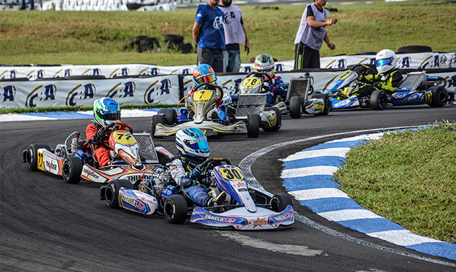 Compartilhar no Facebook Compartilhar no Twitter Compartilhar no Google+ Compartilhar no Pinterest Brasiliense conquistou seu primeiro título na nova categoria, onde estreou nesta temporada Vinícius Tessaro (30) foi campeão em Londrina. Foto: Eni Alves Depois de um começo bastante difícil, quando o acerto do equipamento e a adaptação a um novo traçado foram os principais problemas, o brasiliense Vinícius Tessaro voltou para casa comemorando a conquista de mais um título nacional. Em Londrina, no Paraná, ele sagrou-se campeão sul-brasileiro pela primeira vez em sua carreira depois de vencer as três baterias da programação e marcar o máximo dos pontos disponíveis na disputa. Em nova categoria nesta temporada, Vinícius Tessaro vem mostrando bela adaptação aos desafios da Júnior Menor. Líder na categoria nos dois principais campeonatos de São Paulo, a Copa São Paulo Light e a Copa São Paulo KGV, ele chegou à Londrina como um dos principais candidatos ao título. “Foram poucos treinos, apenas três, bastante curtos e isso tudo em um único dia. Com isso o Vinícius e a equipe tiveram problemas para acertar o kart e para que ele se adaptasse ao traçado, inédito para ele até então”, conta Rita Tessaro, mãe de Vinícius. Respaldado, porém, por uma equipe competente, comandada pelo preparador Miguel de Oliveira, Tessaro conseguiu evoluir na competição. Após o último treino, praticamente “às cegas” a M O Racing trabalhou duro, fez modificações e as testou no aquecimento pré-tomada de tempos. Quarto colocado na atividade, o brasiliense partiu animado para a sessão classificatória. Com um tempo apenas 18 milésimos de segundos mais lento que o pole-position, Vinícius Tessaro garantiu a segunda posição no grid de largada da primeira bateria. Logo na primeira curva após a largada, o brasiliense assumia a ponta para receber a bandeirada em 1º, resultado que repetiria nas duas corridas seguintes. Assim, somando a pontuação máxima, Vinícius Tessaro comemorava a conquista do título na 21º Campeonato Sul-Brasileiro na Júnior Menor, o primeiro na nova categoria. “Tudo começou bastante difícil e em um traçado que o Vinícius considerou como o mais difícil que enfrentou até aqui”, resume Rita Tessaro. “Mas tanto ele como a equipe se mantiveram focados e determinados, trabalharam muito e conquistaram mais um importante título para sua carreira”, finaliza. KG COM Assessoria de Comunicação – Erno Drehmer (MTb/RS 14.706)