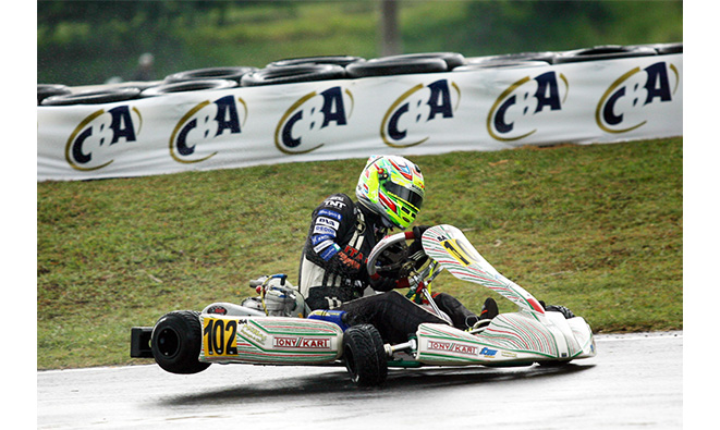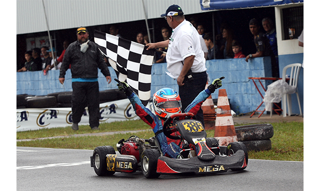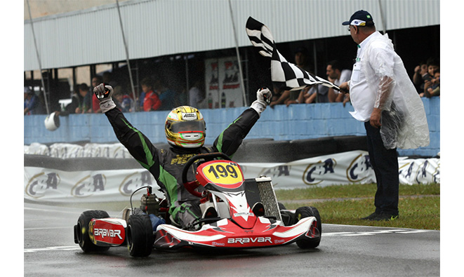 Compartilhar no Facebook Compartilhar no Twitter Compartilhar no Google+ Compartilhar no Pinterest Correndo em casa, os londrinenses brilharam e conquistaram quatro dos seis títulos do Paraná no 21º Campeonato Sul-Brasileiro de Kart Largada Sênior A e B. Foto Eni Alves Com os londrinenses brilhando, o Paraná fez seis campeões no 21º Campeonato Sul-Brasileiro de Kart, encerrado sábado no Kartódromo Luigi Borghesi, em Londrina. A competição superou todas as expectativas, com a participação de 136 pilotos do Paraná, São Paulo, Rio de Janeiro, Santa Catarina, Rio grande do Sul, Distrito Federal, Goiás, e do Paraguai. As provas foram todas de alto nível e mostraram que o futuro do kartismo brasileiro está garantido em função do alto nível apresentado pelas categorias de base (Mirim, Cadete, Júnior Menor, Júnior, Novatos e Graduados). O Paraná liderou o ranking de campões, com seis títulos. Os paranaenses campeões foram Victor Hugo Carvalho (Londrina), na categoria Sênior B; Lucas do Valle (Londrina), na F-4 Graduados); Leonil Reis (Londrina), na F-4 Super Sênior; Antônio Oliveira Júnior, na Super Sênior; Filipe Vriesman (Carambeí), na Mirim; e Alan Synthes (paulista que fez carteira no Paraná), na categoria Sênior A. Os dois títulos de Santa Catarina foram conquistados por João Pedro Maia na categoria Júnior, e Gabriel Moura na categoria Cadete. Os outros campeões foram Olin Galli (Rio de Janeiro), na categoria Graduados; Renato Cavalcante (Mato Grosso do Sul), na F-4 Sênior; Vinicius Tessaro (Goiás), na Júnior Menor; e Enzo Caporale de Sá (São Paulo), na categoria Novatos. Nas categorias A categoria Graduados teve o domínio dos pilotos do Rio de Janeiro, que ocuparam as três primeiras colocações. Olin Galli foi o campeão, tendo André Nicastro como vice-campeão; e João Renato Corbellini em terceiro. O paranaense Pedro Saderi, de Londrina, se classificou em quarto. A categoria Júnior teve o catarinense João Pedro Maia, como campeão, seguido dos paranaenses Luiz Fernando B. Berbel, José Luiz Muggiati, Pedro Aizza e Nathan Maia Brito, que pela ordem ocuparam as cinco primeiras posições na classificação final. O Paraná conquistou o título na categoria Sênior A, com Alan Synthes. O também paranaense Alessandro Xavier é o vice-campeão; e o paulista Marcelo Vaz se classificou em terceiro. Os paranaenses dominaram a categoria Sênior B. Correndo em casa, o londrinense Victor Hugo Carvalho sagrou-se campeão, com Fernando Carrara, também de Londrina, sendo o vice-campeão; e José Pontalti Júnior, de Arapongas, cidade vizinha, a Londrina, conquistando o terceiro lugar. O segundo título de Santa Catarina foi conquistado por Gabriel Moura, na categoria Cadete. Heitor Dall’Agnol, do Rio Grande do Sul, obteve o vice-campeonato, ao passo que o paranaense Eduardo Palu de Araújo se classificou em terceiro. O londrinense Lucas do Valle fez valer o fator casa e colocou o Paraná no ponto mais alto do pódio, sagrando-se campeão da categoria F-4 Graduados. O catarinense Allan Ramos garantiu o vice-campeonato, ao passo que Gabriel Sgarioni, também paranaense de Londrina, subiu ao pódio na terceira colocação. Renato Cavalcante mostra-se como o maior destaque do kartismo do Mato Grosso do Sul na atualidade e conquistou o título da categoria F-4 Sênior. O vice-campeão é o catarinense Flaviano Ramos, ao passo que Jefferson Tierling, paranaense de Londrina, obteve o terceiro lugar. O domínio de Filipe Vriesman, paranaense de Carambeí, só não foi completo na categoria Mirim porque na primeira bateria, no sábado, foi o segundo colocado. Ele largou na pole e ganhou a segunda bateria, largou na pole na Final e conquistou a vitória, confirmando o título. O paulista Rafael Diniz conquistou o vice-campeonato, ao passo que Yuri Morelli Pereira, também de São Paulo, se classificou em terceiro. Leonil Fernandes garantiu mais um título para o Paraná e para Londrina. Ele é o campeão da categoria F-4 Sênior. César Santos, de Santa Catarina garantiu o título de vice-campeão, ao passo que o paranaense Samurai Sam se classificou em terceiro. Vinicius Tessaro, goiano de Formosa, levou o título da categoria Júnior Menor, ao passo que Raphael Futsuki, paranaense de Guarapuava, é o vice-campeão; enquanto que Samuel Cruz, paranaense de Campo Mourão, se classificou na terceira colocação. A categoria Novatos teve o paulista Enzo Caporale de Sá como campeão, ao passo que o vice-campeão é o paraguaio Arthur Sampaio Rossafa, de Hernandarias, enquanto que o terceiro lugar ficou com o catarinense Gustavo Moura. O quinto título do Paraná e o quarto de Londrina foi conquistado por Antônio Oliveira Júnior na categoria Super Sênior. O domínio foi dos paranaenses. Manuel Queiroz, de Curitiba, sagrou-se vice-campeão; e Doglas Pierosan, de São José dos Pinhais, subiu ao pódio na terceira colocação. O 21º Campeonato Sul-Brasileiro de Kart teve promoção e organização da Associação dos Kartistas da Região de Londrina (AKRL), com supervisão da Federação Paranaense de Automobilismo (FPrA) e apoio da Federação de Automobilismo do Estado de Santa Catarina (Fauesc) e da Federação Gaúcha de Automobilismo (FGA). Classificação final do 21º Campeonato Sul-Brasileiro de Kart Categoria Graduados Olin Galli vence a prova da Graduados. Foto Eni Alves 1º) Olin Vieira Galli, com 27, 5 pontos 2º) André Nicastro, 22, 5 3º) João Renato Corbellini, 19 4º) Pedro Saderi, 18, 5 5º) Christian Fliter, 13, 5 6º) Pedro Lopes, 13 7º) Nicolas Fliter, 10 8º) Victor Backes, 10 9º) Stefano Marins, 9, 5 10º) Vinicius Kwong, com 9 pontos Categoria Júnior João Pedro Maia superou as dificuldades da pista molhada para ser campeão da categoria Júnior 1º) João Pedro Maia, com 27, 5 pontos 2º) Luiz Fernando B. Berbel, 20, 5 3º) José Luiz Osti Muggiati, 20 4º) Pedro Aizza, 18 5º) Nathan Maia Brito, 16 6º) Idilson Branco Vieira da Si