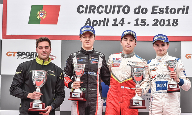 Velocidade no Asfalto Com uma vitória e um segundo lugar, Felipe Drugovich é líder do Euroformula Open Por Eni Alves Publicado em 16 de abril de 2018 Compartilhar no Facebook Compartilhar no Twitter Compartilhar no Google+ Compartilhar no Pinterest Brasileiro da RP Motorsport é o único piloto a alcançar o pódio nas duas corridas da etapa de abertura da temporada em Portugal Felipe Drugovich é líder do campeonato após com vitória e segundo lugar Foi de Felipe Drugovich o desempenho mais positivo nas duas corridas que marcaram sábado (14) e domingo (15), no circuito português de Estoril, a abertura da temporada de 2018 do Euroformula Open. O piloto brasileiro da RP Motorsport venceu a primeira prova do fim de semana de ponta a ponta, depois de largar da pole position. Na segunda, largando em terceiro, cruzou a linha de chegada em segundo, a 0s276 do vencedor argentino Marcos Siebert. O desempenho na primeira das oito etapas do Euroformula Open valeu ao paranaense de 17 anos a liderança do campeonato. Único piloto a alcançar o pódio nas duas provas portuguesas, ele totalizou 44 pontos, seis a mais que o vice-líder, e firmou seu nome na lista dos principais candidatos ao título da categoria, que prevê as corridas de sua segunda etapa na França, no circuito de Paul Ricard, nos dias 5 e 6 de maio. Na tomada de tempos que definiu o grid da segunda corrida, disputada com pista molhada, Drugovich assegurou o terceiro lugar, a 0s011 do romeno Petru Florescu, pole position, e a 0s010 de Siebert. O piloto brasileiro da RP Motorsport repetiu na prova deste domingo a estratégia que o levou à vitória no sábado, de poupar o equipamento – sobretudo os pneus – visando manter nas voltas finais o nível de competitividade verificado durante toda a etapa. Na quarta volta de corrida, Drugovich ultrapassou o alemão Jannes Fittje e voltou ao terceiro lugar de largada. Três voltas depois, assumiu o segundo lugar superando Florescu. Imprimindo um ritmo forte, o piloto brasileiro passou a registrar tempos de volta mais rápidos que o líder. Com isso, a diferença caiu de 4s a 0s7 de segundo a três voltas da bandeirada final. Com mais de cinco segundos de vantagem sobre o holandês Bent Viscaal, que terminaria em terceiro lugar, o brasileiro ensaiou a manobra de ultrapassagem três vezes na última volta – Siebert chegou a bloquear as rodas de seu carro ao defender a liderança pela linha interna do traçado ao fim da reta dos boxes. EUROFORMULA OPEN – ETAPA DE PORTUGAL (Resultado final da segunda corrida após 19 voltas) 1º) Marcos Siebert (ARG/Campos Racing), 30min34s156 2º) Felipe Drugovich (BRA/RP Motorsport), a 0s276 3º) Bent Viscaal (HOL/Teo Martin Motorsport), a 5s425 4º) Jannes Fittje (ALE/Drivex School), a 13s287 5º) Petru Florescu (ROM/Fortec Motorsport), a 13s422 6º) Cameron Das (EUA/Carlin Motosport), a 14s313 7º) Matheus Iorio (BRA/Carlin Motorsport), a 15s279 8º) Guilherme Samaia (BRA/RP Motorsport), a 28s657 9º) Alex Karkosik (POL/Campos Racing), a 28s939 10º) Aldo Festante (ITA/RP Motorsport), a 31s099 11º) Calan Williams (AUS/Fortec Motorsport), a 32s497 12º) Lukas Dunner (AUT/Drivex School), a 34s874 13º) Michaël Benyhaia (MAR/RP Motorsport), a 37s193 14º) Moritz Müller-Crepon (CHE/Teo Martin Motorsport), a 39s565 15º) Yves Baltas (EUA/Campos Racing), a 1min34s442 NÃO COMPLETOU Christian Hahn (BRA/Drivex School), a 16 voltas Melhor volta: Siebert, na 3ª, 1min35s144, média de 158,245 km/h A temporada do Euroformula Open terá sequência em Le Castellet, na França. As provas da segunda etapa, no circuito de Paul Ricard, vão acontecer nos dias 5 e 6 de maio. Após duas corridas, a classificação do campeonato é: 1º) Felipe Drugovich, 44 pontos; 2º) Marcos Siebert, 38; 3º) Bent Viscaal, 25; 4º) Cameron Das e Matheus Iorio, 24; 6º) Jannes Fittje, 16; 7º) Petru Florescu, 11; 8º) Guilherme Samaia, 10; 9º) Lukas Dunner, 8; 9º) Alex Karkosik, 2. Grelak Comunicação – Fotos: reprodução Euroformula Open)