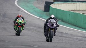 Motovelocidade Alexandre Barros volta ao pódio na 4ª etapa do SuperBike Brasil em Interlagos Por Eni Alves Publicado em 23 de julho de 2018 Compartilhar no Facebook Compartilhar no Twitter Compartilhar no Google+ Compartilhar no Pinterest Experiente piloto teve fim de semana intenso na preparação da moto e na superação das dores por conta da fratura no ombro. Garantiu top-10 na prova 1 e ficou em segundo lugar na corrida 2 Barros na segunda prova (Sampafotos) Em um fim de semana de emoções distintas, Alex Barros demonstrou todo seu talento e força de superação, já que ainda se recupera da queda sofrida na etapa de junho, quando fraturou o ombro direito, para garantir um Top-10 na primeira prova e depois brigar pela vitória e conquistar o segundo lugar na segunda bateria. Ambas as disputas foram realizadas neste domingo (22) no autódromo de José Carlos Pace, em Interlagos (SP), e foram válidas pela quarta etapa do SuperBike Brasil. Com os resultados, o piloto da equipe Alex Barros Racing avançou na classificação e agora ocupa o quarto lugar na tabela da categoria PRO, com 51 pontos. O próximo desafio será no dia 19 de agosto, novamente no circuito paulistano. Corrida 1 A primeira corrida deste domingo em Interlagos foi emocionante, e como era de se esperar, contou com boas disputas. Alex Barros fez excelente largada e saltou para a ponta, assumindo o primeiro lugar. Aos 47 anos, o experiente piloto liderou a disputa até a terceira volta, quando o uruguaio Maximiliano Gerardo fez bela manobra, conseguindo uma ultrapassagem dupla sobre Barros e Eric Granado. A partir daí os três travaram ótima disputa pelo primeiro lugar, mas na sétima volta na saída do S, o piloto da BMW S 1000 RR #4 perdeu o ponto de frenagem por um milésimo e a frente da moto escapou, o que ocasionou uma queda do piloto da Alex Barros Racing. Determinado e com condições, Barros levantou seu equipamento e voltou para a disputa, pois sabe da importância de marcar alguns pontos. Terminou a corrida em oitavo na geral e em quinto na categoria PRO. “Fiz uma boa largada, estava indo muito bem. A ideia era guardar para a parte final. Vim mantendo um ritmo forte junto com o Eric, depois que ele me passou. Não deixei ele fugir, mas acabei cometendo um pequeno erro. Freei um pouco mais dentro do que deveria e a moto acabou escorregando o pneu dianteiro. Se eu tivesse soltado o freio um milésimo antes, não teria acontecido. Sei que é coisa de corrida, mas fico chateado, porque tinha condições de brigar até o final. Duas voltas mais e já ia começar a aparecer quem tinha o melhor acerto com o pneu gasto e a gente trabalhou muito em cima disso no fim de semana”, contou Alex Barros. Corrida 2 A segunda corrida foi realizada no período da tarde. A disputa que encerrou a programação da categoria SBK contou com um clima ambiente mais frio. A queda na temperatura também deixou a pista mais fria, o que exigiu mais atenção dos pilotos. Novamente, Alex Barros fez ótima largada e saltou para a ponta. Impôs um ritmo forte, abriu um pouco dos concorrentes, mas, algumas voltas depois, Alex começou a ser pressionado por Eric Granado. O piloto da BMW S 1000 RR #4 se defendeu bem, e ficou na liderança até o sexto giro, demonstrando total domínio nas frenagens. Mas na sexta volta o jovem Granado tentou uma nova investida e conseguiu a ultrapassagem. Alexandre Barros manteve ritmo forte, chegou a incomodar o líder e de novo se defendeu bem das investidas, desta vez do piloto Maximiliano Gerardo, na manutenção do segundo lugar, posição que completou a bateria. “Consegui fazer uma boa largada de novo. Mudei um pouco a estratégia e, ao invés de manter a cautela no início, já comecei a puxar nas primeiras voltas, pra ver se impunha ritmo. Sabia que o Eric iria atacar e, quando isso aconteceu, não é desculpa, mas infelizmente minha viseira estava embaçada e eu já estava com dificuldade de enxergar antes dele me passar. É muito difícil abrir a viseira deste capacete, mas eu consegui abrir e, depois de umas duas voltas, desembaçou. Eu estava usando um produto anti foco interno e quando ele embaça demora muito pra desembaçar. Por isso que, logo que ele me passou, ele abriu e depois se estabeleceu a diferença. O Eric está andando muito bem, mas aquelas duas voltas me custaram a briga no final”, avaliou o piloto. Alexandre Barros destacou o ótimo trabalho de sua equipe e de seus parceiros no desempenho da moto. “O importante é que conseguimos melhorar. Foi um esforço muito grande do time, da BMW, da equipe Althea do Mundial de Superbike, da Mupo, da Pirelli, um bom trabalho das nossas parcerias técnicas, tão importantes para que a moto melhorasse e isso aconteceu e foi de forma significativa. Agora só faltam detalhes. Estou bem confiante para o restante do campeonato. Uma pena a primeira corrida, mas vamos focar nessas pequenas melhorias que faltam para buscar a vitória nas próximas etapas”, encerrou. Resultado 1ª Corrida SBK: 1) 51-Eric Granado (PRO), 14 voltas em 23min13s786 2) 41-Maximiliano Gerardo (PRO), a 16.958 3) 28-Pedro Sampaio (PRO), a 20.352 4) 17-Danilo Lewis (PRO), a 36.886 5) 146-Rodrigo Dazzi (E), a 56.750 6) 6-Jeferson Friche (E), a 56.772 7) 12-Davi Costa (E), a 56.831 8) 4-Alex Barros (PRO), a 56.932 9) 56-Julio Fortunato (E), a 1:06.224 10) 77-Luciano Pokemon (E), a 1:06.366 11) 23-Diego Viveiros (E), a 1:29.608 12) 32-Leandro Esposito (E), a 8 voltas 13) 177-Marcelo Skaf (E), a 11 voltas Resultado 2ª Corrida SBK: 1) 51-Eric Granado (PRO), 12 voltas em 20min09s599 2) 4-Alex Barros (PRO), a 2.163 3) 41-Maximiliano Gerardo (PRO), a 9.055 4) 28-Pedro Sampaio (PRO), a 21.973 5) 17-Danilo Lewis (PRO), a 36.547 6) 146-Rodrigo Dazzi (E), a 51.129 7) 12-Davi Costa (E), a 51.213 8) 6-Jeferson Friche (E), a 51.716 9) 177-Marcelo Skaf (E), a 57.307 10) 77-Luciano Pokemon (E), a 59.349 11) 56-Julio Fortunato (E), a 1:00.169 12) 23-Diego Viveiros (E), a 1 volta C