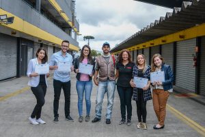 Compartilhar no Facebook Compartilhar no Twitter Compartilhar no Google+ Compartilhar no Pinterest Realizada no final de semana no kartódromo Raceland Internacional, em Pinhais-PR, a 4ª etapa da Copa Super Paraná de Kart (SPK) teve disputas acirradas na pista e belas ações fora dela. As corridas tiveram a pontuação válida pela 2ª etapa do Torneio de Inverno e reuniu 74 pilotos. Os treinos oficiais aconteceram no sábado e enquanto os karts tinham atividades na pista, alunos de jornalismo tiveram atividades nos boxes em uma oficina de fotojornalismo e vídeo documentário esportivos oferecidos gratuitamente pela APK-RMC (Associação de Pilotos de Kart da Região Metropolitana de Curitiba) com certificado de hora/atividade. A tomada de tempo e as duas corridas tiveram prosseguimento no domingo. Pilotos, equipes e familiares contribuíram com a ação social promovida pela APK e fizeram a doação de alimentos não perecíveis para o IPC (Instituto Paranaense de Cegos). No intervalo do almoço a equipe Ramos Racing em parceria com a APK fez a entrega de 30 brinquedos para o Instituto AMA (Associação Mantenedora de Apoio à Criança de Risco e com Câncer) em uma ação solidária em campanha para o Dia das Crianças. Além disso, o Instituto Beija-flor (IBF), que executa projetos de atendimento e apoio à criança em situação de vulnerabilidade social, manteve uma barraca de venda de algodão doce e outras delícias no pátio do evento. Toda a arrecadação será revertida em benefício das crianças atendidas pelo IBF. Consciência sustentável é outro projeto que a APK apoia e compartilha. O artesão Juliano Mattos fez uma exposição de artefatos decorativos feitos a partir da reciclagem de pneus. Vendeu várias peças e as pessoas que estiveram no evento já sabem que o lixo pode ser transformado em luxo. Um belo destino aos pneus usados de carros e de karts. Na pista algumas corridas foram definidas pela pontinha do bico do kart, e teve piloto que saiu de trás do pelotão e foi crescendo até conquistar uma posição no podium. Na categoria Júnior, Pedro Ebrahim foi absoluto. Largou na pole e venceu as duas baterias tornando-se o campeão da etapa. Braian Fabrini e Enzo Macena foram o segundo e o terceiro lugares, respectivamente. A Júnior Menor e a Novato entraram juntas na pista e fizeram o publico vibrar. Bernardo Licheski e Felipe Turci, da Novato, travaram bons pegas com Felipe dos Santos e Gabriel Paiva, da Júnior Menor, revezando a liderança das provas. Embora a pontuação das categorias seja separada, todos queriam receber a bandeira quadriculada em primeiro lugar. Na Novato, Felipe Turci conquistou o troféu de campeão com um primeiro e um segundo lugares. Bernardo Licheski e Kattlyn Magno, nesta sequência, ladearam Licheski no podium. Na Júnior Menor, Gabriel Paiva levou a melhor e o troféu de campeão da etapa seguido de Felipe dos Santos e Bernardo Athayde. Na categoria Shifter, Gustavo Kiryla largou na frente. Em disputas intensas com Nathaniel Bueno os dois se tocaram, perderam a liderança e a vitória da primeira prova para Felipe Wolf. Nathaniel Bueno venceu a segunda corrida e ganhou o troféu de campeão da etapa. Felipe Wolf, Gustavo Kiryla, Luis Turmina e João Apolônio completaram as cinco posições do podium. A F4 e a F4 Master juntas reuniram 23 pilotos e o maior grid do final de semana. Com disputas acirradas em diversos pontos e vários líderes no revezamento das provas Diego Said conquistou o degrau mais alto do podium pela F4. Paulo Rosseti, que largou da 21ª colocação na primeira bateria, encerrou a rodada em segundo lugar. Willian Ferens, Alessandro Marchini e Roberto Wuthstrach Jr completaram as cinco primeiras posições. Na F4 Master, Pablo Margeon foi o vencedor seguido de Nestor Ferens e Samurai Sam. Destinadas a pilotos entre 7 e 10 anos, as categorias Mirim e Cadete deram um show a parte. A primeira bateria, que teve Dimas Mota largando na pole, foi vencida por Dudu Palu por dois milésimos de segundo de diferença para Mota depois de 12 voltas de fortes emoções e disputas em várias posições. Na segunda bateria, foi a vez de Mota chegar em primeiro, com uma diferença um pouquinho maior para Palu, 0s027. No podium, Mota subiu no primeiro lugar ladeado por Dudu Palu e Alfredinho Ibiapina. Erick Schotten e Gabriel Malucelli completaram os cinco degraus. Romullo Ribas venceu na Cadete Rookie, seguido de João Figueiredo e Breno Ebrahim. Na Mirim, Felipe Vriesman foi o campeão da etapa seguido por Christiam Mosimann, Artur Bessa, Augustus Toniolo e Davi Seibt. Na Sênior, dividida em classe A, B e Super, 18 pilotos apresentaram boas disputas, mas as vitórias foram dos pole positions. Na Sênior A e na Geral, Leonardo Torres foi perfeito vencendo as duas provas e conquistando o troféu de campeão da etapa, seguido de José Pinheiro, Mauro Carvalho e Lico Kaesemodel. Na B, o vencedor foi Gonçalo Alage. Rafael Mansur, André Neves, Luiz Lucatto e Igor Taques completaram as cinco primeiras posições. Na Super Sênior, Markenson Marques foi absoluto e subiu no alto do podium ladeado por Manoel Queiroz e Doglas Pierosan. Carlos Gonzales e Marcos Ramos ocuparam o quarto e o quinto lugares. A próxima etapa da Copa Super Paraná de Kart está marcada para os dias 10 e 11 de novembro e definirá os campeões do Torneio de Inverno. O evento tem o patrocínio da Intersept Seguros, da M&L Produções e apoio da Sanepar, WL Impressões e Auxiliar Serviços. Alunos de jornalismo receberam certificado de hora/atividade das oficinas de fotojornalismo e video documentário esportivos oferecidos pela APK. equipe Ramos Racing em parceria com a APK doou 30 brinquedos para o Instituto Ama. As simpáticas representantes do Instituto Paranaense de Cegos (IPC) Texto: Eni Alves Fotos: Eni Alves e Gilmar Rose.