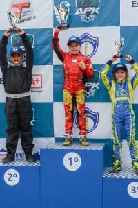 Com a vitória na Cadete Rookie, Romullo Ribas diminui a diferença para o líder e se mantém no páreo do título do Torneio de Inverno. Compartilhar no Facebook Compartilhar no Twitter Compartilhar no Google+ Compartilhar no Pinterest A 4ª etapa da Copa Super Paraná de Kart (SPK), válida também pela 2ª do Torneio de Inverno, realizada no último domingo (30/09), no kartódromo Raceland Internacional, em Pinhais-PR, contou com a boa torcida do “Menino de “Ferro”, Romullo Ribas, que não decepcionou. Ele venceu as duas corridas da Cadete Rookie e diminuiu a diferença de pontos para o líder, se firmando no páreo do titulo do Torneio de Inverno. O campeão do Torneio será definido na 5ª etapa da Copa SPK, agendada para os dias 10 e 11 de novembro, no mesmo local. O próximo compromisso do piloto será o Open do Catarinense de Kart, programado para os dias 20 e 21 de outubro, em Caçador, no meio-oeste catarinense. Com o objetivo de conquistar o título do Campeonato do estado vizinho, o “Menino de Ferro” segue para Caçador no próximo final de semana para conhecer o traçado do kartódromo Tutas Olsen. Romullo Ribas conquista pontos importantes para o Torneio de Inverno e a Copa SPK. Siga o piloto na rede social www.facebook.com/pilotoromulloribas.