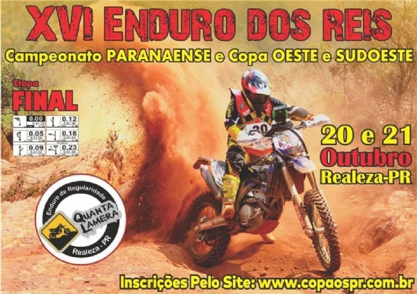 Motovelocidade Pilotos aceleram na final do Paranaense de Enduro de Regularidade, em Realeza Por Eni Alves Publicado em 16 de outubro de 2018 Compartilhar no Facebook Compartilhar no Twitter Compartilhar no Google+ Compartilhar no Pinterest Enduro de Regularidade Disputa acontece neste fim de semana, dias 20 e 21 de outubro, durante o tradicional Enduro dos Reis O Campeonato Paranaense de Enduro de Regularidade terá as duas últimas etapas da temporada 2018 realizadas neste fim de semana, dias 20 e 21 de outubro, durante o XVI Enduro dos Reis, na cidade de Realeza, localizada na região Sudoeste do estado. Os principais pilotos da modalidade já confirmaram presença e a expectativa é de muita emoção e adrenalina. Na categoria principal, a Master, os três primeiros colocados ainda podem ser campeões, são eles: Emerson “Bombadinho” Loth, Jony Jachtchechen e Alessandro Costa. Na Sênior, a situação se repete com Claudio Hiert, Péricles Dutra e Andre Miglioranza. E na Júnior, a mesma coisa, só que com os pilotos Gustavo Hiert, Julio Moro e Vinicius Belle. Em outras duas classes, os títulos já foram definidos. Clecio Hiert comemorou a conquista da taça antecipada na Over 40, enquanto Evair Pedro Cardoso foi o melhor na Novatos. “É muito gratificante, esse é meu sexto título no estadual, são três na Master, um na Sênior e dois na Over. Agora é ir com tudo para a final, não é porque sou campeão que não vou lutar pela vitória”, exalta Clecio. A programação inicia no sábado, às 8h, com o briefing para os participantes. Já no domingo, às 9h, os competidores partem do Posto Petrobras 4 Rodas para 120 quilômetros de trilha por estradas da região, boa parte com terreno pedregoso. O público tem acesso liberado para prestigiar o evento, que é bastante tradicional e irá exigir preparo físico dos atletas. Serviço: Paranaense de Enduro de Regularidade 2018 Etapas: 11 e 12 (final) Data: 20 e 21 de outubro Local: Posto Petrobras 4 Rodas – Realeza (PR) Inscrição: R$ 150 – www.copaospr.com.br Hotel oficial: Morangos Hotel – (46) 3543-2038 Entrada: Franca ID – Assessoria de Comunicação Estratégica Jornalista Responsável: Daniela Burgonovo