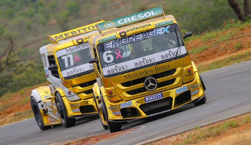 Velocidade no Asfalto Copa Truck Caminhões podem bater recorde de velocidade em Curitiba com mudanças nos restritores Por Eni Alves Publicado em 21 de novembro de 2018 Compartilhar no Facebook Compartilhar no Twitter Compartilhar no Google+ Compartilhar no Pinterest Grande Final terá os dois pilotos da Império Truck Racing. Crédito: RR Media/Rodrigo Ruiz Império Truck Racing parte para a decisão com força máxima André Marques e Wellington Cirino estão prontos para a Grande Final da Copa Truck, no próximo dia 2 de dezembro, no Autódromo Internacional de Curitiba. O time chega credenciado como o único que tem dois pilotos campeões das copas regionais e uma das maiores pontuações individuais da temporada. Juntos, eles garantiram 16 pódios e 5 pole-positions ao longo das oito etapas disputadas. Na sede da equipe AM MotorSport/Império Truck Racing, o time de mecânicos faz os últimos ajustes sob a coordenação do engenheiro Franz Schmidt e do preparador Pipo Ferreira, de olho em uma situação que promete deixar ainda mais emocionante a decisão do campeonato. O regulamento prevê que os caminhões não utilizarão os restritores de turbina menores (70 mm a 78mm) que foram utilizados, respectivamente, pelos cinco primeiros colocados de cada etapa na etapa seguinte como forma de equalização. “Como todos os caminhões estarão com o restritor de 80mm, a briga será boa. O time está todo empenhado em deixar os caminhões com o melhor ajuste possível, especialmente no quesito durabilidade, que é um dos pontos fortes da Mercedes-Benz. Estamos trabalhando para colocar os dois caminhões no pódio e brigar pelo título, respeitando muito o potencial dos nossos adversários”, disse Pipo Ferreira. “Os restritores iguais deixam a disputa muito competitiva. Os caminhões que andaram com restritores menores no decorrer da temporada, que é o nosso caso, a tendência é que se ganhe em retomada nas saídas de curvas, maior potência e melhor chegada no fim das retas, com mais velocidade”, ressalta Franz Schimidt, lembrando da longa reta do autódromo paranaense. Além dos pilotos da Império Truck Racing, a Grande Final tem na briga pelo título Felipe Giaffone, Renato Martins, Roberval Andrade e Giuliano Losacco, que utiliza um caminhão Iveco e terá restritor de 85mm. A equipe AM Motorsport/Império Truck Racing tem o patrocínio da Cerveja Império, Dopamina Energy Drink, e o apoio do Mercedes Club e Cresol. O time acelera os caminhões Mercedes-Benz Actros 2646. Programação da Grande Final Sexta-feira 30/11 13h15 – 1º Treino Livre – 50min 15h40 – 2º Treino Livre – 50 min Sábado 01/12 08h50 – 3º Treino Livre – 50min 12h20 – Treino Classificatório Domingo 02/12 08h20 – Warmup – 15min 13h05 – Largada Corrida 1 13h45 – Largada Corrida 2