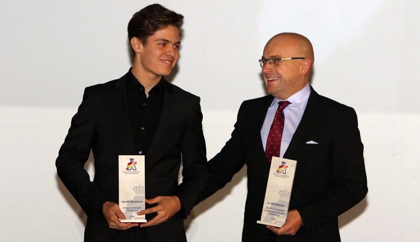 (crédito da foto - Grelak Comunicação/Divulgação Euroformula F3 open): Após temporada extraordinária, Felipe Drugovich recebeu o troféu do Euroformula F3 Open no Sábado (15) Compartilhar no Facebook Compartilhar no Twitter Compartilhar no Google+ Compartilhar no Pinterest Depois da festa de encerramento da temporada e conquista do título espanhol, o piloto passa férias no Brasil A temporada de pista de Felipe Drugovich terminou em outubro, com a conquista do Euroformula F3 Open. Mas, oficialmente, os compromissos do paranaense de 18 anos na Europa só se encerraram no sábado (15) após a cerimônia de premiação do campeonato, no Casino de Madrid, Espanha. Na noite anterior, na sexta-feira (14), Felipe já havia recebido o troféu na tradicional festa de encerramento de ano promovida pela Federação Espanhola, que homenageia os campeões em todas as categorias do automobilismo espanhol. Felipe Drugovich foi o campeão na categoria Fórmula 3 espanhola, em que valeram a pontuação das etapas de Estoril, Jerez de La Frontera e Barcelona do Euroformula F3 Open. “Foi um fechamento de ano com chave de ouro. Os troféus representam meu trabalho e da equipe num clima muito bom, de alto nível, integrado, que reflete na grande temporada que tivemos”, comentou Felipe. O piloto já está no Brasil para as festas de fim de ano com a família. Ele vai cumprir alguns compromissos com a imprensa e tirar suas merecidas férias. O tio e mentor Claudio Drugovich conduz a sequência da carreira e as opções do piloto para 2019. Felipe Drugovich conquistou o campeonato 2018 da Euroformula F3 Open com uma temporada extraordinária. Ele foi campeão antecipado, faltando quatro corridas para o fim do campeonato. Com o encerramento da temporada, Drugovich conquistou ainda o recorde absoluto da história da categoria com 14 vitórias, 2 segundos lugares, 9 pole positions e 10 voltas mais rápidas em 16 corridas. 18/12/2018 – Grelak Comunicação