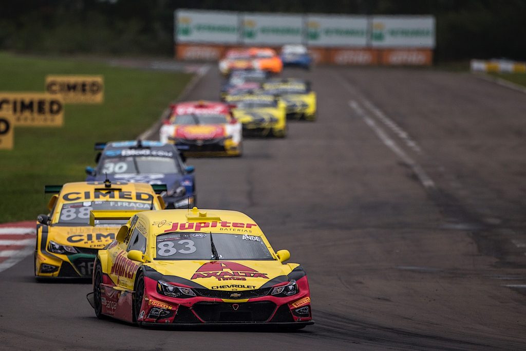 Compartilhar no Facebook Compartilhar no Twitter Compartilhar no Google+ Compartilhar no Pinterest Paranaense fez sua primeira corrida com o time de Petrópolis e esteve na briga pelas primeiras colocações em toda prova, recebendo a bandeirada na nona colocação Gabriel Casagrande (Bruno Terena) A Stock Car realizou hoje, no Velopark, a sua corrida de número 500 e a emoção ficou por conta da chuva, que trouxe um ingrediente extra para os 28 pilotos que participaram da prova também comemorativa dos 40 anos da principal categoria do automobilismo brasileiro. Os três primeiros colocados mantiveram os pneus slicks na janela de pit obrigatória – mas a maioria do grid optou por calçar os de pista molhada. A chuva, porém, caiu apenas na hora do pit e com a pista secando os três chegaram a colocar uma volta de vantagem para o quarto colocado. Na turma que colocou pneu de chuva, Gabriel Casagrande foi destaque em sua estreia pela equipe Crown Racing. Quarto melhor piloto nesta condição, ele só foi superado pelos cinco pilotos que colocaram slick em uma estratégia arriscada mas que se mostrou acertada ao final da prova. Com isso, o paranaense recebeu a bandeirada na nona colocação, conquistando um top-10 em sua estreia no novo time de Petrópolis (RJ). “Eu achei que demoraria para me adaptar com o novo carro, mas precisei apenas duas voltas para me sentir bem. Foi um trabalho perfeito da equipe de engenharia e dos mecânicos da Crown Racing. Terminamos em nono lugar, mas poderíamos ter brigado pelo pódio se as condições fossem diferentes no classificatório. Nós queríamos chegar no pódio, mas com certeza teremos outras chances ao longo do ano”, diz Casagrande, que tem patrocínio de Baterias Júpiter, Axalta, STP e Sanpac. “Foi uma corrida bem diferente por causa da estratégia de pneus. Meu para-brisa estava inteiro molhado e eu senti que estava chovendo, então optei por trocar os pneus, mas assim que voltei para a pista a chuva parou. Nós fizemos uma aposta e acabou não sendo a estratégia vencedora, mas estou bem contente com o meu ritmo de corrida”, completa Casagrande. A próxima etapa da Stock Car será em maio, no circuito do Velocitta, no interior de São Paulo. Resultado completo da corrida: 1 . Daniel Serra ( Eurofarma RC ), 46 voltas 2 . Rubens Barrichello ( Full Time Sports ), a 22s893 3 . Ricardo Maurício ( Eurofarma RC ), a 44s775 4 . Thiago Camilo ( Ipiranga Racing ), a 1 volta 5 . Felipe Fraga ( Cimed Racing ), a 1 volta 6 . Marcos Gomes ( KTF Sports ), a 1 volta . 7 . Nelson Piquet Jr ( Full Time Sports ), a 1 volta 8 . Cesar Ramos ( Blau Motor Sports ), a 1 volta 9 . Gabriel Casagrande ( Crown Racing ), a 1 volta 10 . Julio Campos ( Prati-Donaduzzi Racing ), a 1 volta 11 . Ricardo Zonta ( Shell V-Power ), a 1 volta 12 . Allam Khodair ( Blau Motor Sports ), a 1 volta 13 . Lucas Foresti ( Vogel Motorsport ), a 1 volta 14 . Gaetano di Mauro ( Shell Helix Ultra ), a 1 volta 15 . Rafael Suzuki ( Hot Car Competições ), a 1 volta 16 . Max Wilson ( RCM Motorsport ), a 1 volta 17 . Bruno Baptista ( RCM Motorsport ), a 1 volta 18 . Diego Nunes ( KTF Sports ), a 1 volta 19 . Bia Figueiredo ( Ipiranga Racing ), a 2 voltas 20 . Galid Osman ( Shell Helix Ultra ), a 2 voltas 21 . Cacá Bueno ( Cimed Racing ), a 2 voltas 22 . Denis Navarro ( Cavaleiro Sports ), a 2 voltas 23 . Felipe Lapenna ( Cavaleiro Sports ), a 2 voltas 24 . Guga Lima ( Vogel Motorsport ), a 29 voltas 25 . Valdeno Brito ( Prati-Donaduzzi Racing ), a 40 voltas 26 . Marcel Coletta ( Crown Racing ), a 43 voltas 27 . Pedro Cardoso ( Hot Car Competições ), a 43 voltas Classificação completa da Stock Car 2019: 1 . Daniel Serra 30 2 . Rubens Barrichello 26 3 . Ricardo Maurício 22 4 . Thiago Camilo 19 5 . Felipe Fraga 17 6 . Marcos Gomes 15 . 7 . Nelson Piquet Jr 14 8 . Cesar Ramos 13 9 . Gabriel Casagrande 12 10 . Julio Campos 11 11 . Ricardo Zonta 10 12 . Allam Khodair 9 13 . Lucas Foresti 8 14 . Gaetano di Mauro 7 15 . Rafael Suzuki 6 16 . Max Wilson 5 17 . Bruno Baptista 4 18 . Diego Nunes 3 19 . Bia Figueiredo 2 20 . Galid Osman 1 Por Rodrigo França