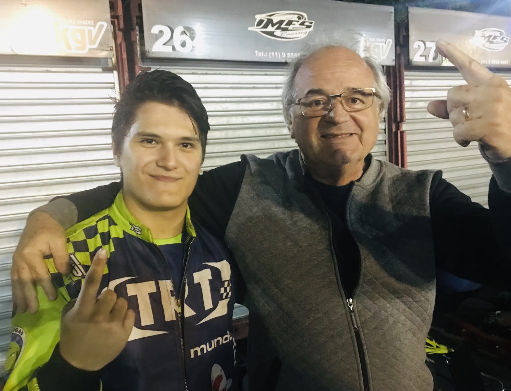 Compartilhar no Facebook Compartilhar no Twitter Compartilhar no Google+ Compartilhar no Pinterest Dupla Sandro Ferraris/Alberto Otazú está em quarto no campeonato da Akasp Alberto Otazú e Sandro Ferraris comemorando a primeira vitória na F-4 (Foto: Divulgação) Em sua quarta experiência com um kart da categoria F-4, o piloto Alberto Otazú (AVSP/Rolley Ball/Cardoso Funilaria e Pintura/Imab Fechaduras/No Fire Services) conquistou a sua primeira vitória no campeonato da Akasp. A sexta etapa do segundo turno do certame monomarca (Mega/Honda) foi realizada na noite de segunda-feira (03/6), no Kartódromo Granja Viana, em Cotia (SP). “Estou muito feliz com esta primeira vitória com F-4, pois larguei atrás e corremos numa pista traiçoeira, sem qualquer grip”, comemorou Alberto Otazú. “Dedico esta vitória ao Sandro Ferraris, que me deu a oportunidade de fazer dupla com ele. Com certeza ele está ajudando a alavancar a minha carreira”, agradeceu o jovem piloto. Alberto Otazú largou da sétima posição e foi fazendo ultrapassagens seguras numa pista úmida e suja pelas chuvas que caíram sobre o kartódromo durante a tarde. Ao final das 42 voltas, Otazú recebeu a bandeirada de vitória com a vantagem de 2s247 sobre Eder Ayres, o segundo colocado. Em terceiro terminou Otávio Lotfi, seguido de Arnaldo Biondo e Alexandre Albino, campeão do primeiro turno. “Foi uma corrida muito difícil pelas condições da pista, associado ao desgaste dos pneus. No terço final da prova o kart começou a sair muito de frente, e tive que manter a concentração até a bandeirada para não errar. Foi duro, mas o resultado foi ótimo”, completou Otazú. Terminando no sexto posto, Emílio Biondo manteve a liderança do segundo turno, ao lado de seu companheiro Bruno Biondo. A sétima e penúltima etapa do segundo turno da Akasp será realizada no dia 12 de junho, novamente no Kartódromo Granja Viana, em Cotia (SP). Resultado da sexta etapa do segundo turno da F-4 da Akasp: 1) Alberto Otazú, 42 voltas em 25min02s582; 2) Eder Ayres, a 2s247; 3) Otávio Lotfi, a 10s890; 4) Arnaldo Biondo, a 22s216; 5) Alexandre Albino, a 23s774; 6) Emilio Biondo, a 35s103. Classificação do 2º turno da F-4 da Akasp: 1) Emilio Biondo/Bruno Biondo, 121 pontos; 2) Otávio Lotfi, 118; 3) Arnaldo Biondo/Bruno Biondo, 112; 4) Sandro Ferraris/Alberto Otazú, 110; 5) Eder Ayres/Giovanni Bondança, 104; 6) Ademir Garcia Jr/Gabriel Chinellatto, 102; 7) Carlos Santana, 92; 8) Alexandre Albino, 92; 9) Hélio Bianchi, 90; 10) Emerson Rildo, 72. Alberto Cesar Otazú tem o apoio de Autódromo Virtual de São Paulo (AVSP), Rolley Ball, Cardoso Funilaria e Pintura, Imab Fechaduras, No Fire Services. O jovem apoia as ações da Associação Cruz Verde, Direção para a Vida e Rotary Club Agua Espraiada. Acompanhe www.facebook.com/albertocesar.otazu Curta www.facebook.com/associacaocruzverde Curta www.facebook.com/DirecaoParaAVida Visite www.akasp.com.br