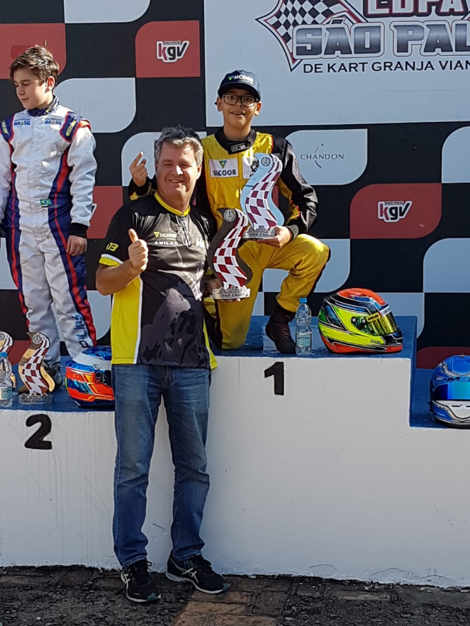 Compartilhar no Facebook Compartilhar no Twitter Compartilhar no Google+ Compartilhar no Pinterest Quinta etapa foi disputada no último sábado no Kartódromo Granja Viana, em Cotia (SP) Luigi Di Lazzaro e o preparador Cláudio Dantas, o “Sabiá” (Divulgação) 0 Segunda vitória consecutiva e liderança isolada. Foram estes os elementos que fizeram a alegria do piloto mineiro Luigi Di Lazzaro (Sicoob – Credivass | Anilag | Techspeed) no último sábado (8), quando foi disputada a 5ª etapa da Copa Rotax de Kart, no Kartódromo Granja Viana, em Cotia (SP), de forma paralela à Copa São Paulo KGV. Piloto da Rotax Mini Max, categoria em que faz sua estreia na atual temporada, Di Lazzaro esteve muito perto de conquistar mais uma pole position – teria sido a quarta em cinco corridas. Porém, apenas 121 milésimos de segundo mais lento, o mineiro ficou com a segunda posição no treino classificatório, de onde largou para a primeira bateria. Fazendo uma largada conservadora, Luigi perdeu uma posição, mas em poucas voltas recuperou-a, para logo depois assumir a ponta em definitivo e partir para a vitória. Agora largando na pole position, Di Lazzaro teve uma segunda bateria extremamente disputada e equilibrada. Com várias trocas de posição entre ele e outros dois concorrentes, a segunda bateria da Rotax Mini Max empolgou o público presente. O lindo duelo perdurou até a última volta e finalizou com Luigi Di Lazzaro (Sicoob – Credivass | Anilag | Techspeed) em segundo, exatamente à frente de seu maior concorrente neste momento na luta pelo título. Desta forma, somados os pontos das duas baterias, Luigi Di Lazzaro, que compete na equipe Sabiá Racing, subiu no pódio na primeira posição, comemorando a vitória na etapa, tanto na divisão Rookie – destinada aos estreantes – quanto na categoria principal. “A etapa foi muito equilibrada, mas me mantive focado nas disputas, pois, além de planejar as ultrapassagens, eu tinha que me preocupar com quem vinha atrás de mim. Graças a Deus deu tudo certo”, contou Luigi Di Lazzaro. “Estamos muito contentes, foi um final de semana perfeito, que contou com a segunda vitória consecutiva do Luigi no campeonato em um duelo direto com seu maior concorrente”, vibra Danilo Di Lazzaro, pai do piloto. “Além disso, esta vitória nos colocou na liderança isolada do campeonato nas duas divisões da Copa Rotax, o que é muito importante para nossos planos futuros de participarmos do Rotax Max Challenge International Trophy na França, e também mantivemos a ponta da tabela de classificação no Torneio de Inverno. Agradecemos mais uma vez pelo apoio de nossos patrocinadores e pelo sempre eficiente trabalho da Sabiá Racing”, finaliza. KG COM Assessoria de Comunicação – Erno Drehmer (MTb/RS 14.706)