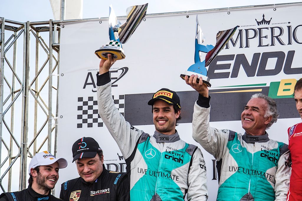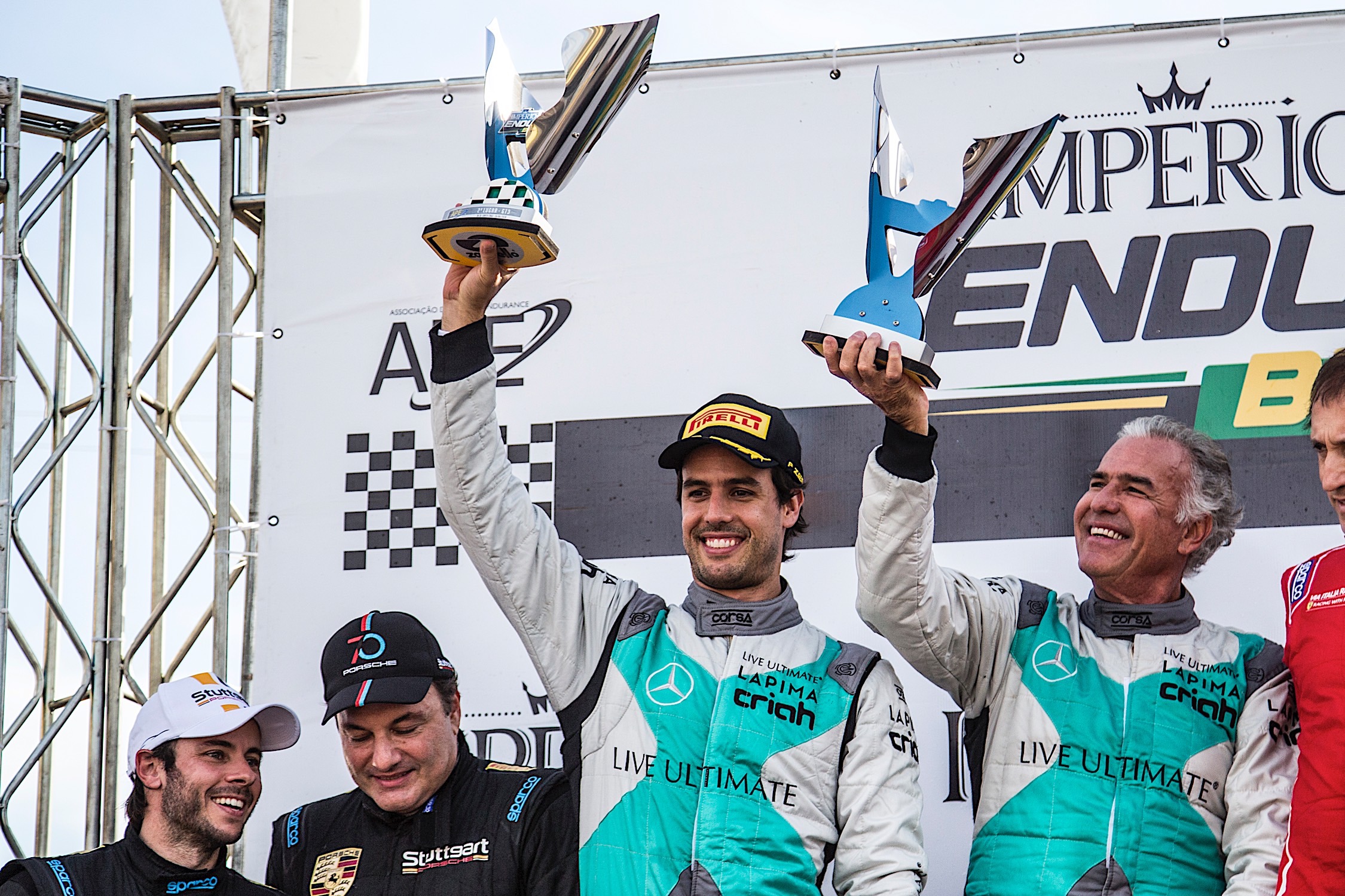 Compartilhar no Facebook Compartilhar no Twitter Compartilhar no Google+ Compartilhar no Pinterest Endurance Brasil: Xandy e Xandinho Negrão continuam líderes do campeonato Pódio GT3 (Bruno Terena) O Império Endurance Brasil disputou neste sábado, sua terceira etapa da temporada 2019, com a prova Três Horas de Santa Cruz do Sul, cidade do interior do Rio Grande do Sul. Xandy e Xandinho Negrão que tinham a meta de continuar na ponta da tabela conseguiram alcançar o objetivo e somaram com esse resultado: 290 pontos na GT3 mantendo assim a liderança da categoria e 215 pontos no campeonato da geral. A corrida terminou depois de 119 voltas no circuito gaúcho e a bordo da Mercedes AMG #09, pai e filho, subiram no pódio e conquistaram a segunda posição na GT3 e chegaram em sétimo na geral. “Lideramos na GT3 até faltar vinte minutos para acabar a corrida, então fizemos tudo certo, tem coisas que não conseguimos prever, como a entrada do safety car, e depois agrupou todo mundo, e a Ferrari e o Porsche estavam com pneus melhores, e nos passaram. No final o Porsche quebrou faltando poucas voltas para acabar a prova, não teve sorte. Para nós, o resultado foi bom, vimos os três primeiros dos protótipos chegando com doze segundos de diferença depois de três horas de prova, nós também da GT3, diferenças de segundos, então acho que a categoria está no caminho certo”, relatou Xandy Negrão. A estratégia da equipe Scuderia 111 teve que ser mudada com a entrada do safety car, o que acabou agrupando os principais adversários da dupla. “Meu pai acabou rodando com um toque em um protótipo no final da reta, isso no segundo stint dele, o que atrapalhou um pouco a nossa estratégia. Teríamos um pneu pior no último stint e não sabíamos exatamente como o Porsche e a Ferrari estavam de pneus, quando a gente viu o ritmo deles, deu pra ver que estávamos ‘descasados’ nessa questão. Eles estavam muito melhores, e ainda deu um safety car, foi o que prejudicou a nossa estratégia, mas saímos no lucro com esse problema do Porsche”, explicou Xandinho Negrão. A próxima etapa acontece no dia 27 de julho, onde o Império Endurance Brasil desembarca novamente no Rio Grande do Sul, mas no circuito do Velopark, em Nova Santa Rita.