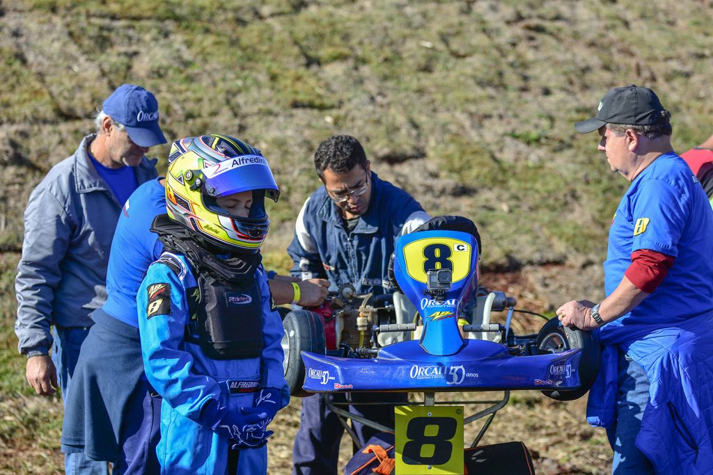 Compartilhar no Facebook Compartilhar no Twitter Compartilhar no Google+ Compartilhar no Pinterest O Kartódromo Delci Damian, em Cascavel, recebeu de 27 a 29 de junho, pilotos de várias regiões do país para o Open do Brasileiro de Kart, a última competição oficial antes do campeonato mais importante do país, que acontece de 15 a 27 de julho, no mesmo local. Com 29 participantes na categoria Cadete o piloto Alfredinho Ibiapina (Orcali) iniciou a primeira bateria de provas na sexta-feira na 13ª posição do grid e encerrou, no sábado, no lugar mais alto do pódio. Foram três corridas muito disputadas. Na primeira prova, largando do 13º lugar do grid, Ibiapina se envolveu em alguns enroscos e cruzou a linha de chegada na 15ª colocação. Já na segunda, fez boa prova de recuperação. Volta a volta o piloto foi conquistando posições e recebeu a bandeira quadriculada em segundo lugar. E na disputa decisiva, largou bem e foi administrando a posição até a penúltima volta quando fez a ultrapassagem que garantiu a vitória. A soma dos resultados colocou Ibiapina no lugar de honra do pódio do Open do Brasileirão. “Foi uma ótima preparação para o campeonato Brasileiro e a confirmação de que estamos no caminho certo. São quase dois anos de muito trabalho desenvolvendo o kart e a pilotagem do Alfredinho, e ele tem nos dado muitas alegrias. É incrível a determinação dele na recuperação de posições. Esperamos e acreditamos que tudo isso pode se converter em um bom resultado no campeonato nacional”, comentou Jefferson Neves, preparador da equipe A8 Racing. Alfredinho Ibiapina e a equipe A8 Racing na concentração antes da corrida. Acompanhe mais notícias sobre o piloto nas redes sociais www.facebook.com/alfredinhoibiapina e Instagram @alfredinhoibiapina. Texto e fotos: Eni Alves