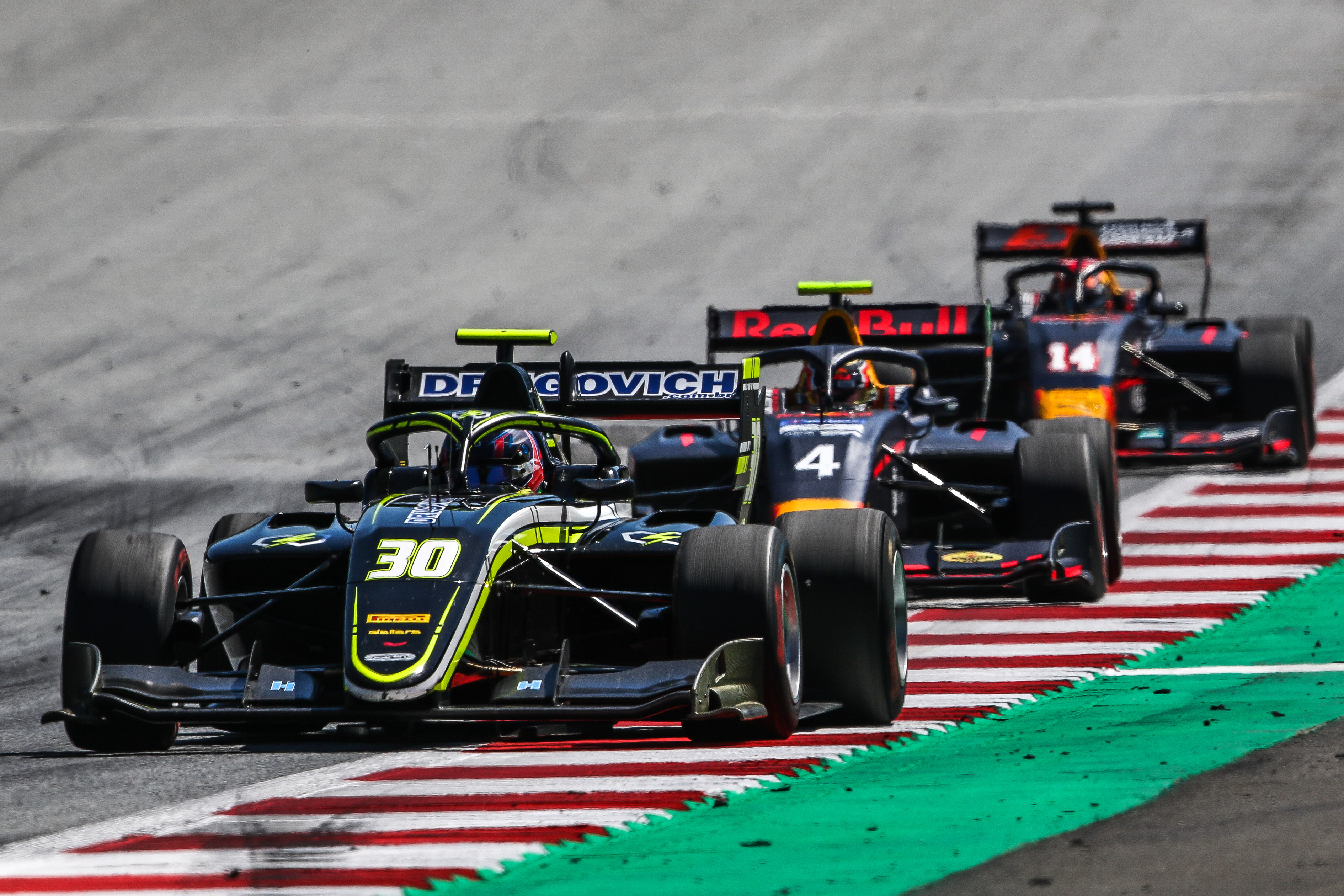 Compartilhar no Facebook Compartilhar no Twitter Compartilhar no Google+ Compartilhar no Pinterest Segunda prova da 3ª etapa do campeonato será realizada na manhã deste domingo (30) no Red Bull Ring Felipe Drugovich (Dutch Photo Agency) Neste sábado (29) o Red Bull Ring, circuito próximo à Zeltweg, na Áustria, foi o palco para a primeira das duas provas da 3ª etapa do Campeonato de Fórmula 3 FIA, que reúne 30 pilotos das mais diversas partes do mundo em mais um passo rumo à Fórmula 1. Com sua largada autorizada às 5:25 da manhã pelo horário de Brasília, a corrida teve a presença do brasileiro Felipe Drugovich, 18 anos, que integra a equipe inglesa Carlin Buzz Racing. Em um circuito mais curto, rápido, mas com poucos pontos de ultrapassagem, Felipe Drugovich teve uma atuação segura, que lhe valeu a conquista de quatro posições e lhe permitiu terminar a prova em 12°. Uma das preocupações de Felipe Drugovich e de todos os competidores na rodada austríaca era com o desgaste dos pneus. “O asfalto aqui no Red Bull Ring é um pouco abrasivo, então tivemos essa preocupação”, explica. “Mas fiz uma largada conservadora, mantive minha posição nas voltas iniciais e depois, mesmo pensando em poupar os pneus, procurei conquistar o máximo de posições possíveis, o que não foi fácil, pois o circuito não oferece muitos pontos de ultrapassagem”, completou o piloto de Maringá (PR). Felipe Drugovich volta à pista na manhã deste domingo (30), às 4:35 pelo horário de Brasília, algumas horas antes da Fórmula 1, que fará sua 9ª etapa também no Red Bull Ring. “Estamos crescendo a cada corrida, fui o melhor da equipe nesta primeira prova e acho que será possível lutar pelos pontos neste domingo”, finaliza Drugovich, que tem como companheiros de equipe o americano Logan Sargeant e o japonês Teppei Natori. Campeão do Euroformula 3 Open no ano passado, com 14 vitórias em 16 corridas, Felipe Drugovich compete com apoio de Drugovich Auto Peças, que atua no ramo de peças para caminhões e ônibus. Por: Erno Drehmer