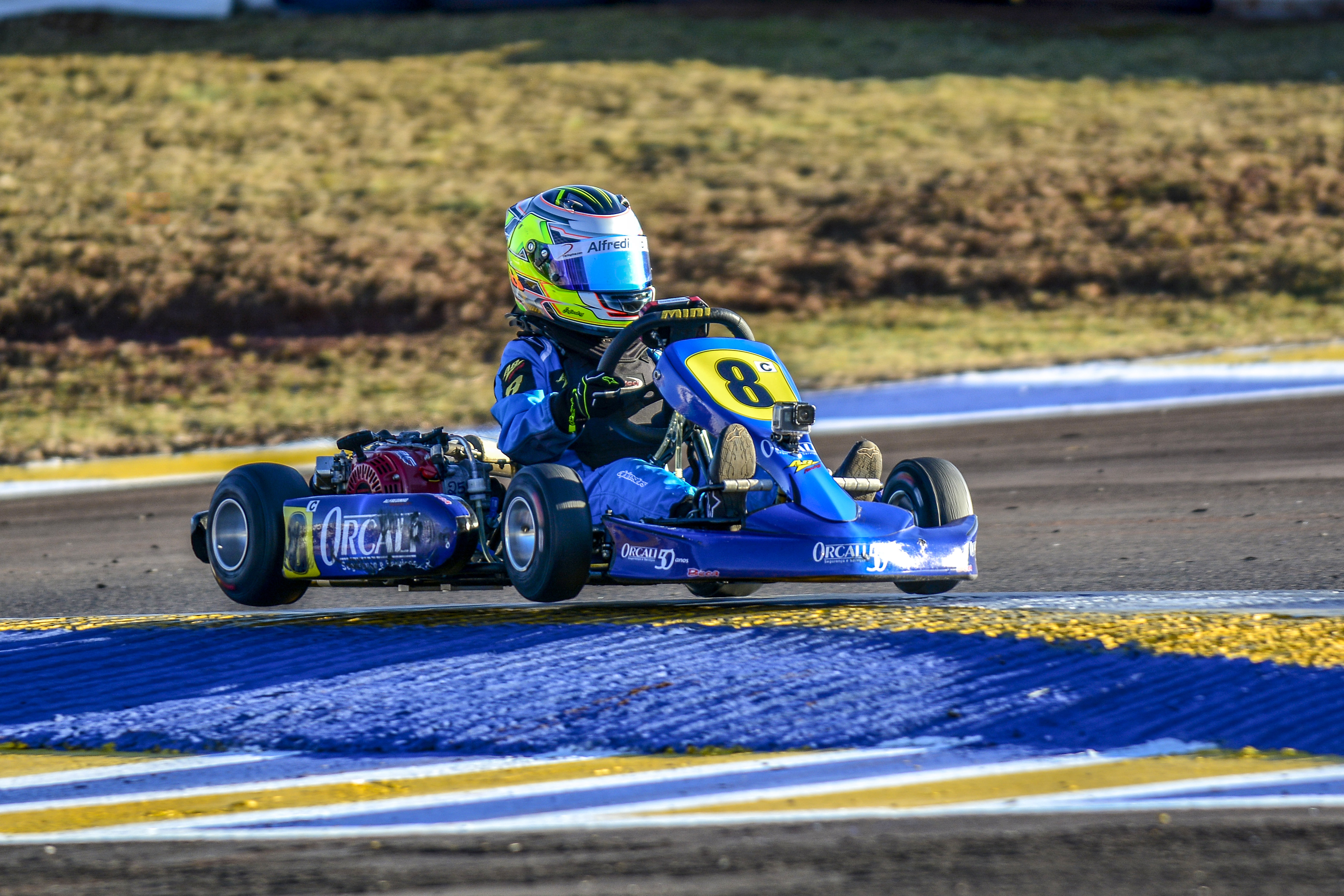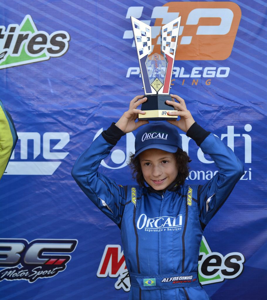 Compartilhar no Facebook Compartilhar no Twitter Compartilhar no Google+ Compartilhar no Pinterest O Campeonato Brasileiro de Kart, maior competição da modalidade no país, teve as disputas finais da primeira fase no último sábado (20), no kartódromo Delci Damian, em Cascavel-PR. Com 36 concorrentes de várias regiões do Brasil, o piloto Alfredinho Ibiapina (Orcali) conquistou o 5º lugar no pódio da categoria Cadete em uma corrida eletrizante. Largando da 6ª posição do grid, Alfredinho Ibiapina era o 4º colocado na segunda passagem. Em disputas acirradas e aguardando a oportunidade de ultrapassagem, se manteve muito próximo do pelotão da frente. Na penúltima volta um concorrente à sua frente rodou fazendo o kart de Alfredinho Ibiapina sair da pista, perder uma posição e a chance de continuar na briga pelo título da categoria. “Na minha categoria é normal o título ser definido nos últimos metros da corrida. Eu fiquei na cola dos primeiros colocados para tentar o bote no momento certo, mas infelizmente, o kart que rodou na minha frente atrapalhou tudo. Mesmo assim, estou muito contente por conseguir cruzar a linha de chegada e participar do pódio. Quem me acompanha sabe do sofrimento no Brasileiro do ano passado, quando disputava o 3º lugar e tive que abandonar a prova com pane elétrica no kart faltando quatro voltas para o final. Então, só tenho a agradecer muito a Deus, à minha equipe Jefferson Neves e Jonas Milan, aos meus pais, a Orcali e a todos que ficaram na torcida. O ano não acabou e temos chances de conquistar títulos importantes ainda”, comentou o piloto. Alfredinho Ibiapina esteve entre os pilotos mais rápidos da Cadete durante o Brasileirão 2019. Acompanhe notícias sobre o piloto nas redes sociais ww.facebook.com.br/alfredinhoibiapina e no Instagram @alfredinhoibiapina. Texto e fotos: Eni Alves