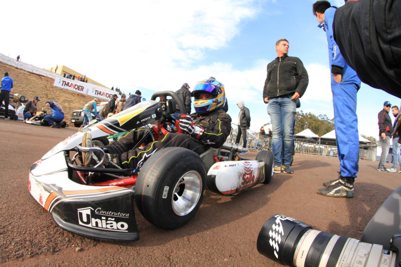 Compartilhar no Facebook Compartilhar no Twitter Compartilhar no Google+ Compartilhar no Pinterest Com 10 anos de idade e menos de um ano de kart, piloto brasiliense disputou pela primeira vez o mais importante evento do kartismo no Brasil Artur Hoff (Luiz Pinheiro) Aos 10 anos de idade, o brasiliense Artur Hoff (Sollo Serviços | Construtora Construnião Ltda) viveu uma experiência única em sua recém iniciada carreira como piloto de kart. Em Cascavel (PR), no Kartódromo Delci Damian, ele integrou as disputas da 1ª fase do Campeonato Brasileiro de Kart na categoria Cadete, que reuniu 36 pilotos de todo o Brasil. Depois de fazer boas provas em Brasília, onde reside, e de competir com destaque na Copa Brasil em Minas Gerais no ano passado, era chegado o momento de estrear no mais importante campeonato de kart do Brasil, que realizava sua 54ª edição. Artur Hoff e sua equipe tveram uma dificuldade inicial, causada especialmente pelo fato de não terem participado das provas preparatórias, o Open do Brasileiro, disputado em junho também em Cascavel. “Nosso principal problema nos primeiros dias foi conseguir achar o acerto ideal para o kart do Artur”, lembra Renato Hoff, pai do jovem piloto. “Conseguimos isso apenas na segunda corrida, mas mesmo assim o Artur teve atuações destacadas em seu primeiro Brasileiro”, completa. Desta forma, o crescimento de Arthur Hoff (Sollo Serviços | Construtora Construnião Ltda) foi gradativo, a ponto de liderar em alguns momentos – na chuva – o treino de aquecimento do último dia de competições, acompanhando os pilotos que se tornariam campeão e vice na corrida final. Este crescimento permitiu que o piloto brasiliense estivesse entre os 10 primeiros colocados na segunda classificatória, exatamente o momento em que a equipe encontrou o acerto desejado. Porém, um toque de um concorrente fez com que Artur Hoff caísse para as últimas posições e, assim, foi necessário buscar a recuperação, que viria nas duas últimas provas. Na Pré-Final o jovem piloto terminou em 22º e depois, na grande Final, recebeu a bandeirada em 18º, exatamente 18 posições à frente de onde terminara a segunda classificatória. “A demora em encontrarmos o melhor acerto atrapalhou, mas depois tudo ficou melhor e o Artur pôde fazer uma boa estreia no Brasileiro”, resume Renato Hoff. “O mais importante de tudo foi vermos a dedicação e garra dele e também o intenso trabalho de todos em busca do melhor equipamento”, finaliza. Agora, após a estreia promissora, Artur Hoff se prepara para os compromissos “locais”, tais como o Campeonato Brasiliense e o Campeonato Goiano, mas voltará às competições nacionais em outubro, quando disputará a 21ª Copa Brasil de Kart, no Kartódromo Beto Carrero, em Penha (SC). KG COM Assessoria de Comunicação – Erno Drehmer (MTb/RS 14.706)