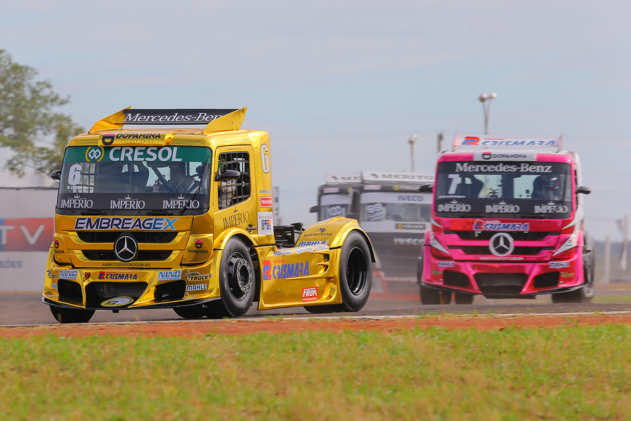 Compartilhar no Facebook Compartilhar no Twitter Compartilhar no Google+ Compartilhar no Pinterest Copa Truck chega ao Rio Grande do Sul pela primeira vez em 2019. Crédito: Rodrigo Ruiz/RR Media O apaixonado público gaúcho terá mais um fim de semana de velocidade para curtir. A partir desta sexta-feira, o Autódromo de Santa Cruz do Sul recebe toda a movimentação da quinta etapa da Copa Truck, com a abertura da terceira das quatro fases classificatórias para a Grande Final. Serão, pelo menos, 23 caminhões disputando os pontos que servem de passaporte ao título. A equipe AM Motorsport chega com seus três caminhões completamente renovados com o desenvolvimento de peças e motores com mais tecnologia e muitos testes. “Nossa parceria com a Mercedes-Benz é fundamental para que esse trabalho seja feito. A chegada de novos motores, dentro daquilo que a marca utiliza nas estradas, mostra que realmente estamos testando o que há de melhor. O objetivo é que os resultados dentro da pista também aconteçam com a mesma intensidade”, conta André Marques, chefe de equipe e detentor de dois troféus para a Grande Final. Entre os objetivos da equipe está a classificação de Débora Rodrigues e Wellington Cirino para a Grande Final. Para isso, eles precisam ficar entre os três maiores pontuadores na terceira ou na quarta copa. “Espero começar bem esta copa e recuperar das últimas duas etapas que não consegui concluir as provas. Quero acelerar forte nas duas corridas e entrar na competição novamente para buscar um troféu”, garantiu Débora Rodrigues, que acelera o Baby Pink #7. Maior conquistador de pole-position da história das corridas de caminhão, Wellington Cirino também quer a reação a partir de Santa Cruz do Sul. “Tem sido uma temporada de resultados bons nos treinos e nem tão bons nas corridas. Precisamos reverter isso, pensando no campeonato. Todo o trabalho de desenvolvimento no caminhão faz a expectativa aumentar em termos de classificação para a Grande Final”, comenta Wellington Cirino que tem na pista de Santa Cruz do Sul uma de suas preferidas. A terceira fase de classificação da Copa Truck une a pontuação das etapas de Santa Cruz do Sul e de Rivera, marcada para o dia 1 de setembro. A programação em Santa Cruz do Sul começa nesta sexta-feira, com duas sessões de treinos livres. No sábado, acontece a terceira sessão de treino livre e o treino de classificação, que terá transmissão pelo facebook e youtube da Copa Truck. As corridas, no domingo, terão transmissão pelo Sportv, a partir das 13hs. A AM MotorSport tem o patrocínio da Cerveja Império e Cresol, com o apoio da Dopamina Energy Drink, Embreagex, Truck Van, Radiadores Visconde, Nino Faróis, Molas Marcheti, Frum, Cobreq e Mercedes Club. O time acelera os caminhões Mercedes-Benz. Por Osires Jr.