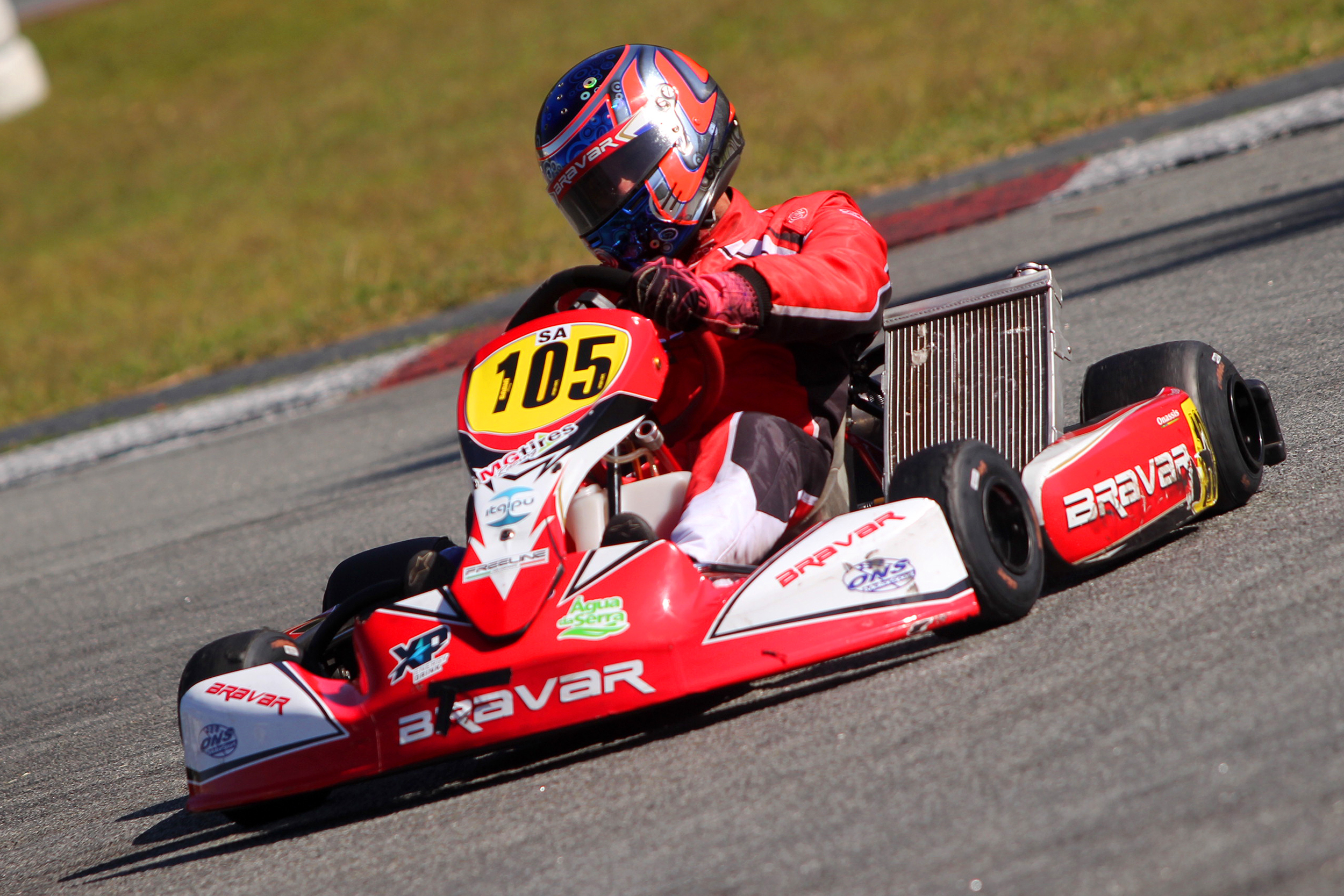 Compartilhar no Facebook Compartilhar no Twitter Compartilhar no Google+ Compartilhar no Pinterest Sexta etapa da competição foi realizada no último final de semana, no Kartódromo Aldeia da Serra, em Barueri (SP) Ernandes Onassis (Planet Kart Images | Cris Reis) Maior vencedora entre as fabricantes de chassis no último Campeonato Brasileiro de Kart, a Bravar destacou-se mais uma vez, agora na disputa da 6ª etapa da Copa São Paulo Light, realizada no último sábado (17) no Kartódromo Aldeia da Serra, em Barueri (SP). Ao fim de um dia repleto de corridas, mais exatamente duas para cada categoria, a fábrica comemorava cinco vitórias – algumas delas em dobradinha – e pole positions. Na Mirim, o jovem Samuel Santiago levou a Bravar ao primeiro lugar na divisão Rookie, destinada aos estreantes. Miguel Gazzineo foi o 3º colocado, enquanto na classificação geral Filipe Vriesman terminava em 2º, imediatamente seguido por Regys Matos Filho, o pole position, ambos com chassi Bravar. Na Cadete, categoria de base do kartismo brasileiro a exemplo da Mirim, a Bravar dominou o pódio, colocando três pilotos entre os cinco primeiros. E marcou uma dobradinha, com Gabriel Koenigkan em 1º e Wagner Santilli em 2º. Guilherme Favarete, em 5º, fechou o pódio também com Bravar. A Bravar foi igualmente vitoriosa nas três categorias Sênior, que competiram de forma agrupada. Na Sênior A, vitória de Ernandes Onassis, com Maique Papareli em 3º. Christiano Mattheis e Euvaldo Luz fizeram uma dobradinha para a fábrica na Super Sênior e, por fim, o próprio Euvaldo Luz subiu no alto do pódio na Super Sênior Master. Felipe Baptista e Gabriel Crepaldi representaram bem a fabricante na categoria Graduados Codasur. Vencedor e dono da volta mais rápida na primeira bateria, Baptista terminou a rodada na segunda posição, enquanto Gabriel Crepaldi também subiu no pódio, em 5º. João Tesser, piloto da categoria Sprinter, deu à Bravar sua segunda pole position na etapa e também subiu no pódio, com a 3ª posição. Por fim, Tiago Santos finalizou a 6ª etapa da Copa São Paulo Light igualmente no pódio, comemorando o 4º lugar na F4 Sênior. “Nossos chassis mais uma vez se mostraram competitivos e rápidos e, desta forma, após um belo trabalho dos pilotos e suas equipes, a Bravar pôde novamente se destacar, conquistando excelentes resultados e vitórias muito importantes”, disse Ernandes Onassis, responsável técnico da marca, após a cerimônia de pódio. “Seguimos em frente com este trabalho intenso e dedicado de todos, sempre em busca de mais títulos”, finaliza. KG COM Assessoria de Comunicação – Erno Drehmer (MTb/RS 14.706)