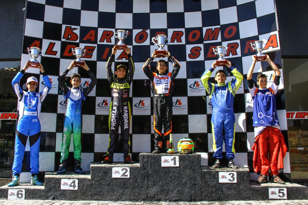 Compartilhar no Facebook Compartilhar no Twitter Compartilhar no Google+ Compartilhar no Pinterest Piloto Promax Bardahl concluiu na segunda colocação das duas baterias da prova no Kartódromo Internacional de Aldeia da Serra e segue na liderança da CODASUR Júnior após três de quatro provas disputadas Pódio da sexta etapa (Jackson de Souza / Divulgação) São Paulo (SP) – O piloto paranaense Pedro Aizza (Promax Bardahl/GM Motorsport) foi um dos protagonistas da sexta etapa da Copa São Paulo Light de Kart, realizada no Kartódromo Internacional de Aldeia da Serra, na região metropolitana de São Paulo. Após completar as duas baterias em segundo lugar e garantir a volta mais rápida na segunda corrida, Aizza foi o vice-campeão da etapa, válida pela terceira de quatro disputas da CODASUR Júnior. Pedro Aizza foi o segundo mais rápido na tomada de tempo, cravando 42seg496 na sua volta mais rápida, atrás somente de Ricardo Gracia Filho, com 42seg315. Na primeira bateria, ficou com a segunda colocação travando uma boa disputa com Gabriel Gomez, o vencedor em 15min45seg254, após 22 voltas. Aizza terminou apenas 0seg418 do ganhador. “O segundo semestre tem sido de bastante superação para mim, porque não tenho tido sorte com o motor do meu kart. Embora tenha largado em segundo e assumido a liderança, tive alguns problemas técnicos no meu carro e fui ultrapassado pelo Gomez na metade final. Ainda assim, a diferença foi bem pequena entre nós, menos de meio segundo”, disse o dono do kart #35. “O detalhe decisivo no entanto foi que o Ricardo Gracia teve problema em seu motor e deu poucas voltas na primeira bateria, o que fez com que seus pneus estivessem bem menos desgastados para a prova final”, completou Pedro. Na última prova, Pedro Aizza voltou a ficar em segundo lugar, porém conseguiu superar Gabriel Gomez, vencedor da etapa e o terceiro na bateria. No entanto, Ricardo Gracia terminou à frente de Aizza em mais uma disputa bastante equilibrada. Enquanto Ricardo concluiu 21 voltas em 15min10seg427, Pedro veio logo atrás, apenas 0seg879 do adversário. O curitibano ainda garantiu um ponto extra na classificação da CODASUR Júnior, na qual é o líder, pela volta mais rápida nesta segunda e última bateria. “Na bateria final o grid foi invertido e larguei em quarto, logo assumindo a liderança na primeira volta. Porém, o fato é que as condições do kart do Ricardo eram bem melhores do que o meu, por ter completado poucas voltas na primeira corrida. Ou seja, percebi que era quase impossível que ele não vencesse, apenas se cometesse algum erro. Mesmo assim, fui persistente e acredito que obtive um bom resultado. Ainda cravei a melhor volta. O foco no momento segue na conquista da vaga no SKUSA SuperNationals, em Las Vegas (EUA), no fim do ano”, contou Pedro. Nesta semana, o piloto volta a São Paulo, porém para fazer testes. Seu próximo compromisso competitivo será a etapa final do Sul-Brasileiro de Kart, no último fim de semana do mês de agosto, em Londrina. “Após um início de ano excelente, em que meu kart era muito competitivo, nossa equipe está passando por uma fase de mudanças, em busca do melhor acerto. Estamos nos adaptando às situações novas e, dentro do possível, foram resultados bons nessa última etapa da Copa SP Light”, finalizou o piloto de 14 anos. Resultados em 2019 – O piloto Promax Bardahl já disputou 15 provas neste ano, com oito vitórias. Antes da segunda colocação na quinta etapa da Copa SP Light de Kart, obteve dois top 5 na primeira fase do Brasileiro. Aizza chegou à competição nacional em alta, após conquistar cinco vitórias consecutivas entre maio e junho: Metropolitano de Kart de Cascavel; Sul-Americano de Kart, em Nova Santa Rita (RS); quinta etapa da Copa São Paulo Light de Kart, em Aldeia da Serra (SP); a segunda de três provas do Sul-Brasileiro de Kart, em Xanxerê (SC), e o Open do Brasileiro, em Cascavel. Antes de fazer a “quina”, Pedro havia sido vice-campeão na segunda etapa da Copa SPR Light, em Penha (SC). O paranaense competiu também nas quatro corridas anteriores da Copa SP Light de Kart, onde conquistou uma vitória na segunda etapa, além de somar uma segunda, uma terceira e uma oitava colocações. Aizza esteve também nas aberturas da Copa Interlagos de Kart (CIK) e do Campeonato Sul-Brasileiro, ambas vencidas por ele, em fevereiro e abril, respectivamente. Confira os resultados da 6ª etapa do Sul-Brasileiro de Kart (Top-5 CODASUR Júnior): Corrida 1 1 #78 Gabriel Gomez 22 voltas em 15min45seg253 2 #35 Pedro Aizza a 0.418 3 #93 Henrique Manhani a 12.475 4 #12 Bruno Pierozan a 17.889 5 #27 Lucas Favaro a 18.835 Corrida 2 1 #105 Ricardo Gracia Filho 21 voltas em 15min10seg427 2 #35 Pedro Aizza a 0.879 3 #78 Gabriel Gomez a 5.445 4 #93 Henrique Manhani a 11.675 5 #27 Lucas Favaro a 15.608 Mais informações: Blog: https://blog.bardahl.com.br/ ZDL Sports