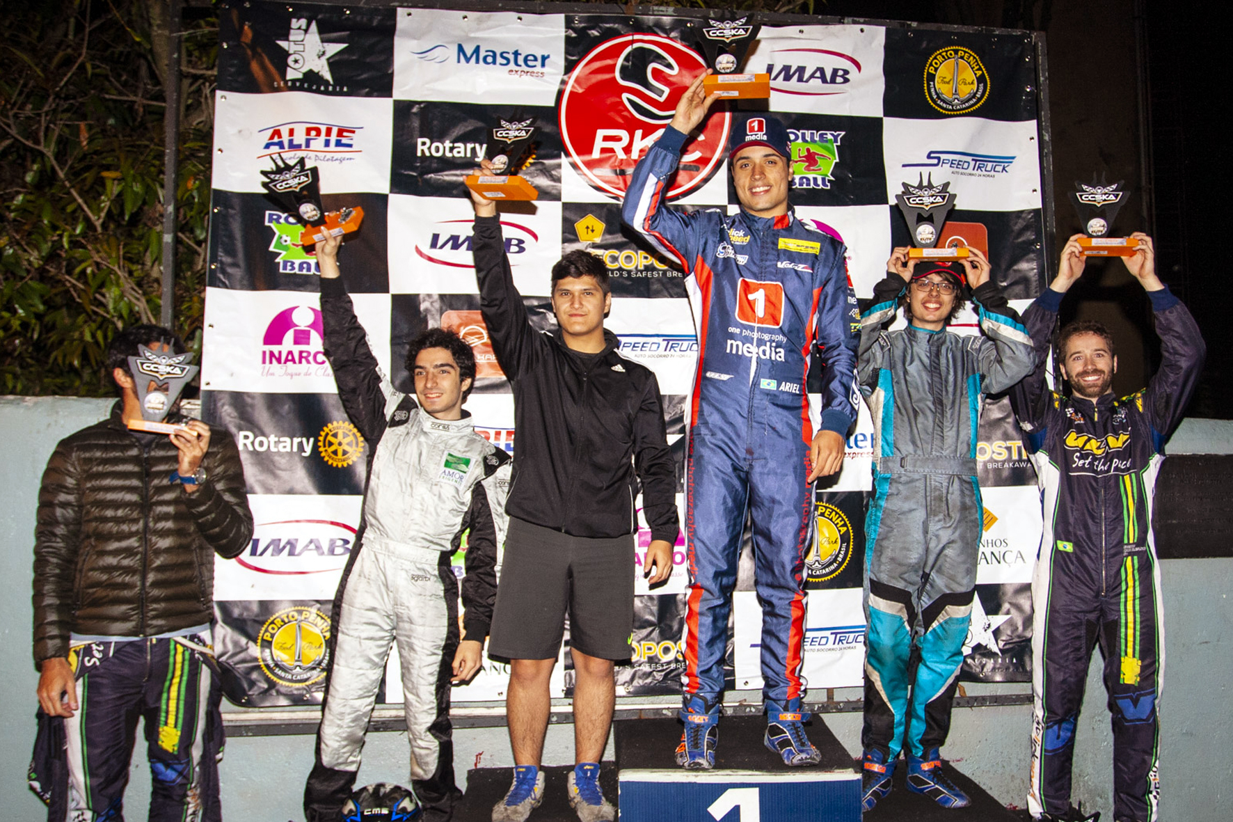 Compartilhar no Facebook Compartilhar no Twitter Compartilhar no Google+ Compartilhar no Pinterest Líderes se mantém na ponta do campeonato: Gustavo Ariel (Elite), Ronnielle Batista (Graduados), Filipe Pelegi (Light) e Laila Almeida (Corrida das Princesas) Pódio da Elite do CCSKA (Foto:EmersonSantos/One Photography Media) A tradicional garoa de São Paulo não impediu grandes disputas no Kartódromo de Interlagos, que recebeu no último fim de semana (24/8) a sexta etapa do Campeonato ClickSpeed de Kart Amador (CCSKA). As vitórias ficaram com Gustavo Ariel (Elite), Márcio Nogueira (Graduados), e Laila Almeida, tanto na Light quanto na Corrida das Princesas. A liderança do campeonato não sofreu alteração, com Gustavo Ariel (Elite), Ronnielle Batista (Graduados), Filipe Pelegi (Light), Laila Almeida (Corrida das Princesas) se mantendo na ponta da tabela de classificação em suas categorias. Na Corrida das Princesas, as mulheres mostraram grande competência e fizeram a melhor corrida do dia. Laila Almeida largou da pole position, e travou uma bela batalha com Jéssica Munic, que estabeleceu a volta mais rápida da competição realizada sobre o asfalto molhado. Apesar da líder do certame ter liderado mais voltas, a decisão da prova ficou para a bandeirada de chegada, com uma diferença de apenas 11 centésimos de segundo a favor da Laila, que alcançou a terceira vitória na temporada e ampliou ainda mais a sua vantagem na tabela de pontuação. Na terceira posição terminou Grazielle Gonçalves, vice-líder do torneio. Na outra bateria, que reuniu os pilotos da Elite, Graduados e Light, quem dominou foi Gustavo Ariel (Elite), que largou do primeiro posto, fez a melhor passagem cronometrada, e liderou de ponta a ponta, para vencer com larga vantagem sobre Alberto Otazú, que havia partido da quinta colocação. Em terceiro ficou Nelson Reple. Com a terceira vitória no ano, Ariel se consolida na liderança do campeonato. Na Graduados, Ian Almeida largou em primeiro, fez a volta mais rápida, mas rodou e terminou em terceiro, atrás de Abílio Coutinho. Com isto, deixou a vitória tranquila para Márcio Nogueira. Mesmo sem correr, Ronnielle Batista ainda se mantém na ponta do certame. Entre os novatos da Light, Laila Almeida deu outro show, largando em primeiro e vencendo de ponta a ponta. A volta mais rápida foi de José de Jesus Gonçalves, que terminou em segundo. Filipe Pelegi, com a terceira posição, manteve-se na liderança do campeonato. A sétima etapa do Campeonato ClickSpeed de Kart Amador será realizada dia 29 de setembro, no Kartódromo Internacional San Marino, em Paulínia (SP). Resultado da sexta etapa da Elite/Graduados/Light do CCSKA: 1) Gustavo Ariel (E1), 13 voltas em 18min01s431; 2) Alberto Otazú (E2), a 13s249; 3) Nelson Reple (E3), a 22s509; 4) Augusto Coutinho (E4), a 30s872; 5) Everton Carajeleascow (E5), a 32s323; 6) Laila Almeida (L1), a 1min02s157; 7) José de Jesus (L2), a 1 volta; 8) Marcio Nogueira (G1), a 1 volta; 9) Abílio Coutinho (G2), a 1 volta; 10) Ian Almeida (G3), a 1 volta. Confira a pontuação (extra-oficial) da Elite do CCSKA depois de seis etapas: 1) Gustavo Ariel, 282 pontos; 2) Alberto Otazú, 252; 3) Everton Carajeleascow, 214; 4) Anthony Peperone, 173; 5) Henrique Morbi e Thiago Barros, 104; 7) Lucas Garaschenko, 87; 8) Bruno Rodrigues, Saulo Righi, Caio Ditlef e Nelson Reple, 44. Confira a pontuação (extra-oficial) da Graduados do CCSKA depois de seis etapas: 1) Ronnielle Batista, 171; 2) José Jurandir Jr, 168; 3) Marcos Nogueira, 158; 4) Leonardo Borges, 136; 5) Gabriella Morais, 121; 6 Ian Almeida, 95; 7) Bruno Fernandes, 66; 8) Thiago ‘Cadelo’ e Aurílio Santos, 57; 10) Edward de Moraes, 51. Confira a pontuação (extra-oficial) da Light do CCSKA depois de seis etapas: 1) Filipe Pelegi, 278 pontos; 2) José de Jesus Gonçalves, 268; 3) Rogério ‘Cebola’ Cardoso, 183; 4) Jorge Sobrinho, 163; 5) Tiago Matos, 106; 6) Jéssica Munic, 87; 7) Gustavo Diniz, 75; 8) Laila Almeida, 55; 9) Rodrigo Brunetti, 46; 10) Marlon Sanfelice, 38. Resultado da Corrida das Princesas: 1) Laila Almeida, 13 voltas em 19min31s200; 2) Jéssica Munic, a 0s011; 3) Grazielle Gonçalves, a 1 volta; 4) Leslie Candia, a 1 volta; 5) Fernanda Cardoso, a 1 volta; 6) Bianca Reis, a 2 voltas; 7) Julia Foti, a 2 voltas; 8) Aline de Lima, a 2 voltas; 9) Jéssica Steinbach, a 2 voltas; 10) Luciana Bordallo, a 2 voltas. Confira a pontuação (extra-oficial) da Corrida das Princesas do CCSKA depois de seis etapas: 1) Laila Almeida, 296 pontos; 2) Grazielle Gonçalves, 206; 3) Gabriella Morais, 157; 4) Jéssica Munic, 142; 5) Vanessa Vieira, 115; 6) Duda Seccatto e Danielle Fonseca, 100; 8) Eduarda Zang, 74; 9) Keitie Murakami, 58; 10) Thaty Acera, 49. O Campeonato ClickSpeed de Kart Amador tem os apoios de Agaxtur Viagens, San Martin Seguros e One Photography Media.