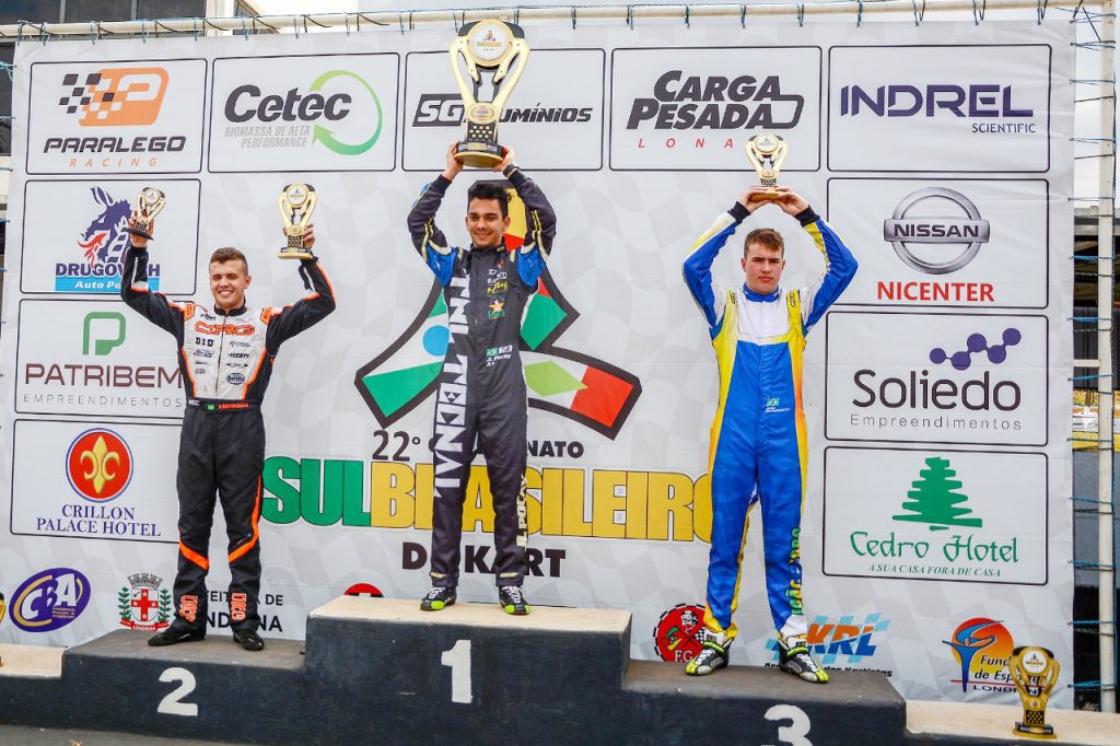 Compartilhar no Facebook Compartilhar no Twitter Compartilhar no Google+ Compartilhar no Pinterest Paulista venceu na categoria Graduados e terminou em 3º na Codasur em Londrina (PR) João Luís Pocay em 1º lugar no pódio do Sul-Brasileiro (foto: Eni Alves) Focado em retomar seu crescimento nesta sua primeira temporada na principal categoria do kartismo brasileiro, o paulista João Luís Pocay (TNL Tecnal | Elohim Kart | Racing DNA | Mittag Motores | Katroque Motorsport | Bar e Restaurante Dona Felicidade) teve um belo final de semana em Londrina (PR), onde disputou a 3ª e última etapa do Campeonato Sul-Brasileiro de Kart em duas categorias. Campeão brasileiro da Novatos em 2018, o piloto de Ourinhos voltou para sua cidade comemorando seu melhor resultado no ano. Depois de ótimas atuações no Campeonato Brasileiro, quando terminou entre os dez primeiros em duas categorias, Pocay teve uma série de problemas em seu compromisso seguinte, válido pela Copa SPR Light de Kart. Dispostos a “passar por cima” das dificuldades passadas, o piloto e a Elohim Kart, equipe comandada pelo preparador Vinícius Marcelino, trabalharam de maneira ainda mais intensa em Londrina. E todo o empenho investido trouxe excelentes resultados. Competindo pela categoria Codasur, João Luís Pocay (TNL Tecnal | Elohim Kart | Racing DNA | Mittag Motores | Katroque Motorsport | Bar e Restaurante Dona Felicidade) foi o terceiro colocado no pódio após terminar as duas baterias da rodada em terceiro lugar. E na Graduados, com uma vitória e um 2º lugar, o piloto foi o vencedor da etapa, subindo no degrau mais alto do pódio. Ao fim da disputa das três etapas do Sul-Brasileiro, João Luís Pocay terminou com a terceira posição em ambas as categorias na classificação final do campeonato. “Foi um final de semana em que tudo deu certo, vencemos na principal categoria e terminamos em terceiro na Codasur, outra classe muito importante do kartismo brasileiro”,aponta Vinícius Marcelino. “O Pocay estava muito animado em retomar seu belo crescimento nesta temporada de estreia na Graduados, sempre muito difícil para quem vem da Novatos. Todos atingimos nossos objetivos neste final de semana e agora o foco é pensarmos e planejarmos nossa participação nas próximas corridas, especialmente na Copa Brasil em outubro”, finaliza. KG COM Assessoria de Comunicação – Erno Drehmer (MTb/RS 14.706)