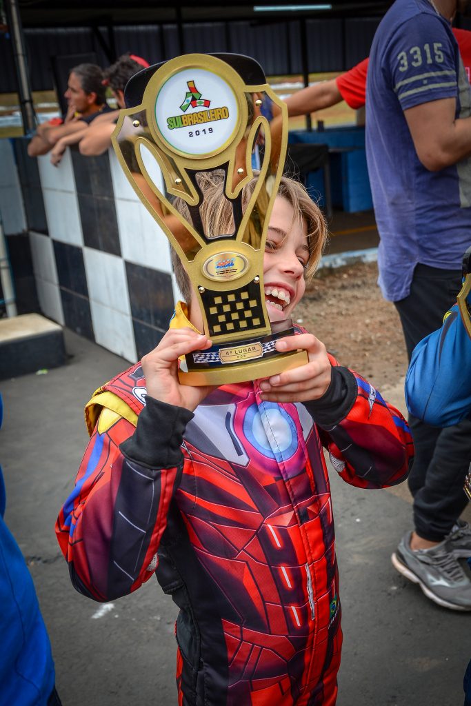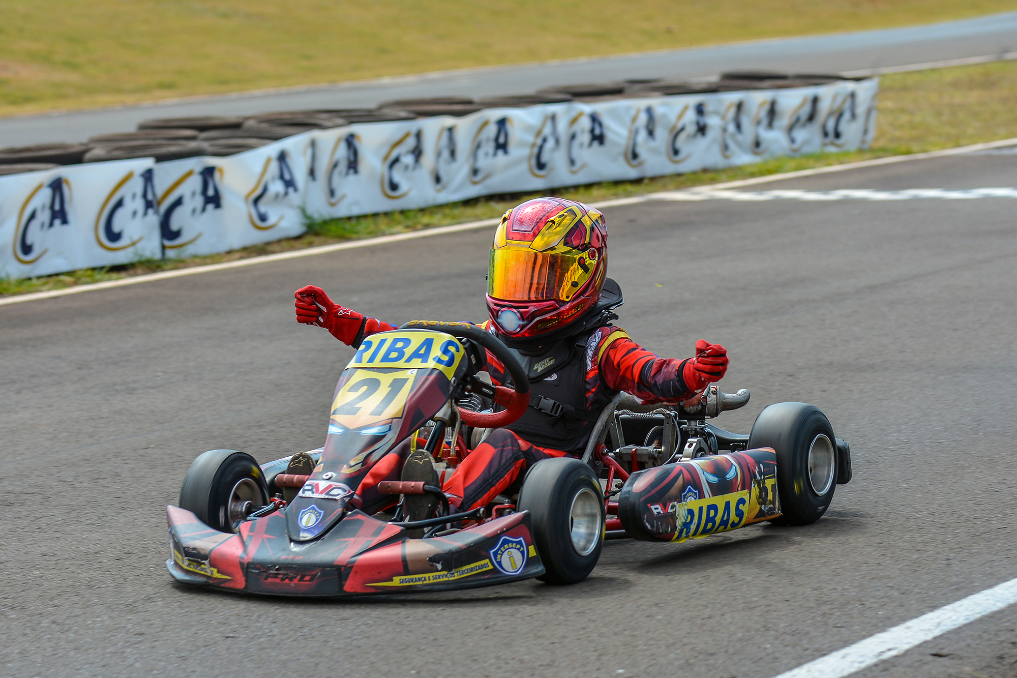 Compartilhar no Facebook Compartilhar no Twitter Compartilhar no Google+ Compartilhar no Pinterest A 3ª e última etapa da competição foi realizada em Londrina-PR nos dias 30 e 31 de agosto O final de semana foi de superação para Romullo Ribas. O piloto chegou para as atividades no kartódromo Luigi Borghesi, em Londrina-PR, na sexta-feira, dia da primeira das duas disputas da etapa final do Sul-brasileiro de Kart. Com apenas um treino antes da prova para equalizar o equipamento, o Menino de Ferro, como é conhecido nas pistas devido a indumentária que faz alusão ao personagem Homem de Ferro, encerrou a competição no Top 4 pela categoria Cadete. Saindo da 10º posição do grid, Romullo Ribas fez duas provas equilibradas e com um quinto e um quarto lugares na etapa subiu duas posições na tabela de classificação do Campeonato. “Desde o início da temporada 2019 o Romullo vinha sendo prejudicado por acidentes ou batidas durante as corridas. Isso desmotivou um pouco o piloto, que decidiu participar desta etapa na última hora”, contou Rodrigo Paixão, preparador de Romullo Ribas. “Eu fiquei desanimado com tantas batidas. Acho que a punição para quem tira um piloto da corrida tinha que ser mais dura. Os meus pais e amigos me incentivaram ainda mais a participar desta etapa e fui. Entrei na prova do Sul-brasileiro, em Londrina, sem ter a referência dos meus concorrentes na pista. Me concentrei, pisei fundo no acelerador e consegui fazer duas boas disputas. Fiquei muito feliz e motivado de novo. Espero que a fase ruim de acidentes e batidas tenha ido embora para nunca mais voltar”, comemorou Romullo Ribas. Romullo Ribas feliz com o resultado do Sul-brasileiro em Londrina. “Em todas as competições que o Romullo ficou de fora da primeira prova por algum incidente, teve que fazer a segunda corrida de recuperação. E por mais que ele tenha conseguido recuperar algumas posições saindo do final do grid, não havia ainda alcançado um lugar no pódio. Esta etapa trouxe um alívio para a cobrança que ele mesmo estava se fazendo. Tenho certeza que no próximo desafio o Romullo irá com mais confiança”, concluiu a mãe, Daiane Ribas. Acompanhe mais notícias sobre o piloto nas redes sociaiswww.facebook.com/romulloribas21 e Instagram @romulloribas21. Texto e fotos: Eni Alves