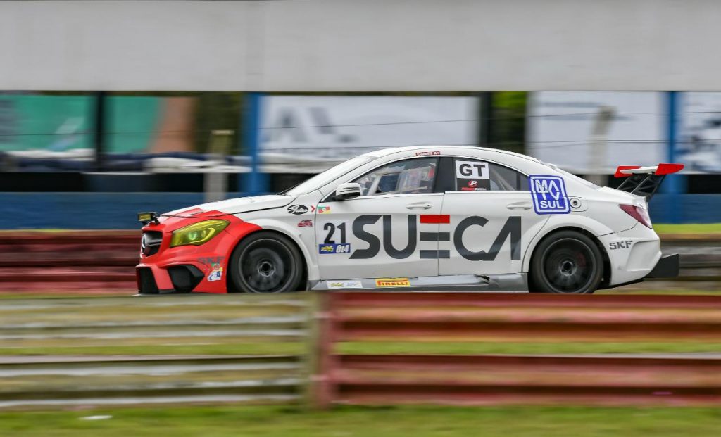 Compartilhar no Facebook Compartilhar no Twitter Compartilhar no Google+ Compartilhar no Pinterest Um bom resultado conquistado na consistência, apesar de não ter o carro mais rápido. Desta forma a dupla Arthur Caleffi/Luiz Sena Jr. conquistou o terceiro lugar na prova 6 Horas de Guaporé, válida pelo Campeonato Gaúcho de Super Turismo. Caleffi- Sena O minucioso trabalho de revisão da Mercedes CLA 45 AMG #21 antes da prova mostrou resultado. A equipe Sueca Vêneto Mottin Racing trocou peças vitais do carro, tais como diferencial, cardã e turbina, fundamentais para evitar problemas que poderiam gerar paradas não programadas. E assim, apesar de ser aproximadamente dois segundos por volta mais lento que os principais ponteiros, a ausência de problemas permitiu que tivessem um ritmo constante e conquistassem um lugar no pódio, na terceira colocação geral. “Não tínhamos o carro mais rápido, então conseguimos manter um bom ritmo de prova, apostamos na resistência do carro, fruto da revisão que fizemos, com troca de peças importantes, e deu certo, conseguimos um bom terceiro lugar geral”, declarou Caleffi. “A concorrência está num nível muito alto, mas foi a corrida na qual ficamos mais próximos dos ponteiros em tempo de volta, o terceiro lugar foi um bom resultado, vamos aguardar a publicação da pontuação, acredito que ainda temos chance de brigar pelo título”, disse Sena Jr. Os pilotos representam a Adesca, e tem patrocínio da Segurança Vêneto, MATVSUL e Sueca Rolamentos. Texto: Niltão Amaral/LF Assessoria Fotos: Willian Donizette Inácio