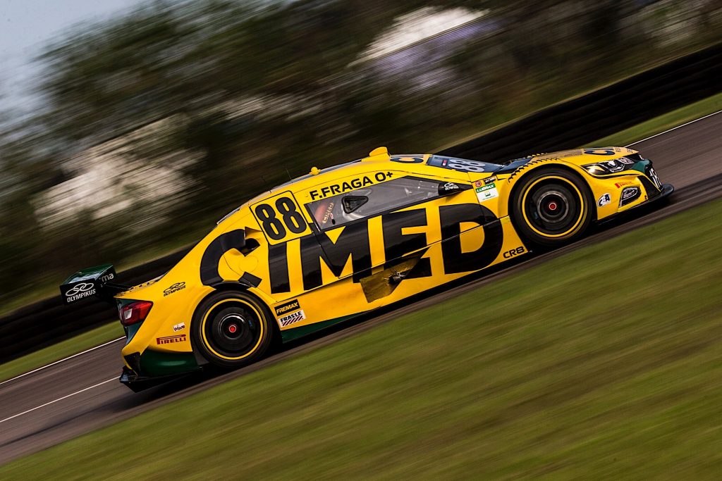 Compartilhar no Facebook Compartilhar no Twitter Compartilhar no Google+ Compartilhar no Pinterest Piloto da Cimed Racing ficou a apenas 0s005 da pole position hoje no Velopark, onde a principal categoria do automobilismo brasileiro disputa sua oitava etapa da temporada 2019 Felipe Fraga (Bruno Terena/ RF1) A disputa pela pole position na oitava etapa da Stock Car, que será realizada neste domingo, no Velopark, foi decidida literalmente nos milésimos de segundo. Felipe Fraga foi superado por apenas 0s005 no Q3 e com isso o piloto da Cimed Racing vai dividir a primeira fila com Ricardo Maurício, vencedor da última etapa (a Corrida do Milhão). “Estou feliz por esse resultado aqui no Velopark. A equipe está muito bem faz mais de quatro corridas e eu estou me sentindo muito bem no carro. Faltou apenas 0s005 hoje para a pole, mas estou contente por finalizar a classificação sem problemas. A equipe tem um carro muito rápido e vamos continuar trabalhando. A diferença para o vencedor da Corrida do Milhão foi muito pequena, então estaremos na briga pela vitória amanhã”, diz Fraga, que já venceu no Velopark em 2017 com a Cimed Racing. A equipe Cimed Racing ficou perto de colocar Cacá Bueno também no Q3. O pentacampeão da Stock Car vai largar na quarta fila amanhã, após fazer o oitavo melhor tempo. “É bom largar nas primeiras filas, mas com certeza nós poderíamos conseguir um lugar entre o terceiro e quinto do grid. Nós tínhamos um carro para largar um pouco mais à frente, mas amanhã tem muita coisa para acontecer e estamos numa posição boa para brigar pelas primeiras colocações nas duas corridas. O desgaste de pneus aqui está baixo, então os primeiros vão brigar bem nas duas provas. Vamos lutar por bons pontos”, diz Cacá, que já venceu três vezes no Velopark. O mais jovem piloto da Stock Car, Marcel Coletta, de apenas 17 anos de idade, foi também o melhor estreante no treino classificatório. Ele larga neste domingo na nona fila, sendo o mais rápido entre os pilotos novatos. “Ficamos a poucos centésimos de segundo para uma vaga no Q2, o que nos permitiria brigar por um lugar no top-10. Em todo caso, estou confiante em nosso bom ritmo de corrida para conseguir ficar entre os dez primeiros na rodada dupla deste domingo”, diz Marcel. A oitava etapa da temporada 2019 da Stock Car será disputada amanhã, a partir das 10h, com transmissão ao vivo pelo Sportv. Grid de largada 1 . Ricardo Maurício ( Eurofarma RC ) 2 . Felipe Fraga ( Cimed Racing ) 3 . Gabriel Casagrande ( Crown Racing ) 4 . Max Wilson ( RCM Motorsport ) 5 . Thiago Camilo ( Ipiranga Racing ) 6 . Ricardo Zonta ( Shell V-Power ) 7 . Rubens Barrichello ( Full Time Sports ) 8 . Cacá Bueno ( Cimed Racing ) 9 . Bruno Baptista ( RCM Motorsport ) 10 . Daniel Serra ( Eurofarma RC ) 11 . Átila Abreu ( Shell V-Power ) 12 . Denis Navarro ( Cavaleiro Sports ) 13 . Allam Khodair ( Blau Motorsports) 14 . Valdeno Brito ( Prati-Donaduzzi Racing ) 15 . Diego Nunes ( KTF Sports ), 16 . Julio Campos ( Prati-Donaduzzi Racing ) 17 . Marcel Coletta ( Cimed Racing ) 18 . Nelson Piquet Jr ( Full Time Sports ) 19 . Gaetano di Mauro ( Shell Helix Ultra ) 20 . Cesar Ramos ( Blau Motorsports ) 21 . Felipe Lapenna ( Cavaleiro Sports ) 22 . Lucas Foresti ( Vogel Motorsports ) 23 . Guga Lima ( Vogel Motorsports ) 24 . Galid Osman ( Shell Helix Ultra ) 25 . Rafael Suzuki ( Hot Car Competições ) 26 . Marcos Gomes ( KTF Sports ) 27 . Bia Figueiredo ( Ipiranga Racing ) 28 . Pedro Cardoso ( Hot Car Competições )
