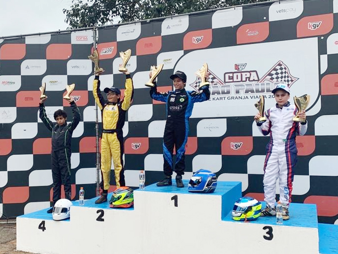 Compartilhar no Facebook Compartilhar no Twitter Compartilhar no Google+ Compartilhar no Pinterest Piloto brasiliense competirá na 4ª etapa da Copa SPR Light no Kartódromo Beto Carrero nesta semana Pedro Lins terminou em 3º a rodada da Copa São Paulo KGV (Divulgação) O último sábado (21) foi de intensas movimentações no Kartódromo Granja Viana, em Cotia (SP), palco da 8ª etapa da Copa São Paulo KGV de Kart, uma das competições mais importantes do nosso kartismo em nível estadual. E, em meio ao bom grid da Rotax Mini Max, o brasiliense Pedro Lins (Universidade Brasil | Editoria Soccia) foi um dos destaques da categoria no final de semana. Integrante da equipe Dibo Kart Team, comandada pelo experiente preparador Dibo Moisés, Pedro Lins fez belos treinos durante a semana, finalizando-os sempre entre a primeira e a terceira posição, o que deixava o piloto e seu time bastante otimistas para os compromissos seguintes. O resultado ficou abaixo das expectativas na tomada de tempos, já que Pedro Lins finalizou apenas com o 5º lugar no grid de largada para a primeira das duas provas da rodada. Partindo então da quinta posição, o brasiliense radicado em São Paulo teve uma atuação bastante segura, superando dois concorrentes para receber a bandeirada em 3º. Largando em 4º por conta de uma punição de 5 segundos atribuída em função do bico de seu kart, que saiu da posição correta em uma tentativa de ultrapassagem, o piloto da Dibo Kart Team repetiu seu desempenho na segunda bateria e, depois de uma corrida bastante equilibrada, terminou novamente em terceiro. Com a soma dos pontos obtidos pelos pilotos nas duas baterias, Pedro Lins (Universidade Brasil | Editoria Soccia) conquistou mais um pódio em sua carreira e recebeu seu troféu como o 3º colocado na 8ª etapa da Copa São Paulo KGV, além de marcar a melhor volta nas duas baterias. “Foi um sábado bem legal, apesar de a tomada de tempos não ter sido como nós esperávamos”, resume o jovem piloto Pedro Lins. “As provas foram boas, disputadas e equilibradas, e consegui sempre ser competitivo e ganhar posições. Estou contente por mais um pódio e mais um troféu e agora vamos nos preparar para a Copa Brasil, junto com a minha equipe”, finalizou. Nesta semana Pedro Lins e a Dibo Kart Team estarão no Kartódromo Beto Carrero, em Penha (SC), participando da 4ª etapa da Copa SPR Light na categoria Cadete. O principal objetivo será conhecer o palco da 21ª Copa Brasil, que será disputada entre os dias 7 e 12 de outubro. “O Pedro já treinou no Kartódromo Beto Carrero, mas esta será a primeira vez que ele correrá lá. Será uma ótima oportunidade para uma ‘sintonia fina’ em todo o equipamento e também para que o Pedro possa aprimorar seu conhecimento do traçado e a sua pilotagem”, aponta Dibo Moisés. “Queremos que ele chegue muito bem preparado para disputar o título da Copa Brasil em outubro”, encerra o chefe de equipe. KG COM Assessoria de Comunicação – Erno Drehmer (MTb/RS 14.706)