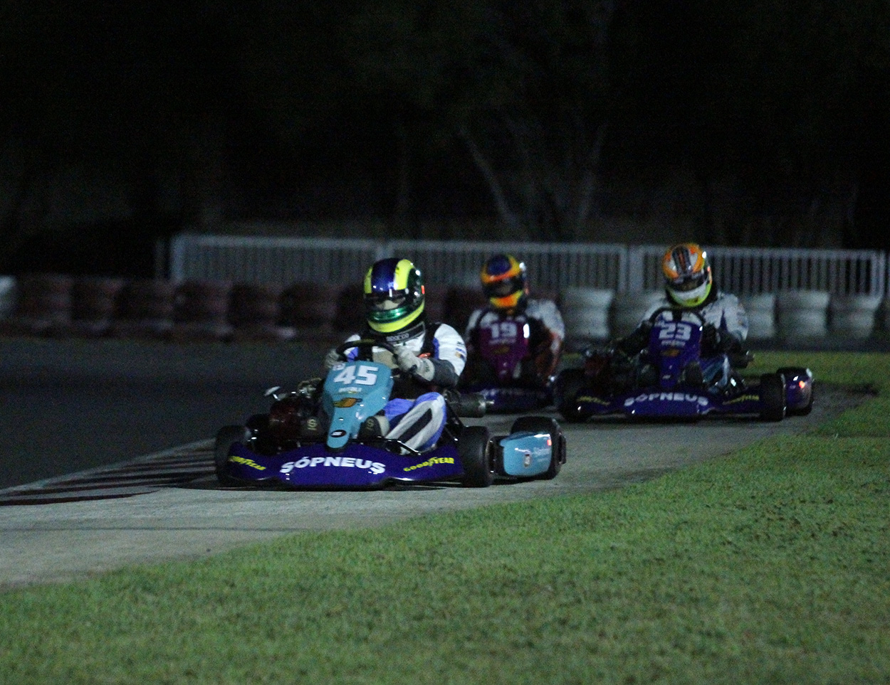 Compartilhar no Facebook Compartilhar no Twitter Compartilhar no Google+ Compartilhar no Pinterest Americana (28 de setembro de 2019) – Douglas Pitoli foi o vencedor da oitava (e antepenúltima) etapa da Copa Sópneus Goodyear de Kart Pé de Chumbo, na noite de sexta-feira (27), no Kartódromo San Marino, em Paulínia. O piloto #45 ganhou a primeira bateria e ficou em terceiro lugar na segunda, totalizando 56 pontos no acumulado da rodada. Douglas Pitoli vence etapa noturna do Pé de Chumbo em Paulínia Rogério Pompermayer, com 53 pontos, foi o segundo colocado, enquanto Marcel Torina, também com 53, fechou na terceira posição. O pódio ainda teve Rafael Contatto, em quarto lugar com 51 pontos, e Théo Pioli Trevisani, em quinto com 50. Faltando duas etapas para o encerramento da temporada 2019 do PD´Chumbo, a briga pelo título segue intensa. Théo Trevisani permanece na liderança, agora com 375 pontos (teve 1 ponto de bonificação ontem pela volta mais rápida), mas a diferença para o segundo colocado Rogério Pompermayer caiu de 13 para 11 pontos – Pompermayer chegou a 364. Douglas Pitoli, agora com 351 pontos, subiu do quarto para o terceiro lugar com a vitória em Paulínia e está 24 pontos atrás do ponteiro. A rodada de ontem não foi das melhores para Giovanni Pamfílio, que ficou na oitava posição e na geral caiu para a quarta colocação, agora 29 pontos de diferença para Théo. Na categoria Light da Copa Sópneus Goodyear de Kart, o líder Candido Santos Neto ganhou a rodada em Paulínia, chegou a 258 pontos e praticamente assegurou a conquista do título e o acesso à Pró em 2020. Ele abriu vantagem de 56 pontos para Oswaldo Delfin Nogueira, que subiu para a segunda colocação, e de 68 pontos para Ederson Rodrigues, que caiu para o terceiro lugar. Neto somou 36 pontos no San Marino com o 11º lugar na corrida 1 e o 12º na corrida 2 – o Pé de Chumbo tem grid único, com pontuação distinta para cada categoria. Além de Candido Neto, o pódio da Light teve Oswaldo Nogueira, segundo com 34 pontos; Paulo Rosa, terceiro com 30; Carlos Barbosa, quarto com 25; e Mayckon Mota, quinto com 24. As duas últimas etapas estão marcadas para os dias 26 de outubro, em Limeira, e 23 de novembro, em Paulínia. A temporada 2019 do Pé de Chumbo tem patrocínio de Sópneus, Goodyear, Tatu Shopping Frutas, Sanfarma, Meta/Comfer, Helpmóvel Socorro Médico, Jundiá Sorvetes/Óculos HB, Newcoates, Credcon Consórcios e 5aSec. E apoio de Audaz, Grupo Liberal, Jornal O Jogo, RB3 Preparação e RKM Transportes. Por: Zaramelo Jr.