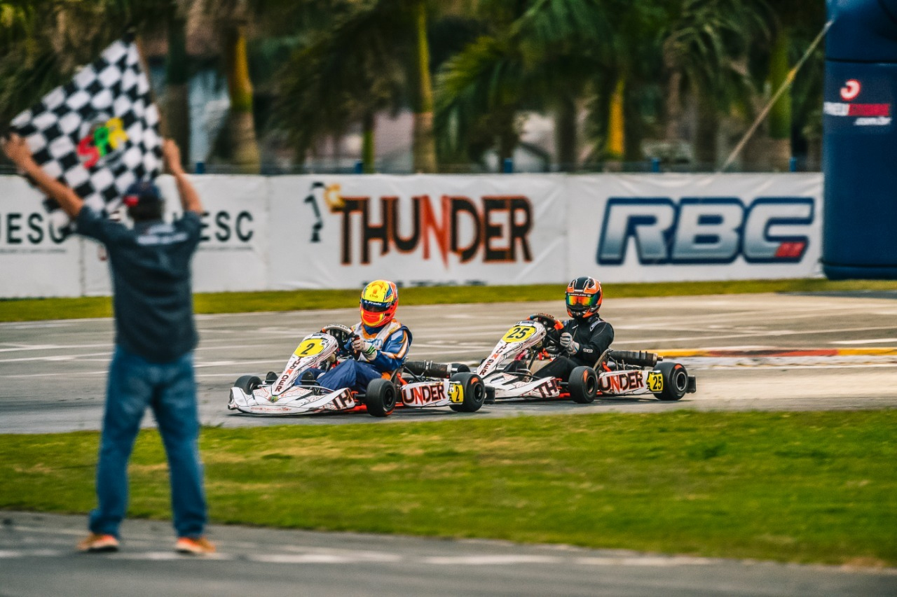 Compartilhar no Facebook Compartilhar no Twitter Compartilhar no Google+ Compartilhar no Pinterest Última etapa do campeonato foi disputada neste sábado (28) no Kartódromo Beto Carrero, em Penha (SC), mesmo palco do nacional em outubro Rafael Prada e Murilo Barcellos A fabricante de chassis Thunder Technology deu um importante passo em sua preparação para a disputa da 21ª edição da Copa Brasil de Kart, marcada para ser disputada em outubro no Kartódromo Beto Carrero, em Penha (SC). No último final de semana, na mesma pista, a empresa venceu em três categorias na etapa final da Copa SPR Light e fechou o campeonato comemorando a conquista de dois títulos. Um dos títulos chegou com Rafael Prada, que marcou a pole position e venceu as duas baterias da F4 Graduados. Os resultados fizeram com que o piloto catarinense, além de vencer a etapa, somasse mais pontos em sua categoria e, assim, comemorasse a conquista da Copa SPR Light. Na mesma categoria, Murilo Barcellos terminou a etapa em 2º e Cauã Mendes foi o 5º, configurando amplo domínio da Thunder no pódio. Fernando Dias, piloto da Sênior B, igualmente marcou a pole position e venceu as duas baterias de sua categoria. E, a exemplo de Prada, levou a si a e a Thunder Technology ao título da Copa SPR Light, que serviu como preparação de pilotos e equipes para a Copa Brasil. A terceira vitória da fabricante de chassis no último sábado (28) chegou na categoria Júnior Menor, com o piloto Guilherme Quinteiro, que conquistou um 4º e um 1º lugar entre as duas baterias disputadas. Na F4 Sênior Flaviano Ramos foi o autor da pole position e finalizou a última etapa do SPR Light em 2º. O piloto catarinense venceu a segunda bateria depois de largar em sexto, enquanto seu irmão Allan Ramos foi o 2º colocado após partir da sétima posição, em uma dobradinha dos chassis Thunder. A Sênior A teve pole position de um piloto equipado com chassis Thunder, o paulista Alain Sisdeli, enquanto Luiz Eduardo Salau finalizou a rodada com o 5º lugar no pódio da categoria. Por fim, Marcos da Silva foi o 5º colocado na categoria F4 Super Sênior. “Tivemos um ótimo final de semana, tanto em termos de resultados em pista quanto em nossa preparação para a Copa Brasil, evento em que buscaremos conquistar mais títulos nacionais”, analisa Ruan Belizario, da Thunder Technology, que em julho se sagrou tricampeão brasileira de kart. “Agradeço inicialmente à Deus por isso tudo, e também aos integrantes da nossa área técnica, à nossa própria equipe na Thunder, e aos pilotos e equipes que vem confiando em nosso trabalho. Juntos somos mais fortes”, finaliza. KG COM Assessoria de Comunicação – Erno Drehmer (MTb/RS 14.706)