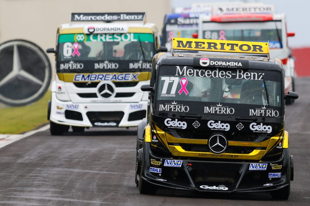 Compartilhar no Facebook Compartilhar no Twitter Compartilhar no Google+ Compartilhar no Pinterest A Copa Truck realiza no próximo fim de semana, no Autódromo do Velopark, na Grande Porto Alegre, a última de suas etapas de classificação para a decisão do título da temporada. Logo, é a última chance para grande parte dos pilotos do grid se juntarem a André Marques, Beto Monteiro, Felipe Giaffone, Leandro Totti e Roberval Andrade, que já carimbaram o passaporte para a Grande Final. Caminhões chegam para etapa decisiva no Velopark. Crédito: Rodrigo Ruiz/RR Media Matematicamente, 14 pilotos possuem chances de classificação ou de somar pontos extras. Entre eles os pilotos da AM MotorSport André Marques (29 pontos), Débora Rodrigues (28 pontos) e Wellington Cirino (13 pontos), que colocam os caminhões Mercedes-Benz na pista a partir de sexta-feira em duas sessões de treinos livres. Com vaga garantida na final, André Marques vai em busca de um novo troféu e de pontos extras. Após a pole e dois pódios na etapa anterior, ele se mostra bastante confiante para encarar o menor circuito da temporada. “É um novo desafio para todo o time, já que temos um conjunto de retas longas e curvas bem travadas no Velopark. Quero buscar mais um troféu de copa e ajudar os dois companheiros de equipe que ainda precisam se classificar para a final”, comenta André Marques. Débora Rodrigues também mantém o otimismo de brigar por uma das três vagas na final. “Tenho falado que estamos evoluindo a cada etapa e o caminhão está muito bom. A classificação está bastante embolada e uma boa corrida pode garantir a vaga na final. Vai ser bastante disputado e eu vou pra cima para garantir essa vaga”, avisa Débora Rodrigues. Com uma quebra na etapa anterior, Wellington Cirino só pontuou em uma prova, salvando 13 pontos. Por isso, a etapa no Velopark se tornou decisiva para o tetracampeão nos caminhões. “Não tenho outra alternativa que não seja buscar a pole e tentar vencer as duas corridas para buscar, no mínimo, o terceiro lugar na copa. Vou lutar muito para conseguir esse resultado e, mais uma vez, estar na disputa do título”, aposta Wellington Cirino. Apenas os três primeiros colocados da quarta copa conquistam o direito de avançar para a Grande Final. Os treinos da Copa Truck no Velopark começam na sexta-feira, com duas sessões. No sábado acontece a última sessão de treino livre e o treino classificatório, que será transmitido no Youtube e Facebook da categoria. As corridas, no domingo, terão transmissão pelo Sportv. A AM MotorSport tem o patrocínio da Cerveja Império e Cresol, com o apoio da Dopamina Energy Drink, Embreagex, Truck Van, Rodoviário Crismara, Gelog Transportes, Radiadores Visconde, Nino Faróis, Molas Marcheti, Frum, Cobreq e Mercedes Club. O time acelera os caminhões Mercedes-Benz. Classificação da Quarta Copa 1º – Paulo Salustiano (Volkswagen), 38 pontos 2º – Beto Monteiro (Volkswagen), 38 pontos 3º – André Marques (Mercedes-Benz), 29 pontos 4º – Débora Rodrigues (Mercedes-Benz), 28 pontos 5º – Renato Martins (Volkswagen), 24 pontos 6º – Felipe Giaffone (Iveco), 23 pontos 7º – Gabriel Robe (Mercedes-Benz), 22 pontos 8º – Regis Boessio (Volvo), 19 pontos 9º – Pedro Paulo Fernandes (Mercedes-Benz), 15 pontos 10º – Luiz Carlos Zapelini (MAN), 13 pontos 11º – Wellington Cirino (Mercedes-Benz), 13 pontos Por: Osires Junior