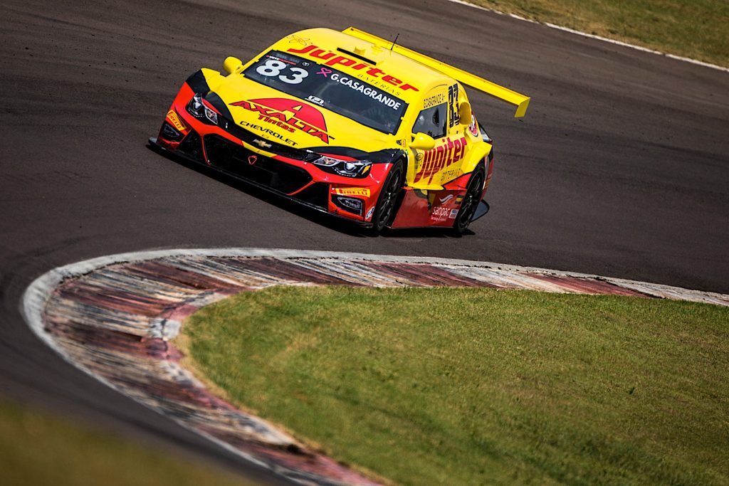Compartilhar no Facebook Compartilhar no Twitter Compartilhar no Google+ Compartilhar no Pinterest Piloto da Crown Racing fez a pole, subiu no pódio e conseguiu o recorde de pontos na etapa passada em Cascavel; paranaense conta com retrospecto de pódios no Velo Città e gosta do estilo do traçado com poucas retas e várias curvas desafiadoras Gabriel Casagrande (Bruno Terena/RF1) Embalado pela pole position na etapa passada e por ter conquistado quatro pódios nas últimas quatro etapas da Stock Car, Gabriel Casagrande terá mais um desafio neste final de semana no Velo Cittá com a equipe Crown Racing. A pista no interior de SP receberá a 10ª etapa da temporada e o piloto paranaense conta com bom retrospecto no circuito pelos pódios conquistados em 2017 e 2019. “Gosto muito do Velo Città por ser uma pista sem retas longas, muito parecida com um kartódromo, sendo assim bem desafiante e exigente: o piloto cansa bastante nesta pista. O meu retrospecto é muito bom e vamos trabalhar bastante para manter esses bons números. Estou animado, como sempre, para mais essa. Nosso carro teve uma boa melhora do meio do ano para cá e já brigamos nas primeiras posições na etapa do início do ano no Velo Città, então tenho um bom pressentimento para esse final de semana”, diz Casagrande, que é patrocinado por Baterias Júpiter, Axalta, STP e Sanpac. Atualmente na sétima colocação do campeonato com 191 pontos, Casagrande é um dos destaques da categoria e foi ao pódio cinco vezes no ano – Velo Città, Campo Grande, Corrida do Milhão (Interlagos), Velopark e Cascavel. O piloto da Crown Racing vive sua melhor temporada desde que estreou na Stock Car em 2013. “O objetivo agora passa a ser marcar o maior número de pontos para chegar na última etapa com chances matemáticas de título, mesmo que improvável. A vitória é consequência disso, já provei que a velocidade e ritmo nós temos o ano todo”, diz Casagrande, que foi o recordista de pontos no Velo Città em maio deste ano 37 pontos e repetiu o feito na etapa passada, no Velopark, com 40 pontos. A décima etapa da Stock Car terá início apenas no sábado (9), a partir das 8h (horário de Brasília) com o shakedown. Os treinos livres começam às 8h25, enquanto o classificatório acontece às 13h30, com exibição ao vivo do GloboEsporte.com. No domingo, a largada da prova 1 será às 11h e a segunda corrida começará ao meio-dia, ambas com transmissão ao vivo do Sportv 2. Classificação da Stock Car após 9 de 12 etapas: 1) Daniel Serra, 265 2) Ricardo Maurício, 265 3) Thiago Camilo, 249 4) Rubens Barrichello, 241 5) Felipe Fraga, 225 6) Júlio Campos, 224 7) Gabriel Casagrande, 191 8) Cacá Bueno, 182 9) Max Wilson, 133 10) Bruno Baptista, 126 11) Marcos Gomes, 125 12) Nelson Piquet Jr., 125 13) Átila Abreu, 112 14) Ricardo Zonta, 106 15) Galid Osman, 99 16) Diego Nunes, 95 17) Allam Khodair, 88 18) Lucas Foresti, 86 19) Denis Navarro, 85 20) Rafael Suzuki, 83 21) Gaetano Di Mauro, 82 22) Valdeno Brito, 81 23) César Ramos, 63 24) Marcel Coletta, 63 25) Bia Figueiredo, 52 26) Guga Lima, 48 27) Felipe Lapenna, 35 28) Pedro Cardoso, 34 29) Agustín Canapino, 10 30) Vitor Baptista, 7 31) Raphael Reis, 3