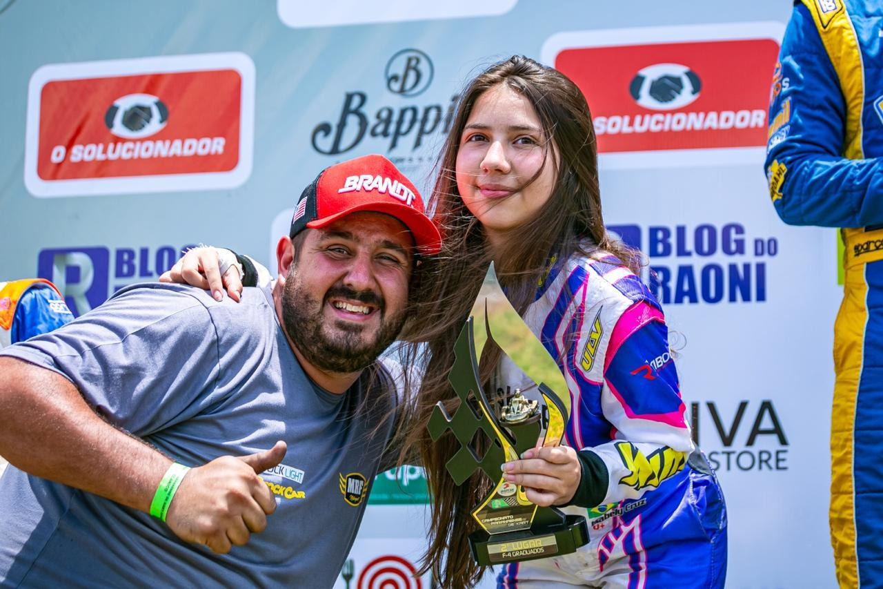 Compartilhar no Facebook Compartilhar no Twitter Compartilhar no Google+ Compartilhar no Pinterest Paranaense disputou o principal campeonato do Estado na categoria Graduados na última semana Xandão e Isabelly Cruz (Foto: Renato Mafra) Após uma pausa de cerca de quatro meses, a jovem piloto paranaense Isabelly Cruz voltou ao kartismo e mostrou belo desempenho na disputa do Campeonato Paranaense de Kart. A competição foi realizada na última semana em Campo Mourão, cidade onde a piloto reside. A última participação de Isabelly Cruz em corridas de kart foi em julho, no Campeonato Brasileiro, quando a paranaense correu na categoria Codasur. Mas, mesmo após esta inatividade, a piloto foi um dos destaques do Campeonato Paranaense. Terceira colocada na tomada de tempos, Isabelly Cruz obteve um segundo e um terceiro lugar nas provas classificatórias. Depois, na última e decisiva corrida, terminou em 2º, conquistando o vice-campeonato paranaense na categoria Graduados após uma equilibrada disputa em que chegou a liderar. Em dado momento, quando ocupava a liderança, a piloto deu uma pequena escapada da pista e quase rodou. Controlando bem o kart, Isabelly Cruz acabou perdendo a ponta, que acabaria não conseguindo recuperar em função da larga distância que o novo líder estabeleceu. “A Isabelly chegou a liderar e era mais rápida que o líder quando voltou à pista, mas acabou cansando, fruto deste tempo em que estava parada”, explica Márcio Cruz, pai de Isabelly Cruz. “Mas ficamos muito contentes com este vice-campeonato e, principalmente, com seu desempenho em sua volta às competições”, completa. “Quero mandar um grande abraço ao Xandão, meu mecânico, por seu ótimo trabalho”, agradece Isabelly Cruz. “E também um obrigado à equipe Leme Competição e ao Renato Tibola, por seus motores”, finaliza. Por Erno Drehmer