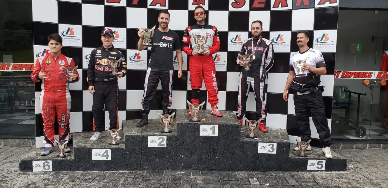 Compartilhar no Facebook Compartilhar no Twitter Compartilhar no Google+ Compartilhar no Pinterest No próximo domingo será a decisão do campeonato Pódio da categoria Champ da F-Kart (Divulgação) Mesmo sem subir no pódio, o piloto Alberto Otazú (AVSP/Rolley Ball/No Fire Services/Bianchi Automóveis/Speed Truck/Cardoso Funilaria e Pintura) reassumiu a liderança na categoria Principal do campeonato F-Kart. Ele terminou na oitava posição na 11ª e penúltima etapa, no Kartódromo Aldeia da Serra (Barueri/SP), marcada por vários problemas entre os principais protagonistas da modalidade. Agora ele soma 1081 pontos, apenas 16 de vantagem sobre Lucas Chimello, que abandonou na segunda volta. Em terceiro está Henrique Morbi – 1002 pontos -, que venceu a prova, mas não levou por falta de peso, deixando o lugar mais alto do pódio para Tiago Torelli. “Ainda bem que os contratempos não foram apenas meus. Mesmo com o meu kart quebrando no final da corrida, quando eu estava em segundo, ainda pontuei e voltei para a liderança do campeonato que eu sustentei por nove etapas. Agora vamos brigar pelo título na prova final”, comentou Alberto Otazú. Na categoria Champ Alberto Otazú subiu no pódio em sexto, depois de trocar de kart três vezes e largar da última posição. “Fui pegando cada kart pior do que o outro. Mesmo andando lento, fui bem constante e com isto ganhei algumas posições. Foi uma etapa pra esquecer”, lamentou Otazú, que ocupa a quarta colocação no certame, mas com o mesmo número de vitórias – quatro – do que o líder Lucas Chimello, segundo nesta rodada, logo atrás do vencedor Henrique Morbi. A 12ª e última etapa da F-kart será já no próximo domingo (01/12), no Kartódromo San Marino, em Paulínia (SP). Pontuação da categoria Principal depois de onze etapas: 1) Alberto Otazú, 1.081 pontos; 2) Lucas Chimello, 1.065; 3) Henrique Morbi, 1.002; 4) Rafael Pereira, 971; 5) Lucas Pantarotto, 968. Pontuação da categoria Champ depois de onze etapas: 1) Lucas Chimello, 1.239; 2) Henrique Morbi, 1.149; 3) Rafael Pereira, 1.148; 4) Alberto Otazú, 1.112; 5) Lucas Pantarotto, 1.089. Alberto Cesar Otazú tem o apoio de Autódromo Virtual de São Paulo (AVSP), Cardoso Funilaria e Pintura, Rolley Ball, No Fire Services, Speed Truck, Bianchi Automóveis. O jovem apoia as ações da Associação Cruz Verde, Direção para a Vida e Rotary Club Ponte Estaiada. Acompanhe www.facebook.com/albertocesar.otazu Curta www.facebook.com/associacaocruzverde Curta www.facebook.com/DirecaoParaAVida Visite. www.imab.com.br Visite www.nofire.com.br Visite www.rolleyball.com.br Visite www.renovaurb.com.br Visite www.speedguincho.com.br