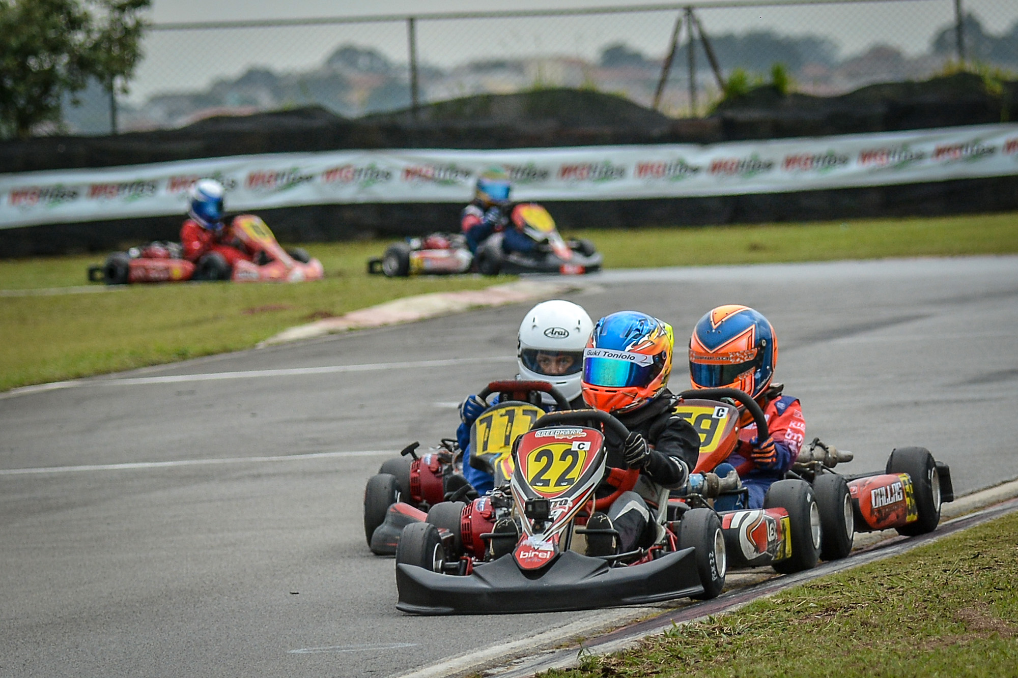 Compartilhar no Facebook Compartilhar no Twitter Compartilhar no Google+ Compartilhar no Pinterest Com esta competição, o piloto encerra o calendário de kart em 2019 Com foco na preparação para a temporada 2020, Guki Toniolo, representante da cidade gaúcha de Bento Gonçalves, participou da última etapa da Copa São Paulo Light de Kart, disputada no sábado (14), no kartódromo de Interlagos. Infelizmente, incidentes em duas das três baterias realizadas da Cadete obrigaram o piloto a abandonar as provas. Na metade da primeira bateria um enrosco tirou Guki Toniolo da pista, com o kart avariado não deu para voltar. Na segunda, o piloto administrou bem a posição e ganhou algumas disputas. Na terceira e última prova uma batida forte ainda na primeira volta jogou o kart pra fora da pista.”Levamos um susto, mas graças a Deus, o Guki não se machucou. Já o kart ficou com o eixo torto e tivemos que abandonar a corrida. Com este evento nós fechamos o nosso calendário de competições de 2019, mas janeiro está próximo e estaremos prontos para a temporada 2020″, informou Paulo Sodré, preparador do piloto. Acompanhe mais notícias sobre o piloto nas redes sociais www.facebook.com/gukitoniolo22 e Instagram @gukitoniolo22. Texto e foto: Eni Alves