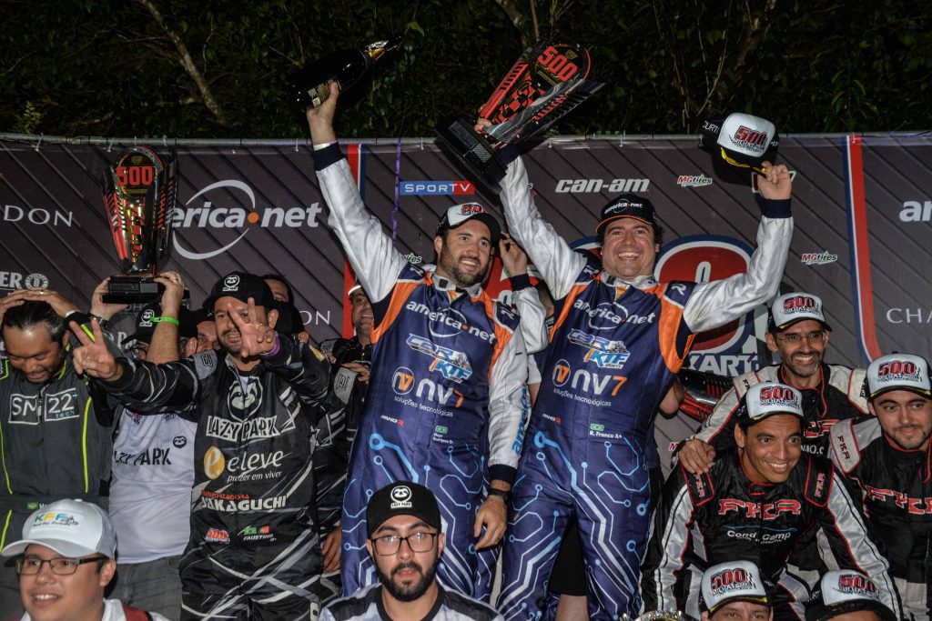 Compartilhar no Facebook Compartilhar no Twitter Compartilhar no Google+ Compartilhar no Pinterest Gabriel Rosa e Rodrigo França subiram no pódio da F4 Senior; Lucas Zanchet e Hugo Rodrigues correrão na Copa SP de Kart, que começa na próxima semana na Granja Viana No topo do pódio: categoria Thunder Light nas 500 Milhas de Kart (Pedro Bragança/Clickspeedstudio-RF1) Os pilotos da equipe Car Racing KTF Americanet que foram campeões das 500 Milhas de Kart 2019 na categoria Light começaram 2020 conquistando pódios na Copa KGV. O novo campeonato paulista de kart teve início no ultimo final de semana no Kartódromo Granja Viana, em Cotia, Grande São Paulo. Gabriel Rosa foi o segundo colocado na categoria F4 Senior, com Rodrigo França em terceiro – ao todo, foram 20 competidores na categoria e 33 no grid com os karts cujo regulamento técnico é bastante próximo ao da categoria Pro-500, com o qual foram campeões. Já Lucas Zanchet e Hugo Rodrigues, que integraram o quarteto campeão com o chassis Thunder no kart 385, também vão participar da Copa São Paulo de Kart, que tem início na próxima semana, também na Granja Viana. “Foi uma conquista histórica, especialmente porque foi a nossa primeira competição juntos e todos os pilotos se conheceram acelerando no Mondial, um campeonato extremamente competitivo e que já existe há 14 anos na Granja Viana. Conseguimos unir forças com a Car Racing KTF para formar uma equipe campeã nas 500 Milhas de Kart na categoria Light e agora vamos seguir juntos acelerando também na Copa KGV e Copa São Paulo”, diz França. Com os quatro pilotos sendo chefiados por LG Ribeiro, presidente do Mondial, a equipe venceu as 500 Milhas de Kart completando 648 voltas nas 12 horas de prova. A equipe Lazy Kart ficou em segundo, seis voltas atrás, e F-Kart Ecobrisa ficou em terceiro, com oito voltas de diferença. Rosa, França, Zanchet, Rodrigues e LG voltam a acelerar juntos nesta quarta-feira, no Kartódromo Granja Viana, para a abertura da temporada do Mondial, que reunirá 26 pilotos em 2020. Confira o top–10 da categoria Thunder Light nas 500 Milhas de Kart 2019: 385 – Americanet Car Racing KTF – 648 voltas em 12h01min19s346 777 – Lazy Kart – 642 voltas 481 – Fkart Ecobrisa – 640 voltas 4 – AWR Racing – 636 voltas 99 – Akasp / MFS – 632 voltas 29 – Wal Racing – 629 voltas 7 – Palmeira Motors Racing – 627 voltas 3 – Karteiras Pro Max Bardahl – 571 voltas 78 – Unipneus Racing Team – 543 voltas 28 – Sixspeed Racing – 526 voltas