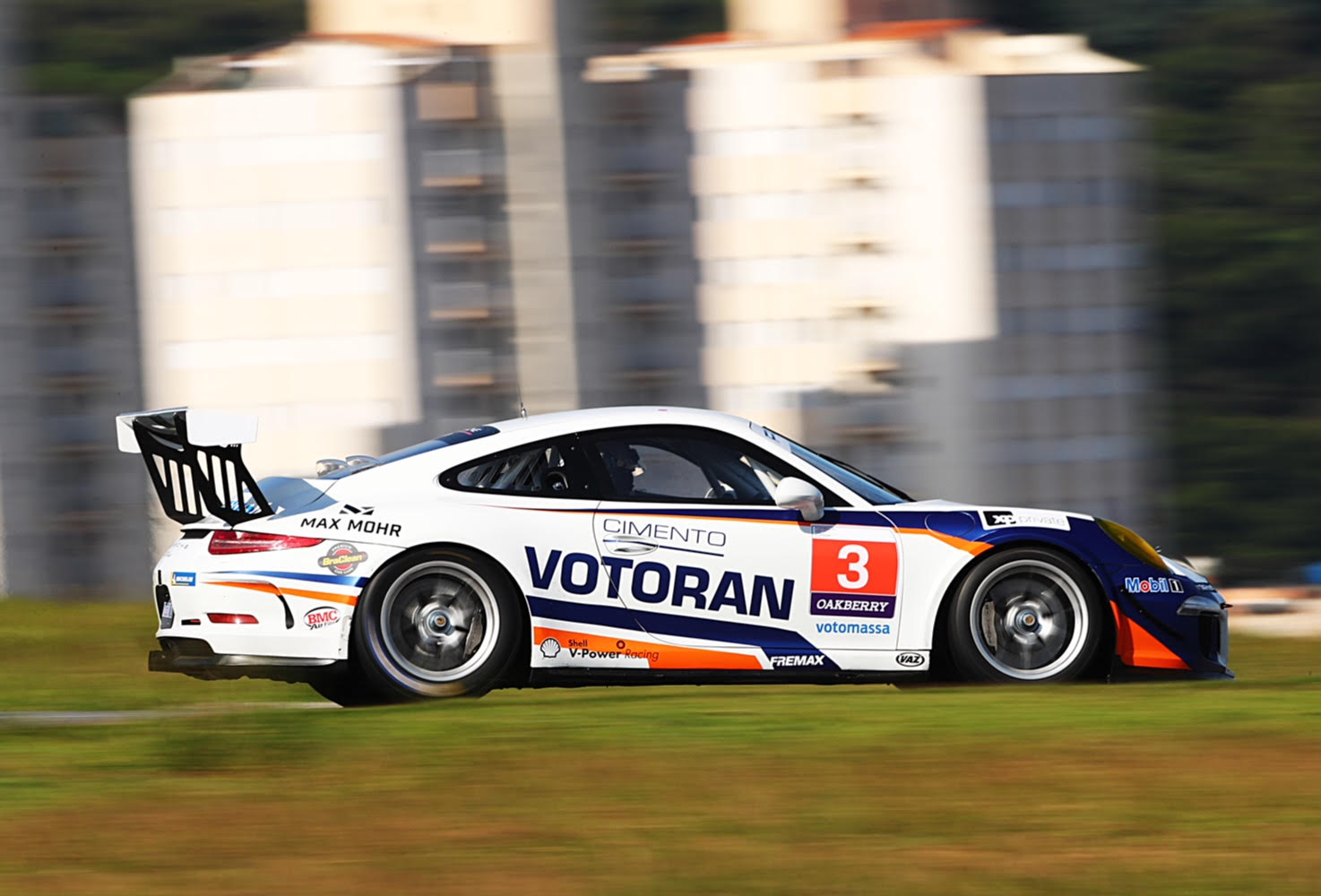 Compartilhar no Facebook Compartilhar no Twitter Compartilhar no Google+ Compartilhar no Pinterest eu primeiro compromisso acontece neste final de semana (13 à 14) no lendário circuito de Interlagos (SP). C Mohr Representando a cidade de Blumenau (SC), Cristian que está há três anos longe das pistas, faz sua estréia no Porsche Carrera Cup, disputando na classe 3.8. “Estou muito motivado e feliz em voltar, principalmente em poder acelerar um carro como este, que sempre sonhei (Porsche Carrera 911 GT3), com mais de 450 cv.” – disse o piloto. Alguns desafios fazem parte da sua estréia neste final de semana. “Terei vários desafios, como me adaptar a categoria, ao carro e aos meus adversários, pois será tudo novo, exceto a pista que a conheço bem” – finaliza Cristian, que têm passagens por várias categorias no automobilismo nacional. Cristian está confirmado nas duas primeiras etapas na modalidade SPRINT: Interlagos (SP), e em Goiânia (GO), prova marcada para os dias 17 e 18 de abril. Outra novidade, é que Mohr vai competir nas provas de longa duração, que também são organizadas pela categoria. E não estará sozinho. Kreis Jr, seu amigo de longa data, vai dividir o Porsche 911 GT3 #371. As provas deste final de semana serão transmitidas AO VIVO nos canais Sportv e redes oficiais da categoria no Facebook e Youtube. Programação Sexta-feira (13) 1º Treino livre – 13h às 13h45 Treino classificatório – 16h22 às 16h37 Sábado (14) Corrida 1 – 09h50 às 10h23 Corrida 2 – 13h20 às 13h48 Acompanhe também as notícias do piloto nas redes sociais: Instagram: @velocidadecuritiba Facebook.com/VelocidadeCuritiba Cristian Mohr é patrocinador por: Votorantim Cimentos, Votomassa e Max Mohr Grupo Fotos: Luca Bassani Cintia Azevedo – Velocidade Curitiba Assessoria e Marketing