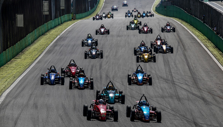 Compartilhar no Facebook Compartilhar no Twitter Compartilhar no Google+ Compartilhar no Pinterest Maior grid da segunda etapa do Paulista uniu F-1600 e F-Vee Vereador Rodrigo Goulart deu a bandeirada de chegada na old Stock Race (Divulgação FASP) A reabertura do Autódromo de Interlagos reuniu cerca de 350 pilotos divididos em 10 categorias e suas respectivas classes nas provas que compuseram o programa da segunda etapa do Campeonato Paulista de Automobilismo, evento disputado no último fim de semana. O maior grid das 15 largadas reuniu 31 carros na primeira das quatro competições válidas pela rodada dupla das fórmulas 1.600 e Vee, onde também aconteceram as chegadas mais emocionantes do fim de semana. Na segunda prova do sábado Bruno Leme, cruzou a linha de chegada 0″002 à frente de Oscar Moraes, que por sua vez superou Lélio Assumpção por escassos 0″098; no domingo, Bruno Leme e Lélio Assumpção chegaram separados por apenas 0″047 na primeira das duas disputas do dia. A jornada do fim de semana foi dedicada a Marcus Ramaciotti, saudoso presidente do Conselho Técnico Desportivo Paulista, recentemente falecido. José Aloizio Cardozo Bastos, presidente da Federação de Automobilismo de São Paulo (FASP), destacou que foi uma justa homenagem a um colaborador admirado por todos os automobilistas paulistas. O mandatário da FASP também celebrou o sucesso do reinício das atividades regionais: A empresa Art1 apoiou a homenagem a Marcus Ramaciotti (Sérgio Rodrigues) “Tivemos praticamente três centenas e meia de automóveis na pista e um paddock onde não registramos nenhuma infração ao protocolo de segurança aprovado pelas autoridades sanitárias. Vale ressaltar a colaboração importante do vereador Rodrigo Goulart para que pudéssemos voltar a praticar nosso esporte no Autódromo de Interlagos.” Formulas 1600 e Vee formaram o maior grid do fim de semana (Vanderley Soares) O reinício do Campeonato Paulista de Automobilismo marcou também a estreia da F-Delta, que utiliza monopostos equipados com motor Mitsubishi 2.0 de 185 hp, o relançamento do Mercedes Benz Challenge, um grid significativo de modelos clássicos e modernos compondo a categoria Open paulista e a junção das categorias Old Stock Race e Opala 250. A terceira etapa da temporada está prevista para o fim de semana do dia 13 de setembro, sendo que até lá a FASP trabalha para realizar pelo menos uma jornada de treinos livres. Confira os resultados do fim de semana F-1600 2ª Rodada – Corrida 1 1) Bruno Leme, 12 voltas em 23’57″479; 2) Oscar Moraes, 23’57″631; 3) Iago Garcia, a 24’14″603. Melhor volta da prova: Oscar Moraes, 1’58″299 Vencedor Classe Light: 1) Rodrigo Calaça (11º na classificação geral) Vencedor Classe Master: 1) Alexandre Bonilha (4º) 2ª Rodada – Corrida 2 1) Bruno Leme, 12 voltas em 24’14″104;2) Oscar Moraes, 24’14″106; 3) Lélio Assumpção, 24’14″204. Melhor volta: Lélio Assumpção, 1’58″115 Classe Light: Rodrigo Calaça (4º) Classe Master: Rogério Teixeira (10º) 3ª Rodada – Corrida 1 1) Bruno Leme, 12 voltas em 24’05″605; 2) Lélio Assumpção, 24’05″652; 3) Alexandre Bonilha, 24’16″164. Melhor volta: Lélio Assumpção, 1’28″815 Classe Light: Eduardo Vale (6º) Classe Master: Rogério Teixeira (7º) 3ª Rodada – Corrida 2 1) Bruno Leme, 12 voltas em 26’33″147; 2) Oscar Moraes, 26’33″368 3) Felipe Klemann, 26’36″855. Melhor volta: Lélio Assumpção, 1’58″724 Classe Light: Eduardo Vale (7º) Classe Master: Marcelo Brasil (14º) F-Vee 2ª Rodada – Corrida 1 1) João Pedro Maia, 12 voltas em 24’26″177; 2) Pedro Facchini, 24’52″466; 3) Gerson Zarpelão Jr, 25’15″251 Melhor volta: João Pedro Maia, 2’00″097 Classe Master: Saulo Soares 2ª Rodada – Corrida 2 1) João Pedro Maia, 12 voltas em 24’34″263; 2) Augusto Santin, 25’03″953; 3) Laurent Guerinaud, 25’20″214. Melhor volta: João Pedro Maia, 2’00″744 Classe Master: Augusto Santin 3ª Rodada – Corrida 1 1) João Pedro Maia, 12 voltas em 24’26″997; 2) Pedro Facchini, 24’54″789; 3) Lucas Veloso, 25’08″756. Melhor volta: João Pedro Maia,1’59″690 Classe Master: Augusto Santin (4º) 3ª Rodada – Corrida 2 1) João Pedro Maia, 12 voltas em 26’44″976; 2) Augusto Santin, 27’20″145; 3) Andre Suenaga, 27’20″851 Melhor volta: João Pedro Maia, 2’00″999 Classe Master: Augusto Santin (2º) F-Delta Corrida 1 1) Rogério Santos Neto, 15 voltas em 27’05″287; 2) Pedro Burger, 27’50″731; 3) Deni Sandor, 28’20″198. Melhor volta: Rogério Santos Neto, 1’41″600 Corrida 2 1) André Beisert, 15 voltas em 26’08″623; 2) Gabriel Fonseca, 26’09″669; 3) Rogério Santos Neto, 26’14″930. Melhor volta: André Beisert, 1’42″296 Mercedes-Benz Challenge Corrida 1 Categoria CLA 45 AMG 1) Fernando Jr, 12 voltas em 22’32″385; 2) Adriano Rabello, 22’34″662; 3) Betão Fonseca, 22’34″670. Melhor volta: Fernando Jr, 1’50″533 Classe Master: Fernando Jr (1º) Corrida 2 Categoria CLA 45 AMG 1) Fernando Jr, 12 voltas em 23’03″460; 2) Adriano Rabello, 23’05″192; 3) César Fonseca, 23’06″392. Melhor volta: César Fonseca 1’53″838 Classe Master: Fernando Jr (1º) Corrida 1 Categoria C300 Cup 1) Witold Ramasauskas, 12 voltas em 24’08″938; 2) Flávio Andrade, 24’15″546; 3) Beto Rossi, 25’08″937 Melhor volta: Witold Ramasauskas,1’58″183 Classe Master: Flávio Andrade (2º) Corrida 2 Categoria C300 Cup 1) Alexandre Navarro, 12 voltas em 24’47″940; 2) Beto Rossi, 25’08″440; 3) Patrick Choate, 11 voltas. Melhor volta: Flavio Andrade, 2’00″886 Old Stock Race Corrida 1 1) Rodrigo Helal, 12 voltas em 24’32″188; 2) Ricardo Domenech, 24’33’174; 3) Marco Maragno, 24’47″067. Melhor volta: Rafael Lopes. 2’01″239 Classe Master: Ciro Paciello (9º) Corrida 2 1) Ricardo Domenech, 12 voltas em 26’14″908; 2) Rodrigo Helal, 26’