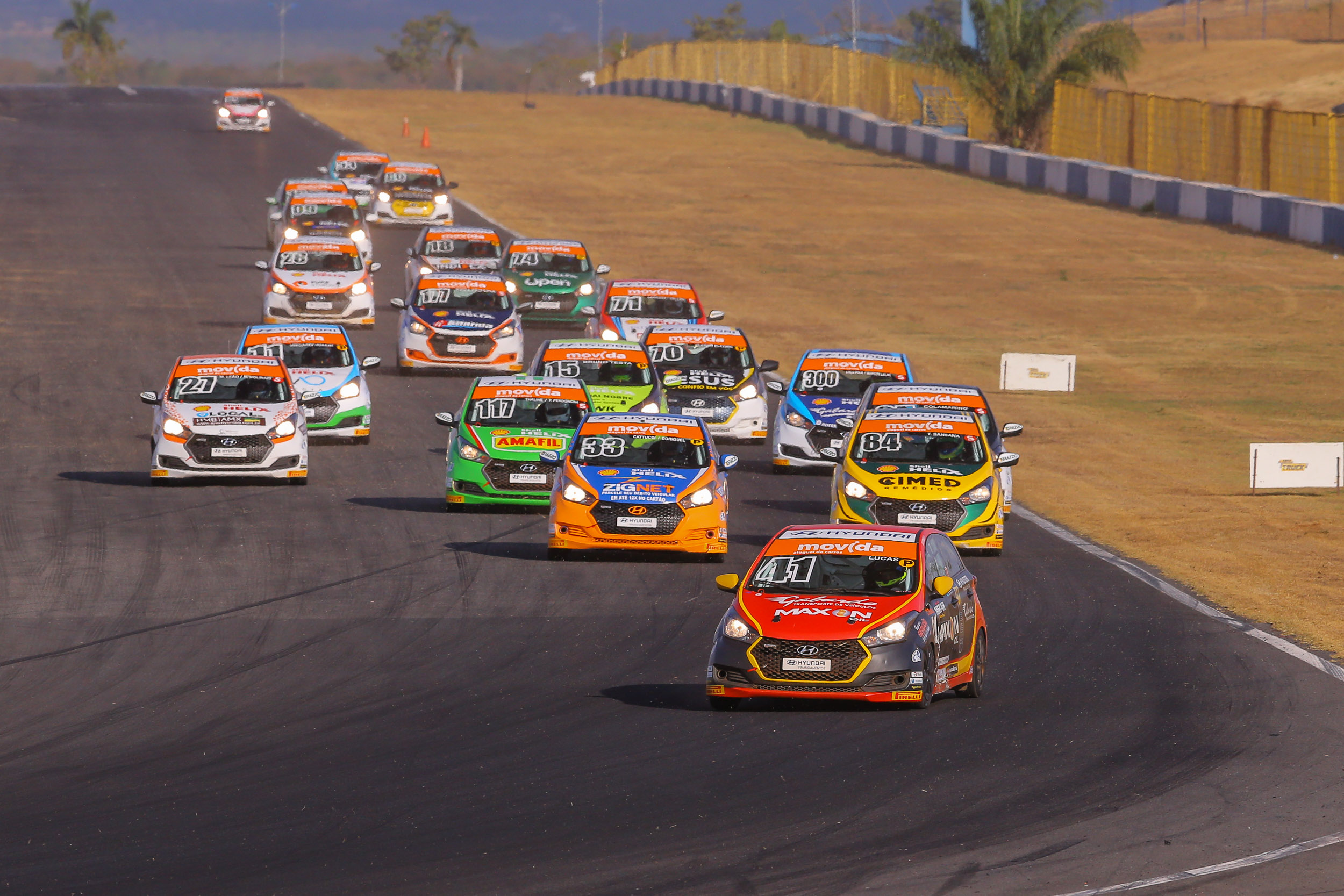 Compartilhar no Facebook Compartilhar no Twitter Compartilhar no Google+ Compartilhar no Pinterest Piloto andou entre os cinco e terminou a corrida 01 deste domingo na sexta posição Foto: Rodrigo Aguiar Ruiz Num final de semana marcado pela quebra de recordes na Copa HB20 – que, na maratona de provas, contou com a participação de 47 pilotos e 35 carros alinhados no grid – o paranaense Lucas Bornemann mostrou que não está para brincadeira e colocou o carro de numeral #41 entre os primeiros colocados da corrida 01 deste domingo (16). Apesar de problemas recorrentes com o câmbio ao longo dos dois dias de prova, o piloto exaltou a evolução em relação à etapa anterior e mostrou confiança para os próximos compromissos na competição. Corridas 1 e 2- Etapa 2: No classificatório do primeiro dia de provas, o carro #41 teve problemas com o freio e, por conta disso, a tomada de tempo foi prejudicada. Largando de trás, Lucas teve boa recuperação e, apesar das circunstâncias, encerrou a primeira prova em P11. Com um início mais favorável na corrida dois, o HB20 #41 chegou a figurar entre os oito primeiros, mas na última metade da prova o carro perdeu rendimento e Lucas acabou em P10. “O resultado estava dentro do meu objetivo, que era estar entre os 10 primeiros na geral. Isso mostra a nossa evolução e me motivou, me fazendo perceber que eu tinha chances de chegar no pelotão da frente nas corridas do domingo” disse. Foto: Rodrigo Aguiar Ruiz Corridas 1 e 2- Etapa 3: Com a confiança renovada para os compromissos deste domingo (16), Lucas Bornemann classificou, novamente, em P13, mas com uma diferença menor em relação aos líderes. Na corrida 1 – considerada, pelo piloto, a melhor do final de semana – Lucas pisou fundo e andou entre o pelotão de cima durante grande parte da prova, tendo se mantido no P5 até a última volta, quando enfrentou um problema no câmbio e passou a ocupar o P6 – colocação na qual encerrou a corrida. Na corrida 2, mesmo largando na melhor posição do final de semana – P5 – Lucas, novamente, teve problemas com o câmbio, o que prejudicou o rendimento. Além disso, o piloto foi acertado por um adversário, perdendo posições. O piloto tentou recuperar o rendimento após passagem pelo box, mas sem êxito. Créditos: Alessandra Seidel Fotos: Rodrigo Ruiz