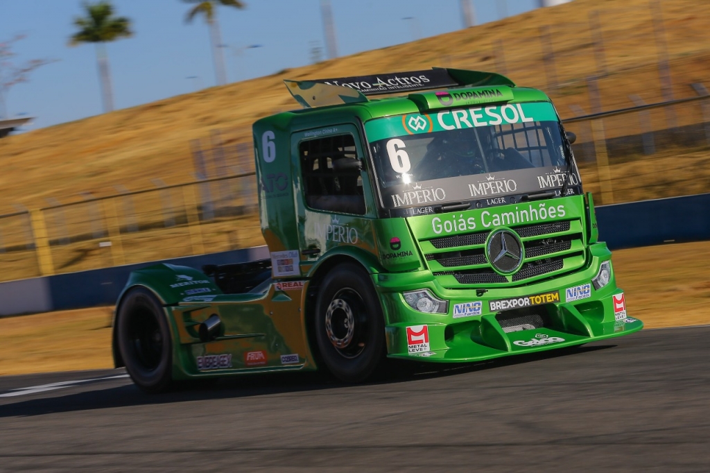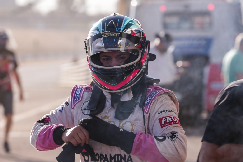 Compartilhar no Facebook Compartilhar no Twitter Compartilhar no Google+ Compartilhar no Pinterest Débora Rodrigues teve problemas na corrida 2 e precisou abandonar. Crédito: RR Media/Rodrigo Ruiz Com apenas seis sobreviventes na corrida 2, as corridas do sábado da Copa Truck complicaram as possibilidades da AM Motorsport de brigar por um troféu para a Grande Final. As duas provas foram vencidas por Beto Monteiro. Neste domingo, serão mais duas corridas para encerrar a segunda copa e definir a nova pontuação para a finalíssima. O maior problema do sábado aconteceu logo na primeira volta da corrida 2, quando o motor do protótipo de Adalberto Jardim explodiu e deixou óleo na pista, causando a saída de muitos caminhões. Os três pilotos da AM não conseguiram concluir a prova. Os únicos pontos salvos pelo time da estrela prateada foram conquistados na corrida 1, com o segundo lugar de Wellington Cirino, o quarto lugar de André Marques e Débora Rodrigues na oitava posição. Como foi? Corrida 1 O começo de prova não foi bom para os pilotos da AM Motorsport. Todos acabaram perdendo posições logo na primeira volta. Na volta 2, Débora Rodrigues teve que cumprir drive-through. Na volta 5, a direção de prova determinou a entrada do safety truck e o pelotão voltou a ficar agrupado, quando Wellington Cirino e André Marques andavam juntos em P3 e P4, enquanto Débora Rodrigues vinha em busca de recuperação na 11ª posição. Cirino garantiu pódio na corrida 1. Crédito: Rodrigo Ruiz/RR Media Colocando pressão pra cima de Felipe Giaffone, Wellington Cirino conquistou a segunda posição. Já Débora Rodrigues ganhou várias posições e terminou em 8ª. Corrida 2 Débora Rodrigues largou na frente na corrida 2, com a inversão de grid, enquanto André Marques largou em quinto e Cirino em sétimo. Logo na curva 2, o motor do protótipo de Adalberto Jardim explodiu e complicou a visibilidade para todos os pilotos. Mesmo assim, Débora e Cirino conseguiram escapar de um possível acidente e assumiram o segundo e terceiro lugar. André Marques não teve a mesma sorte e perdeu muitas posições. Logo na sequência, Débora teve uma nova saída de pista que danificou o caminhão e foi preciso abandonar a prova. Toque na largada acabou com chances de André Marques. Crédito: Rodrigo Ruiz/RR Media A equipe AM Motorsport utiliza os caminhões Mercedes-Benz, com o patrocínio da Cresol e Cerveja Império. O apoio do Mercedes Club, Unimed/Beltrão, Nino Faróis, Gelog Transportes, YPF Brasil, Goiás Caminhões e Rodoviário Crismara. Pontuação Parcial – Copa 2 Beto Monteiro, 40 pontos Jô Augusto, 29 pontos Luiz Lopes, 25 pontos Rafael Lopes, 25 pontos Djalma Pivetta, 22 pontos Wellington Cirino, 20 pontos Glauco Ramos, 19 pontos Felipe Giaffone, 18 pontos André Marques, 16 pontos Adalberto Jardim, 14 pontos Débora Rodrigues, 12 pontos Fábio Fogaça, 9 pontos Evandro Camargo, 7 pontos Resultado Corrida 1 1º – Beto Monteiro, VW 2º – Wellington Cirino, Mercedes-Benz 3º – Felipe Giaffone, Iveco 4º – André Marques, Mercedes-Benz 5º – Rafael Lopes, VW 6º – Adalberto Jardim, PRO 7º – Jô Augusto, VW 8º – Débora Rodrigues, Mercedes-Benz 9º – Luiz Lopes, IVE 10º – Djalma Pivetta, IVE 11º – Fabio Fogaça, PRO 12º – Glauco Barros, VOL 13º – Evandro Camargo, MB Não Completaram Raphael Teixeira Alexandro Navarro Roberval Andrade Paulo Salustiano Pedro Paulo Valmir Benavides Daniel Kelemen Resultado Corrida 2 1º – Beto Monteiro 2º – Jô Augusto 3º – Luiz Lopes 4º – Djalma Pivetta 5º – Glauco Barros 6º – Rafael Lopes Não completaram André Marques Felipe Giaffone Débora Rodrigues Daniel Kelemen Wellington Cirino Adalberto Jardim Evandro Camargo Fábio Fogaça Por Osires Júnior