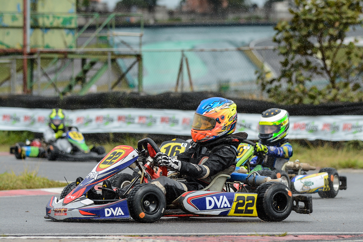 Compartilhar no Facebook Compartilhar no Twitter Compartilhar no Google+ Compartilhar no Pinterest O piloto disputa a Copa SPR e Open do Sul-brasileiro, no Kartódromo Beto Carrero World, nesta semana Em um traçado técnico e veloz como o de Interlagos, com a pista meio úmida e totalmente escorregadia, fazer uma prova de recuperação não é nada fácil. Principalmente, se o piloto sair do final do grid como fez Guki Toniolo (DVA/Bento Turismo), no último sábado, durante as provas da 4ª e 5ª etapas da Copa São Paulo Light de Kart. Guki Toniolo não foi ao pódio, mas teve um aprendizado e tanto nesta rodada tripla da Copa São Paulo Light de Kart Guki Toniolo alinhou na 18ª posição do grid com 23 concorrentes na categoria Cadete. A tomada de tempo foi com chuva. Na primeira bateria ela sessou, mas a pista ainda estava bem molhada. Com cautela e aproveitando oportunidades de ultrapassagens o piloto conseguiu cruzar a linha de chegada no 12º lugar. Já na prova seguinte, com algumas aberturas de sol, a condição da pista era totalmente diferente. Largando do meio do pelotão e com o asfalto escorregadio, Guki Toniolo disputava a oitava colocação quando um toque o jogou para fora da pista e o fez cair para o 16º posto. Retomando a corrida com bom ritmo recebeu a bandeira quadriculada na 11ª posição. Na terceira disputa da rodada, o piloto brigava pelo quinto lugar, mas na última volta um outro toque empurrou o piloto na grama e ele encerrou no 8º lugar. “Não conseguimos pódio, mas meu pai disse que foi uma experiência e tanto para mim que tenho um pouco mais de um ano de kart. Agora, o foco é o traçado do Beto Carrero, onde vou disputar a Copa SPR e o Open do Sul-brasileiro nesta semana. Tomara que a experiência que tive em São Paulo me ajude a conquistar bons resultados nas próximas corridas, né”, comentou Guki Toniolo. Com treinos oficiais nesta quinta e sexta-feira, as provas da 2ª etapa da Copa SPR Light, válidas também pelo Open do Sul-brasileiro, serão disputadas no sábado (29). Acompanhe mais notícias sobre o piloto nas redes sociais www.facebook.com/gukitoniolo22 e Instagram @gukitoniolo22. Texto e fotos: Eni Alves