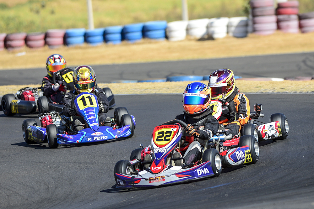Compartilhar no Facebook Compartilhar no Twitter Compartilhar no Google+ Compartilhar no Pinterest Clima e disputas quentes em Birigui, no interior paulista, marcaram a 2ª etapa da Copa Speed Park, encerrada no último sábado (26). O gaúcho Guki Toniolo (DVA/Bento Turismo) enfrentou 30 concorrentes na categoria Cadete e conquistou o 6º lugar na classificação final da rodada. O piloto marcou o 6º melhor tempo no treino classificatório e com disputas intensas nas duas corridas da etapa alcançou o 7º e o 6º lugares. “O calor estava demais em Birigui, mas eu consegui ficar na disputa do pelotão da frente. Com um pouco mais de um ano de kart acredito que estou evoluindo bem. Eu a minha equipe Speed Kart estamos satisfeitos com os resultados, mas sabemos que ainda temos que melhorar, e vamos melhorar. Estou me dedicando e agora eu conto com a orientação do piloto multicampeão, Bruno Bertoncello, meu coach”, comentou Guki Toniolo (DVA/Bento Turismo). Guki recebendo orientações do piloto e coach, Bruno Bertoncello Depois que quatro finais de semana de competições, o piloto terá alguns dias de descanso e volta a competir pela 7ª etapa da Copa São Paulo Light de Kart, em Interlagos, no dia 10 de outubro. Acompanhe mais noticias sobre o piloto nas redes sociais www.facebook.com/gukitoniolo22 e Instagram @gukitoniolo22. Texto e fotos: Eni Alves