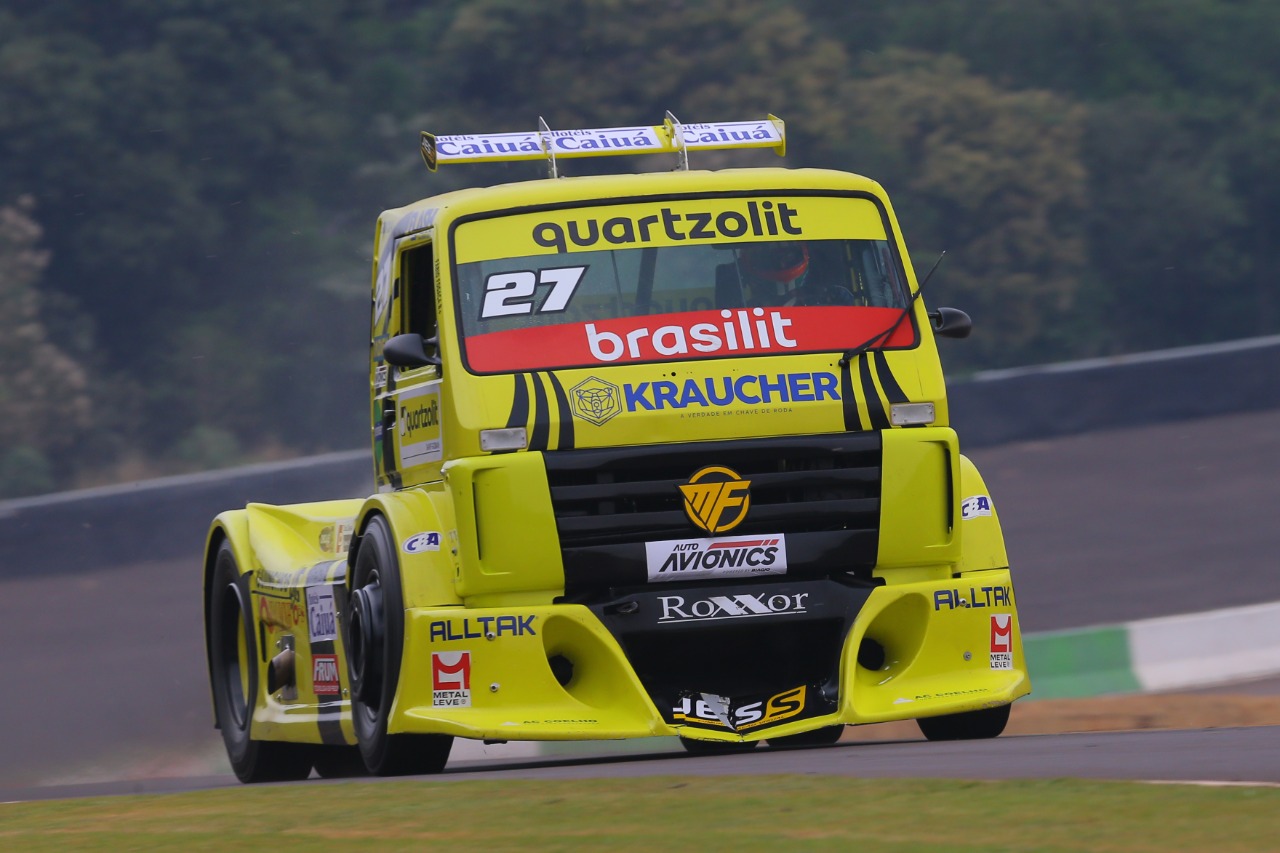 Velocidade no Asfalto Fábio Fogaça melhora 1s215 e planeja provas de resistência na Copa Truck Por Eni Alves Publicado em 5 de outubro de 2020 Compartilhar no Facebook Compartilhar no Twitter Compartilhar no Google+ Compartilhar no Pinterest O piloto de Sorocaba fica satisfeito com a melhora do caminhão em relação aos treinos livres e larga em 14º neste domingo em Cascavel CASCAVEL (PR) – As mudanças feitas depois dos treinos livres realizados ontem (sexta-feira) surtiram os efeitos esperados e o paulista Fábio Fogaça melhorou 1s215 no treino classificatório para a 3ª etapa da Copa Truck, que será disputada neste domingo no Autódromo Zilmar Beux, em Cascavel, na região Oeste do Paraná. A largada da corrida 1 será às 13h35 e a Corrida 2 às 14h15. Fábio Fogaça colocou o Protótipo da equipe FF Motorsport/Quartzolit/Brasilit/Kraucher na 14ª colocação do grid de largada, ao fazer em sua melhor volta do treino classificatório em 1m22s294. Na sexta-feira seu melhor tempo foi 1m23s609. Segundo Fábio Fogaça, as mudanças feitas melhoraram o caminhão, ainda está longe dos ponteiros, mas deu um caminho a ser seguido. Para as corridas, sua meta e terminar as duas e se isso acontecer, certamente estará entre os 10 mais bem colocados. “Vamos fazer corridas de resistência, terminar as duas, marcar o maior número de pontos possíveis. Completando as provas, certamente estamos entre os 10”, frisa Fábio Fogaça. Grid de largada da Copa Truck em Cascavel 1º) 73 Leandro Totti (Mercedes-Benz), 1m19s297 2º) 777 Valdeno Brito (Mercedes-Benz), 1m19s460 3º) 88 Beto Monteiro (Volkswagen), 1m19s550 4º) 6 Wellington Cirino (Mercedes-Benz), 1m19s742 5º) 54 Rafael Lopes (Volkswagen), 1m20s048 6º) 77 André Marques (Mercedes-Benz), 1m20s055 7º) 55 Paulo Salustiano (Volkswagen), 1m20s137 8º) 81 José Augusto Dias (Volkswagen), 1m20s657 Treino classificatório 9º) 7 Débora Rodrigues (Mercedes-Benz), 1m20s614 10º) 64 Evandro Camargo (Mercedes-Benz), 1m20s816 11º) 4 Felipe Giaffone (Iveco), 1m20s900 12º) 15 Roberval Andrade (Mercedes-Benz), 1n21s000 13º) 20 Pedro Muffato (Scania), 1m21s662 14º) 27 Fábio Fogaça (Protótipo), 1m22s394 15º) 99 Luiz Lopes (Iveco), 1m22s477 16º) 0 Danilo Alamini (Volkswagen), 1m22s909 17º) 83 Régis Boessio (Volkswagen), 1m23s151 18º) 909 Alexandre Navarro (Mercedes-Benz), 1m24s097 19º) 45 Daniel Kelemen (Mercedes-Benz), 1m24s516 20º) 37 Raphael Teixeira (Protótipo), 1m26s710 21º) 5 Adalberto Jardim (Protótipo), sem tempo 22º) 21 Djalma Pivetta (Iveco), sem tempo 23º) 28 Danilo Dirani (Mercedes-Benz), sem tempo Crédito das fotos: Vanderley Soares/Divulgação Assessoria de imprensa do piloto Fábio Fogaça Jornalista Responsável: Luiz Aparecido da Silva