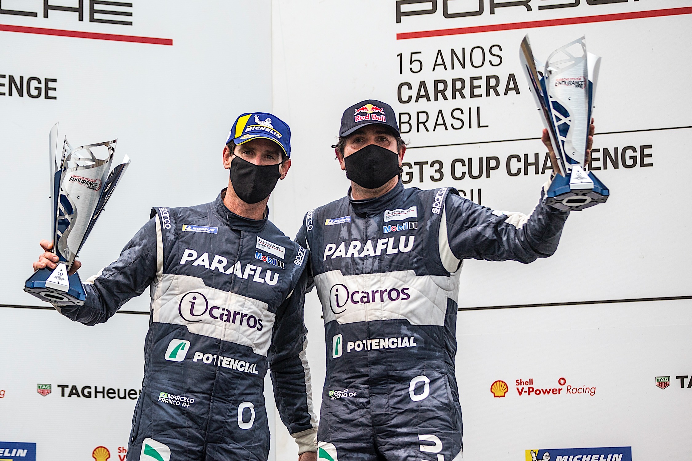 Velocidade no Asfalto Após pódio na estreia, Cacá Bueno e Marcelo Franco disputam liderança do Porsche Endurance em GO Por Eni Alves Publicado em 23 de outubro de 2020 Compartilhar no Facebook Compartilhar no Twitter Compartilhar no Google+ Compartilhar no Pinterest Correndo pela classe Carrera Sport 4.0 nesta temporada, o pentacampeão da Stock Car Cacá Bueno disputa ao lado de Marcelo Franco corrida em Goiânia que pode render a primeira colocação do campeonato Porsche de Cacá Bueno e Marcelo Franco (Bruno Terena/RF1) A segunda etapa do Porsche Endurance Series será realizada neste final de semana em Goiânia e uma das duplas que promete vir forte na disputa pelas primeiras posições é a formada por Cacá Bueno e Marcelo Franco. Os dois pilotos conseguiram o segundo lugar na classe Carrera Sport na estreia no Velocitta, ficando no top-5 da Geral, e agora buscam mais um bom resultado. “Goiânia é uma pista que tanto eu quanto o Marcelo (Franco) temos altas expectativas para lutar por um pódio no Porsche Endurance. A gente vem de um segundo lugar na etapa de estreia do campeonato no Velocitta, onde fomos competitivos em toda a corrida de 300 km”, diz Cacá, que é pentacampeão da Stock Car. Cacá foi vice-campeão do Porsche Endurance na categoria 4.0 GT3 em 2019, e neste ano acredita que será possível brigar pelo título. Marcelo Franco e Cacá Bueno no pódio (Bruno Terena/RF1) “Nosso objetivo é disputar a vitória na Carrera Sport e terminar no top-5 da geral. O campeonato de endurance exige muita regularidade, até porque é composto por três provas longas, sendo a final em SP de 500 km de extensão, portanto, para lutar pelo título é preciso ir bem nas três corridas. O carro está bem rápido, o grid segue bem estrelado com (Felipe) Massa, (Lucas) Di Grassi e outros grandes pilotos, então será um grande desafio para nós”, diz Cacá, que corre com patrocínio de Paraflu, Potencial, iCarros e Red Bull Os 300 km de Goiânia será a segunda das três provas do Porsche Endurance Series em 2020. A final está programada para acontecer em Interlagos com 500 km de prova. A largada da etapa goiana será neste sábado às 11h30 da manhã, com transmissão ao vivo dos canais SporTV e também do site e redes sociais da categoria. Confira a programação completa em Goiânia: Sexta-feira, 23 de outubro 09:05 – 10:05 – Treino opcional (Todos) 10:50 – 11:20 – Treino livre 1 (Todos) 13:30 – 14:00 – Treino livre 2 (Todos) 15:45 – 15:55 – Classificação Grupo A (Carrera) 16:35 – 16:45 – Classificação Grupo B (Carrera) Sábado, 24 de outubro 09:30 – 09:45 – Warm-up (Todos) 11:30 – 14:15 – Largada (300 km ou 2h45) (Todos)