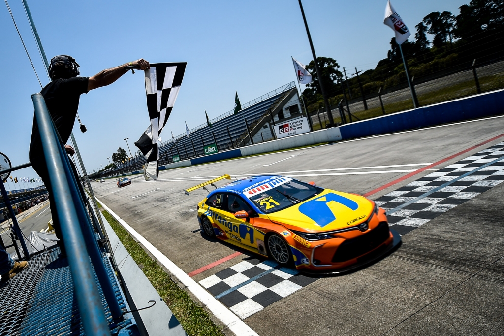 Velocidade no Asfalto Com recorde de competitividade, Stock Car tem outra troca no comando da tabela Por Eni Alves Publicado em 10 de novembro de 2020 Compartilhar no Facebook Compartilhar no Twitter Compartilhar no Google+ Compartilhar no Pinterest Categoria teve 21 carros em menos de meio segundo na sessão classificatória. Camilo é novo líder Camilo recebe a bandeirada neste domingo: maior pontuador (Duda Bairros/Stock Car) A Stock Car realizou neste domingo (8) uma etapa memorável no Autódromo Internacional de Curitiba. Os pilotos entraram na pista pela manhã para a definição do pole position e já mostraram que o nível da disputa seria altíssimo: durante a primeira fase das tomadas de tempo, 21 dos 25 inscritos se espremeram dentro de menos de meio segundo – um recorde histórico para a categoria. A nona etapa foi composta de duas corridas. Na primeira, a vitória foi do pole position Thiago Camilo, com Gabriel Casagrande vencendo a prova complementar. Mas, apesar de Casagrande ter comandado toda a segunda prova, vencer não foi fácil para nenhum dos dois ganhadores. O desempenho extremamente parelho dos Chevrolet Cruze e Toyota Corolla utilizados pela categoria este ano resultou em um festival de troca de posições, no qual quem não atacava tinha que se defender o tempo todo. Com o calor acima dos 30oC e a pressão ininterrupta dos rivais, as duas provas foram extremamente exigentes para carros e pilotos. Casagrande, por exemplo, saiu de seu carro completamente extenuado, precisou sentar à sobra e beber líquidos para ter condições de subir ao pódio. Camilo lidera em Curitiba: único ploto com três vitórias em 2020 (Duda Bairros/Stock Car) Recorde na pontuação – Thiago Camilo foi o grande nome do final de semana. Na oitava etapa, realizada no sábado em rodada simples, e na rodada dupla que compôs a nona etapa no domingo, o piloto da equipe Ipiranga A.Mattheis conquistou duas vitórias e um sétimo lugar. Com isso, Camilo registrou um novo recorde para a categoria, faturando 74 pontos no mesmo final de semana, ou 88% dos 84 possíveis. A façanha rendeu a Thiago a liderança do campeonato com a vantagem de 24 pontos sobre o segundo colocado, depois de ter chegado em Curitiba na quinta colocação na tabela. De outro lado, a extrema competitividade cobrou seu preço do até então líder Cesar Ramos, parceiro de equipe de Camilo. Com um 13º, 16º e 18º nas três provas, o piloto gaúcho caiu para a sexta posição na tabela, drama parecido com o vivido por Rubens Barrichello em Cascavel, que caiu da liderança para a quinta colocação no mesmo final de semana. Barrichello vai se recuperando e agora já é o terceiro colocado, colado no vice-líder Ricardo Zonta (veja tabela). O jovem Guilherme Salas foi outro destaque. Na prova do sábado e na primeira corrida do domingo não apenas incomodou muito como também tomou a ponta de Camilo, obrigando o experiente piloto a mostrar seu melhor ao volante para retomar a ponta. Por pouco Salas não obtém sua primeira vitória na Stock Car. Muitos vencedores em 2020 – Camilo saiu de Curitiba como o único piloto na temporada a conquistar três vitórias, superando Ricardo Zonta, que até então era o único a ter vencido mais de uma prova, com dois primeiros lugares. Casagrande entrou agora para o seleto clube de vencedores, que contabiliza 11 pilotos em 14 largadas realizadas pela Stock Car em 2020. “A gente sempre trabalha duro para maximizar os pontos, conquistar o maior número de pontos possíveis em um final de semana como esse. Mas nem nos melhores sonhos eu imaginaria sair daqui com duas vitórias e um sétimo lugar”, disse Camilo. “Não pelo potencial da equipe, não pelo trabalho que toda equipe está fazendo… mas sim pela competitividade da categoria. A gente sabe o quanto é duro isso aqui, o quanto é decidido nos detalhes. Então duas vitórias no final de semana é para lavar a alma”, completou. “Cabeça no lugar” – “Nós não tínhamos um carro fenomenal. Acabou que nessa segunda corrida deu para largar em primeiro por conta do grid invertido e aí nossa missão era clara, mas difícil”, disse Casagrande. “A gente teve cabeça no lugar. Fizemos o dever de casa, que era largar bem, manter a posição, depois abrir uma vantagem muito boa, pois os concorrentes estavam brigando muito entre si. Essa vitória vai para os meninos da equipe R. Mattheis, que trabalham demais. Nosso início de ano não foi tão bom, e eles estão sempre tentando melhorar meu carro. Nas outras etapas eu tinha um carro um pouco melhor, mas aqui que a gente foi coroado com a vitória. Essa é para eles”, finaliza o vencedor da segunda prova de domingo. A etapa realizada hoje e a disputada ontem, sábado, fizeram parte do GP Amadeu Rodrigues, em homenagem a um dos mais carismáticos chefes de equipe da Stock Car, falecido há uma semana em acidente automobilístico. A 10ª e 11ª etapas serão realizadas em Goiânia, nos dias 21 e 22 de novembro, novamente valendo um total de 84 pontos. Confira os resultados e demais informações sobre as provas em Curitiba: CAMPEONATO APÓS NOVE ETAPAS 1º – Thiago Camilo – 222 pontos 2º – Ricardo Zonta – 198 3º – Rubens Barrichello – 196 4º – Ricardo Maurício – 193 5º – Daniel Serra – 190 6º – Cesar Ramos – 189 7º – Gabriel Casagrande – 175 8º – Allam Khodair – 157 9º – Nelsinho Piquet – 149 10º – Diego Nunes – 140 11º – Julio Campos – 139 12º – Átila Abreu – 135 13º – Rafael Suzuki – 134 14º – Guilherme Salas – 134 15º – Bruno Baptista – 121 16º – Cacá Bueno – 108 17º – Matías Rossi – 107 18º – Denis Navarro – 102 19º – Lucas Foresti – 79 20º – Galid Osman – 77 21º – Marcos Gomes – 60 22º – Pedro Cardoso – 55 23º – Gaetano di Mauro – 52 24º – Tuca Antoniazzi – 33 25º – Vitor Genz – 11 26º – Vitor Baptista – 8 27º – Felipe Lapenna 